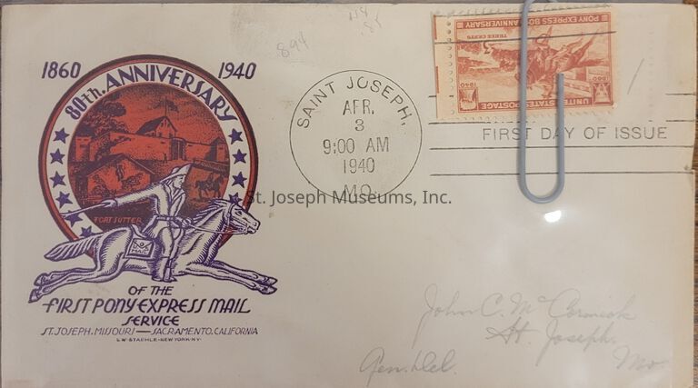 Pony Express 80th Anniversary First Day Cover, St. Joseph, MO, Apr. 3, 1940Entry/Object ID