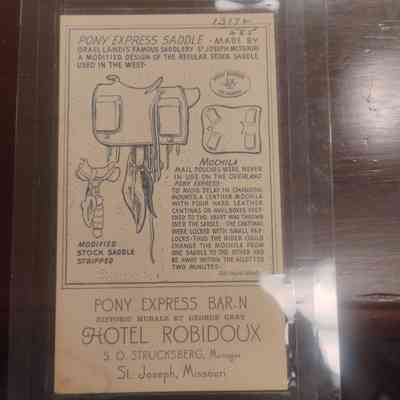 Pony Express Bar-N, Hotel Robidoux Advertisement Featuring Pony Express Saddle & Mochila,. c. 1940'sEntry/Object ID