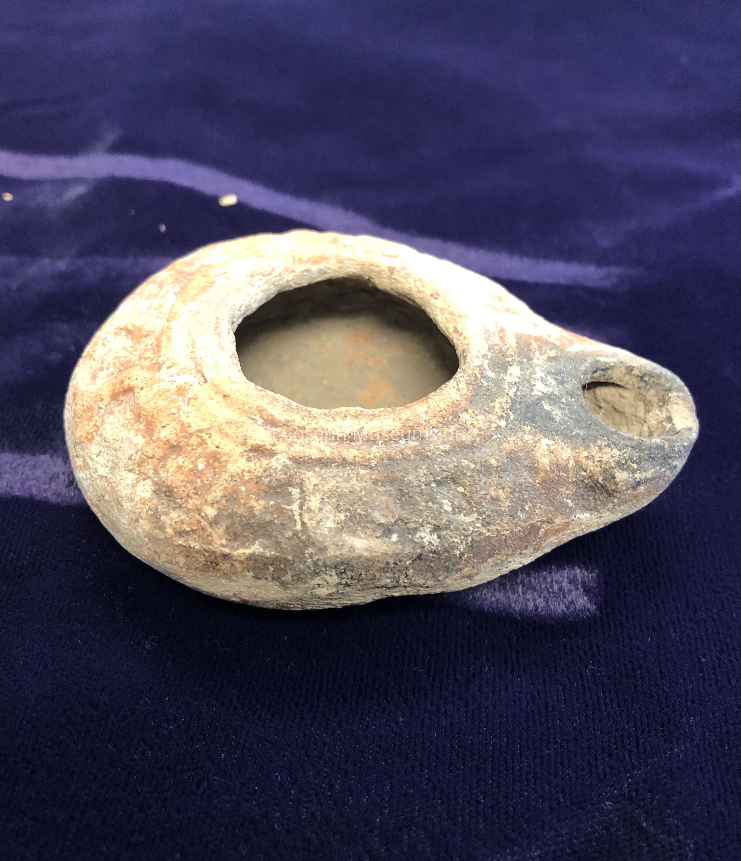 Clay oil lamps, like the ones seen here, were first created in the Chalcolithic Age (4500-3300 BCE), or about 6,000 years ago. These oil lamps were created to be portable and were used in every aspect of life. Every individual would have had many lamps such as these to light their homes once the sun went down, priests would use lamps similar to these in religious ceremonies in temples, and they were even used to hang on the outside of buildings to provide street lighting. These terracotta oil lamps were likely almost completely enclosed at the top with only a small, pencil sized hole to fill the lamp with oil.