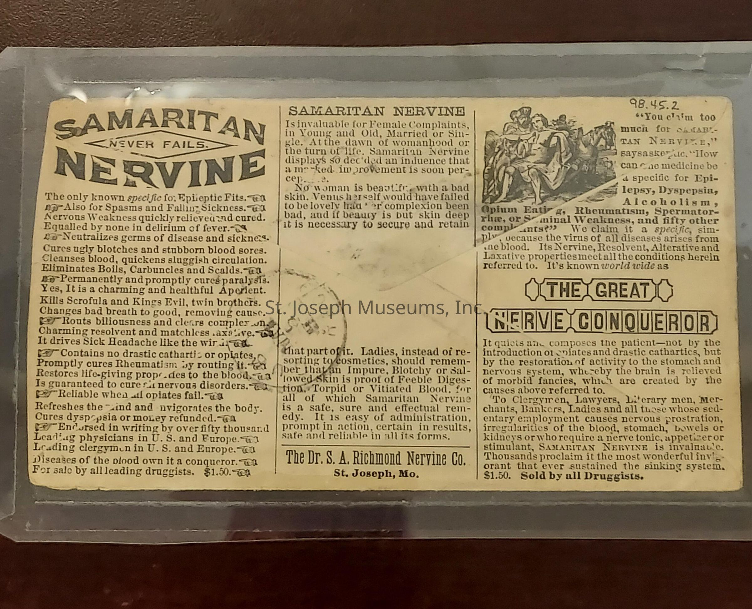Richmond,( Dr. S.A.), Samaritian Nervine, Business Envelope, 1875Entry/Object ID