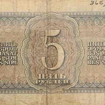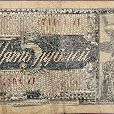 Soviet Union Currency, 5 Roubles, 1938.