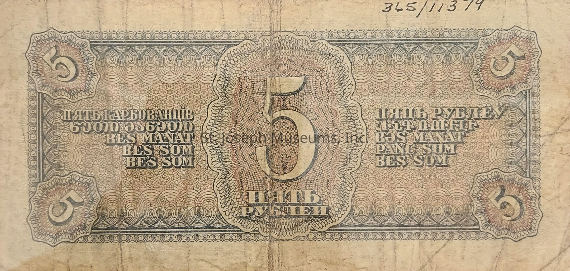 Soviet Union Currency, 5 Roubles, 1938.Entry/Object ID