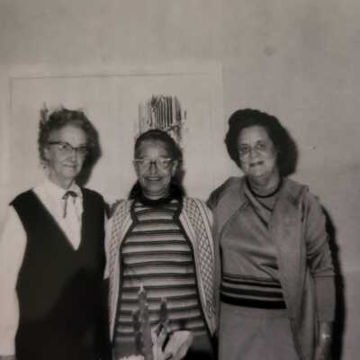 State Hospital Staff Photo of Librarian & Others, c. 1970. Librarian _____?, Opel Komer, and Marie Summers.Collection