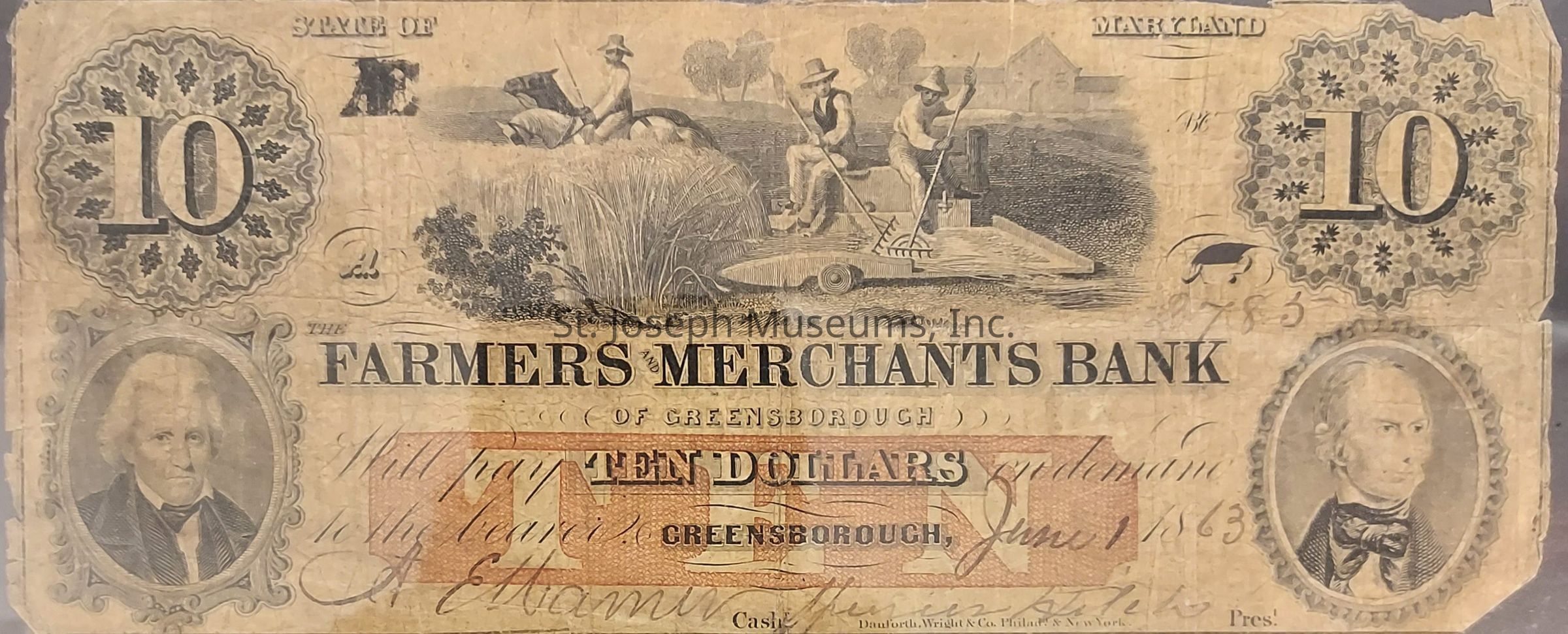 State of Maryland, Farmers Merchants Bank Ten Dollars, 1863Entry/Object ID