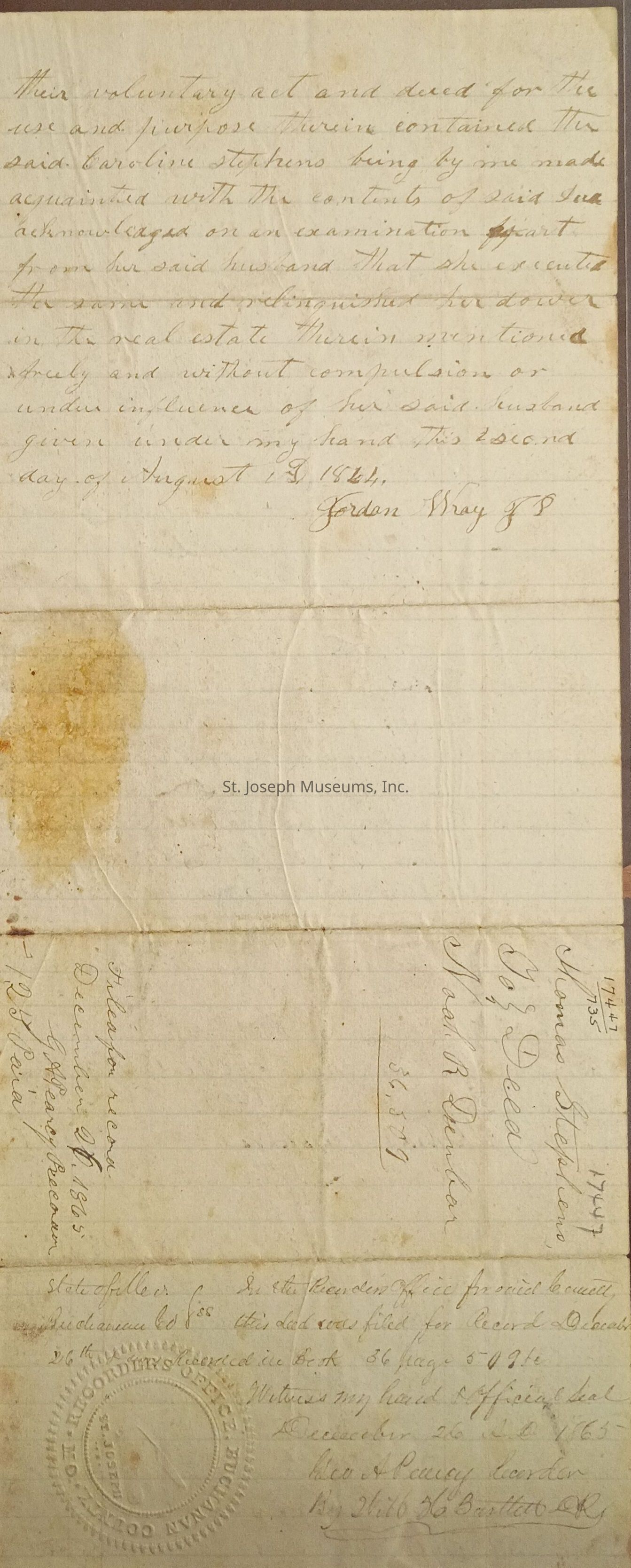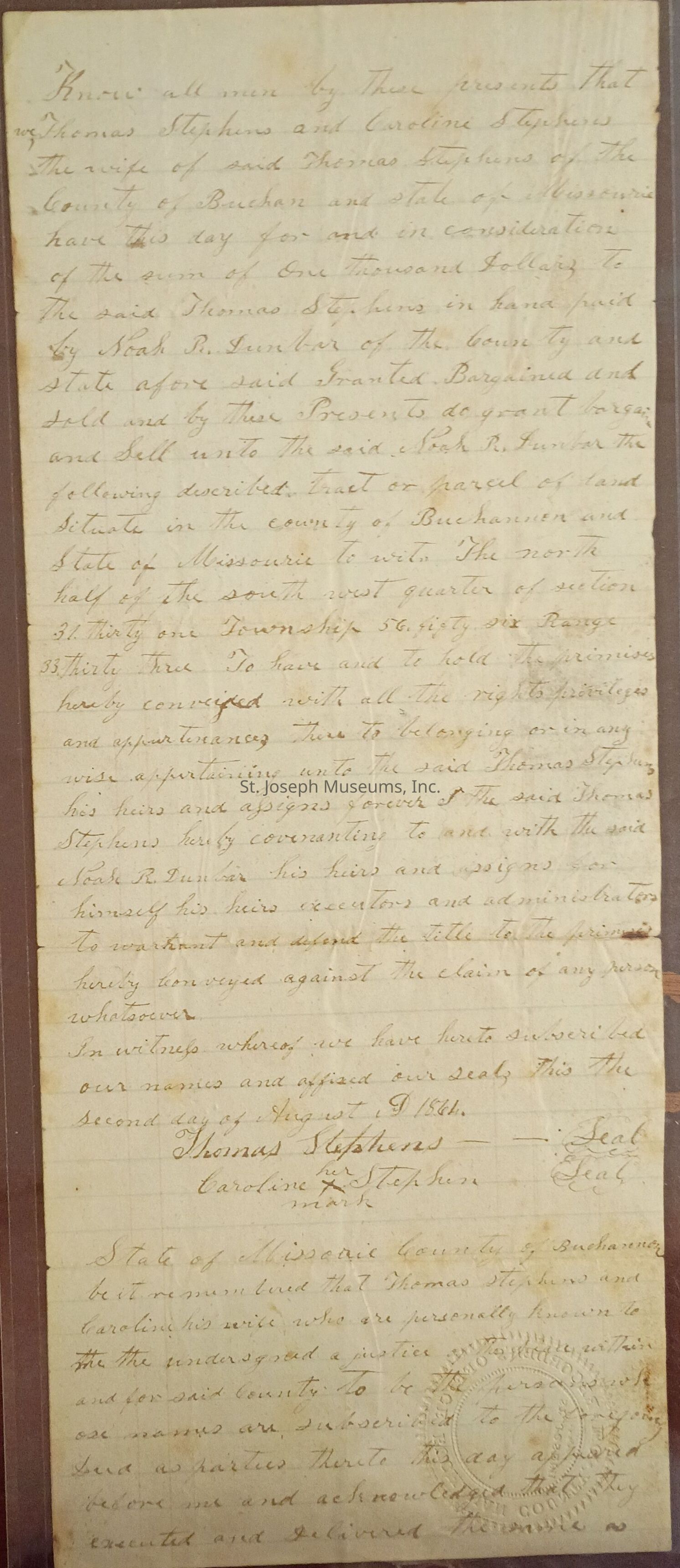 Stephens, Thomas and Wife Land Deed to N. R. Dunbar, 1864Entry/Object ID