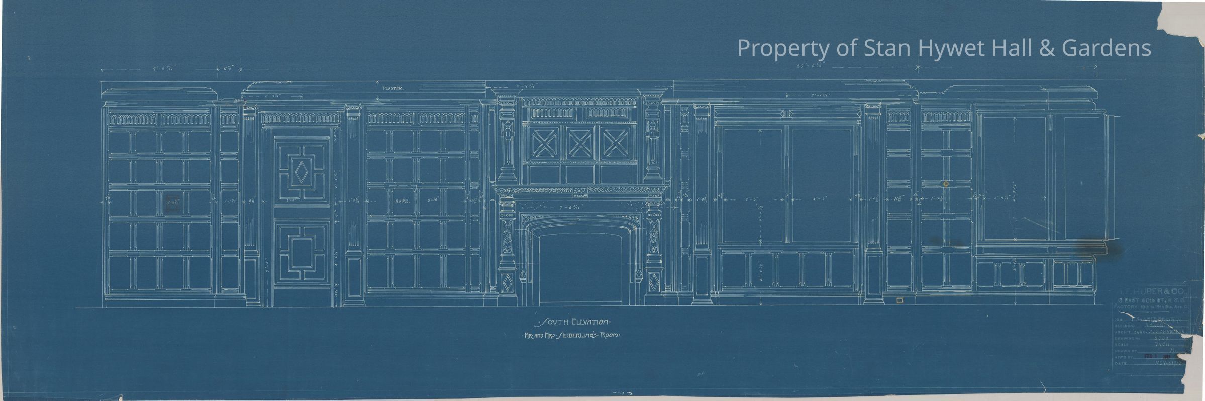 Historic Blueprint: South elevation of Mr. & Mrs. Seiberling's Room (Master Bedroom) of Stan Hywet Hall.