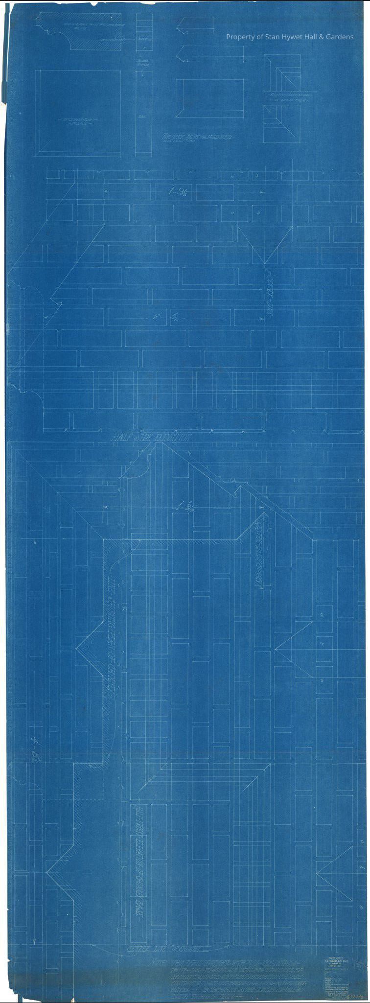 Historic Blueprint: Full sized detailed drawing of the base of the Music Room Chimney Base. Titled "Music Room Chimney Base".