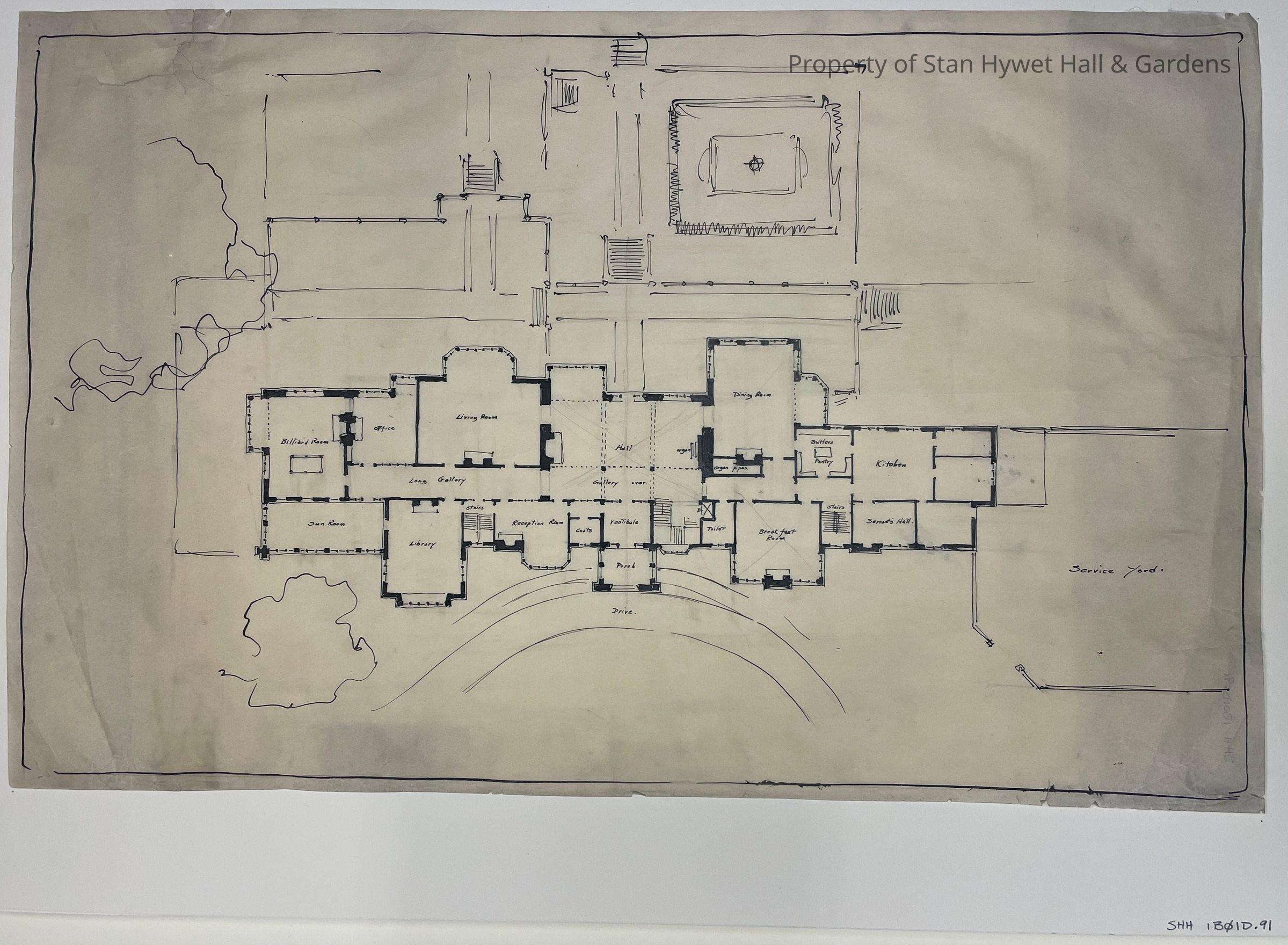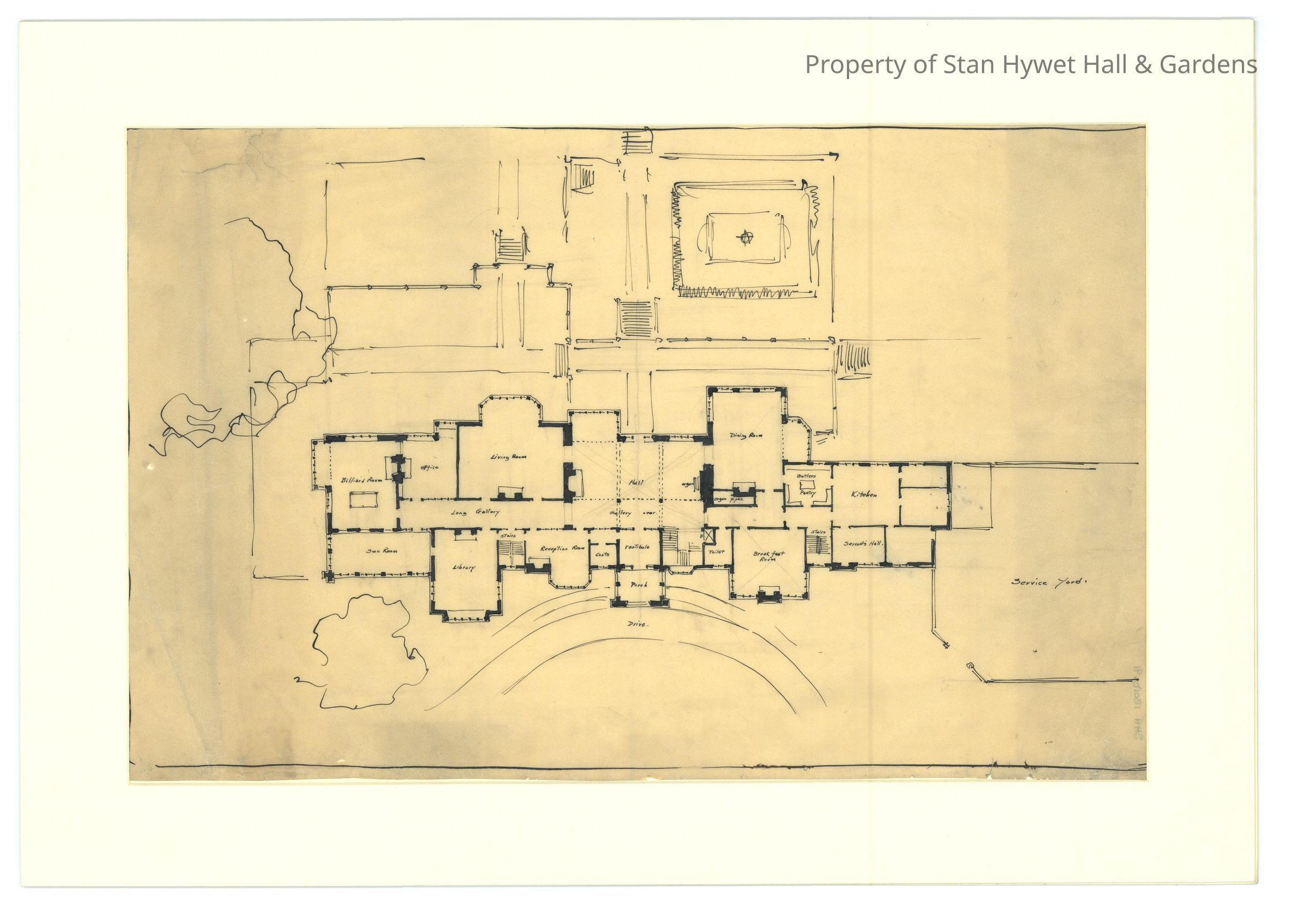 Historic Drawing: Concept drawing of first floor plan and surrounding grounds of Stan Hywet Hall.Collection