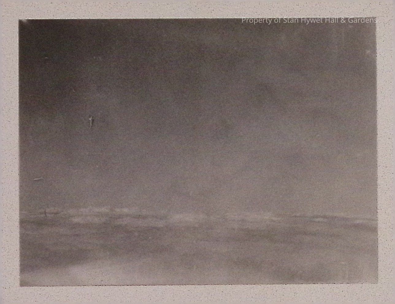 Print developed from gelatin dry plate glass negative in the series starting SHH 11.1134. This is taken from a balloon above clouds and looking down at a cloud deck. It is flat except for a few fluffy bumps. There are white surface nicks in center left. There is some light seepage at bottom edge.Collection