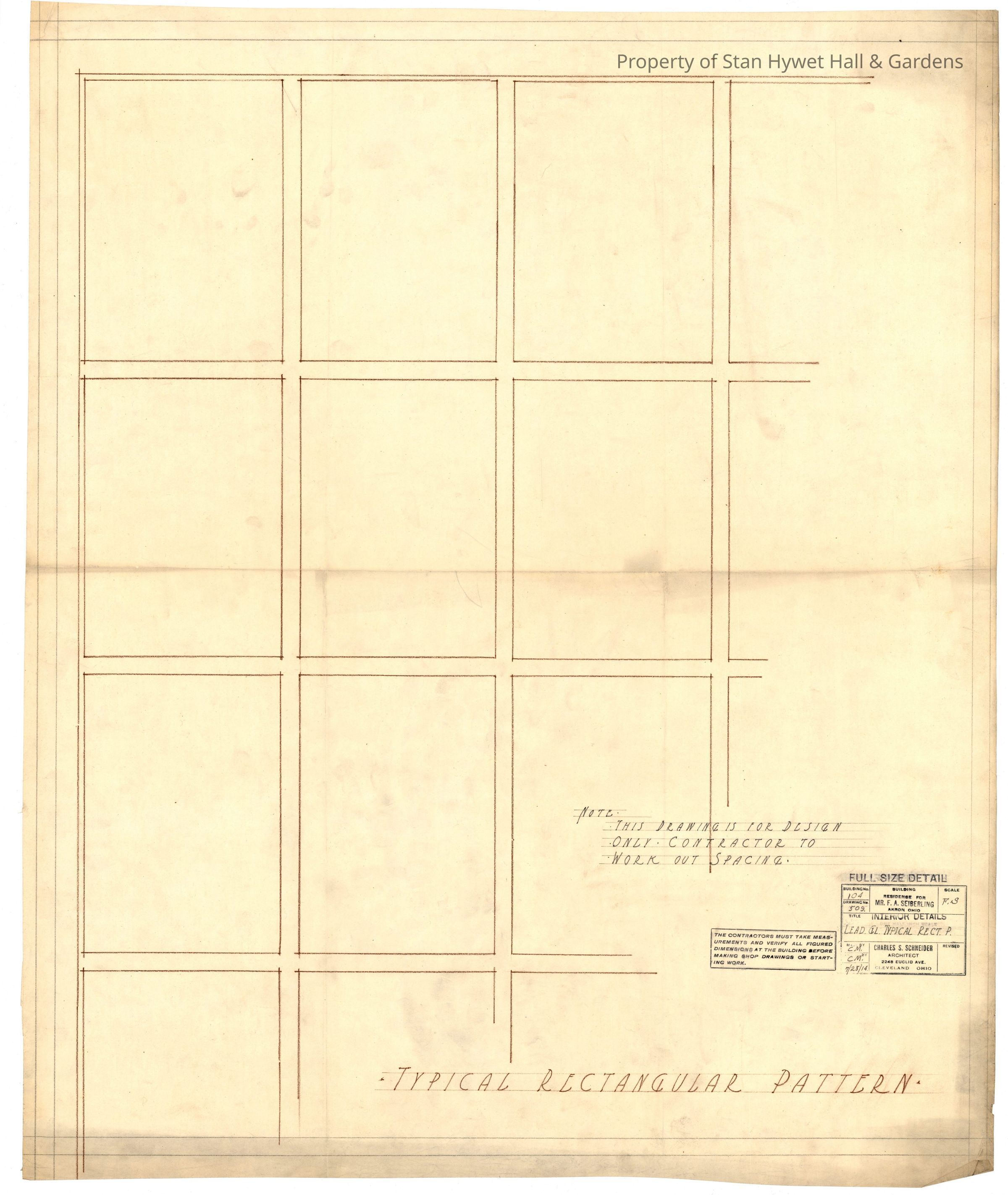 Historic Drawing: Drawing of rectangle leaded glass window pattern used in Stan Hywet Hall. Titled "Interior Details Lead GL. Rect. P."
