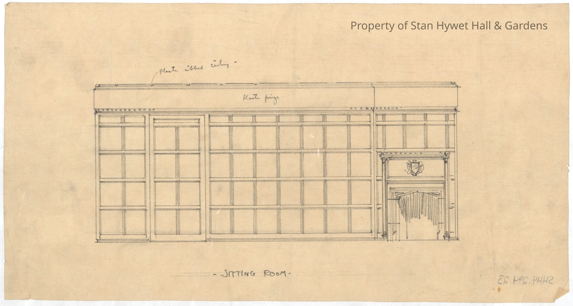 Historic drawing: Concept drawing for a Sitting Room. Unclear which room this concept drawing eventually became or whether it was cut for the house layout.Collection