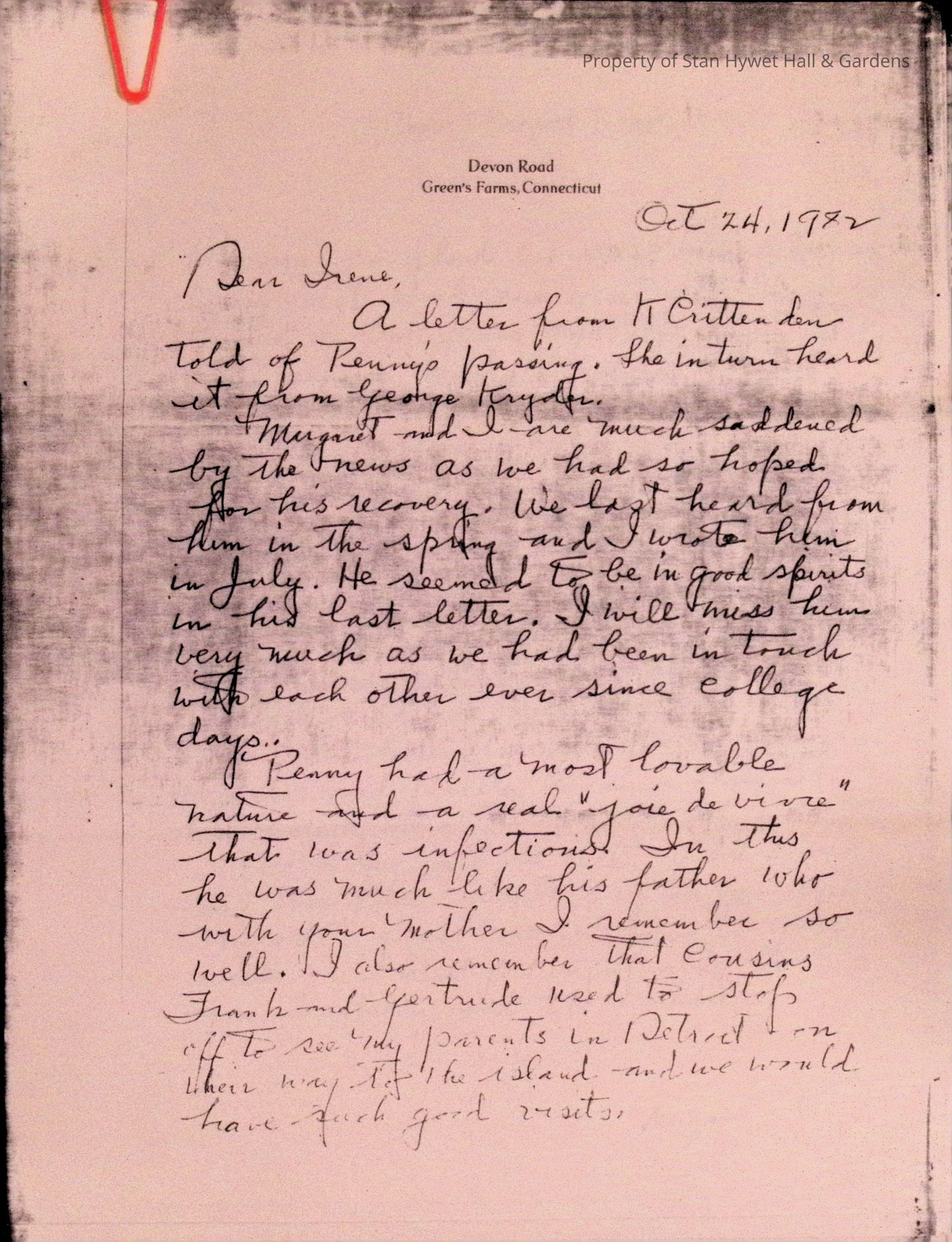 Letter: Condolences to Irene on Penfield's deathEntry/Object ID