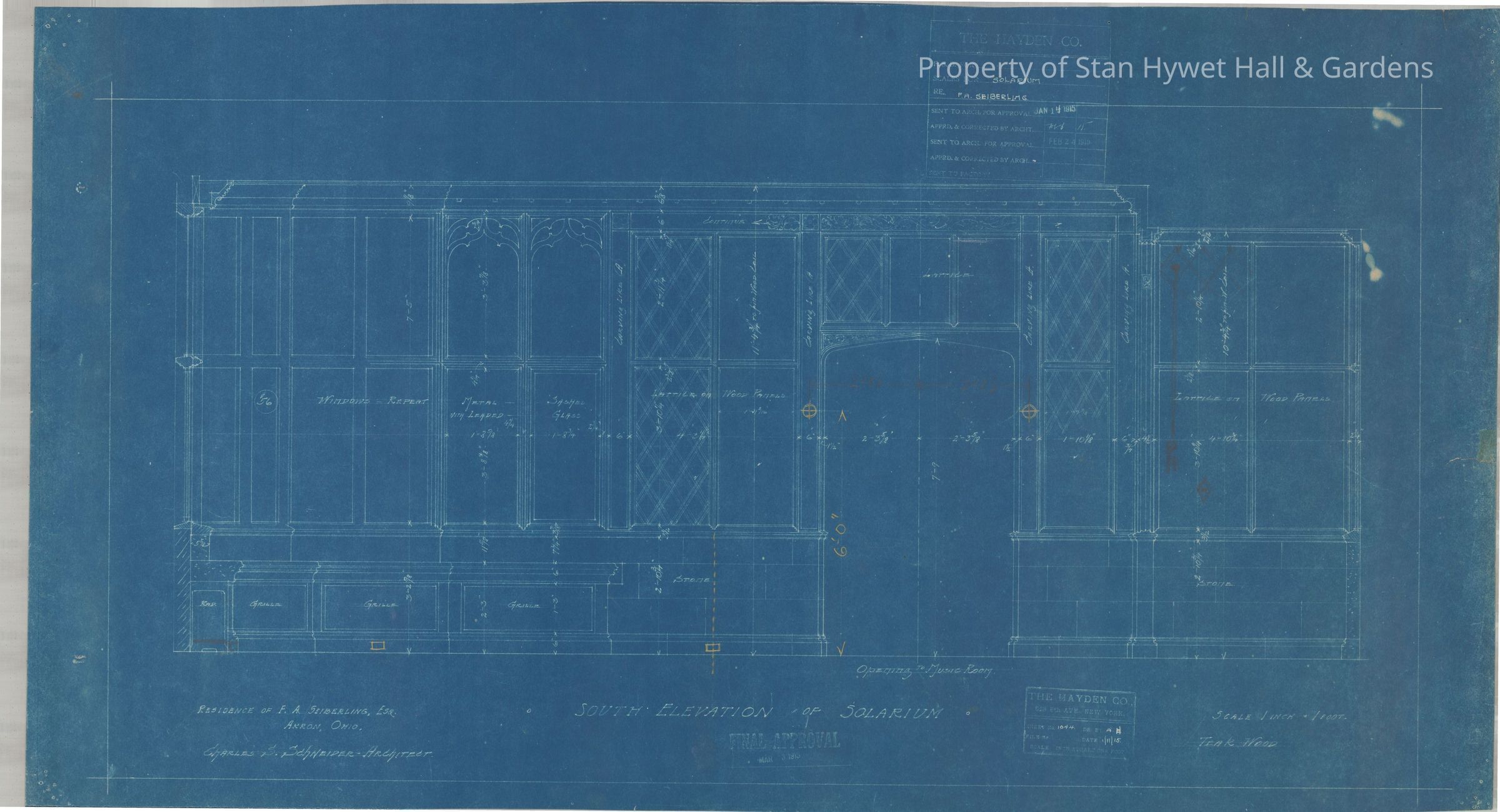 Historic blueprint: South elevation of Solarium in Stan Hywet Hall.