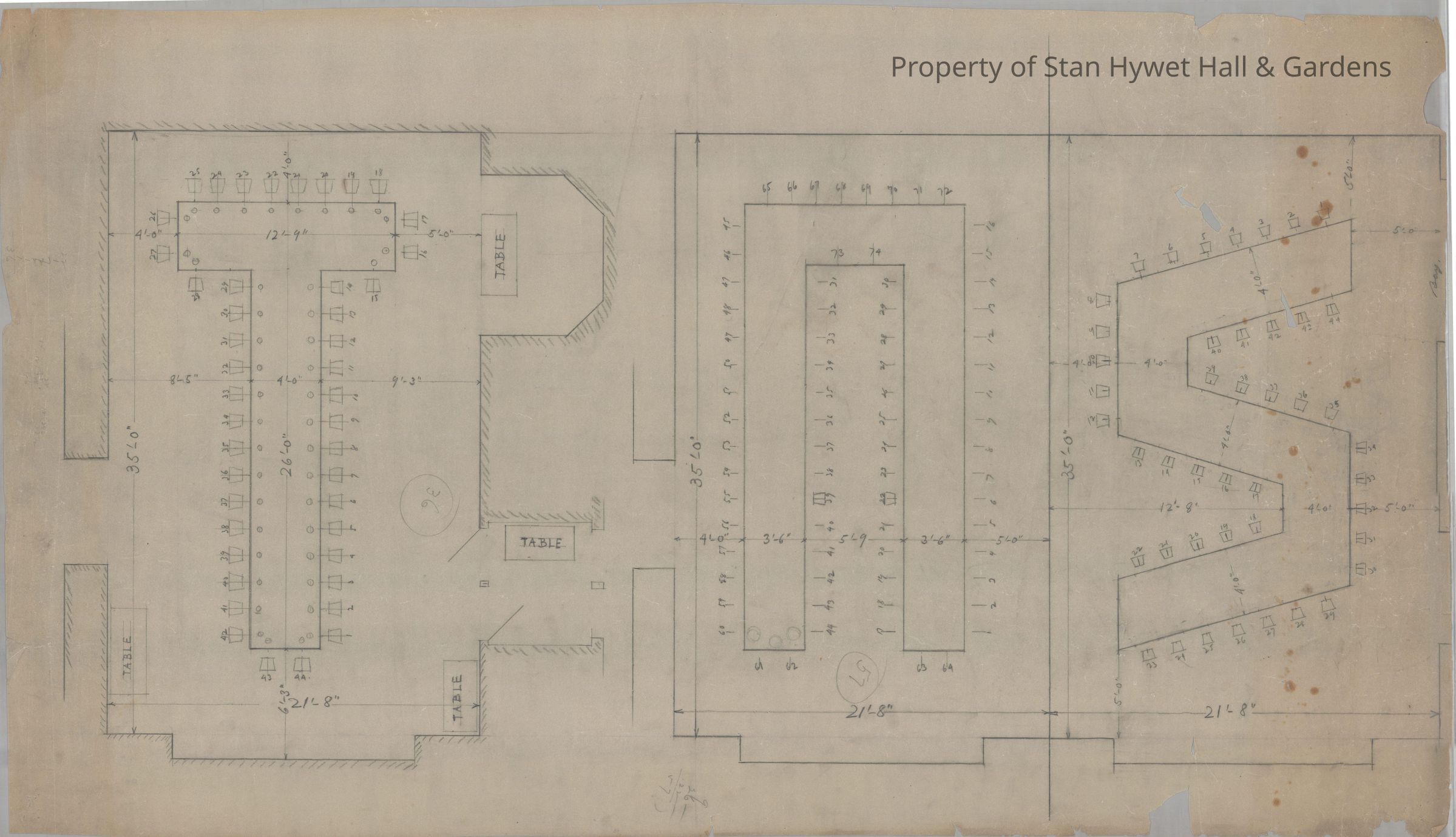 Historic drawing: Plan of Dining Room with three different table and chair configuration options.Collection
