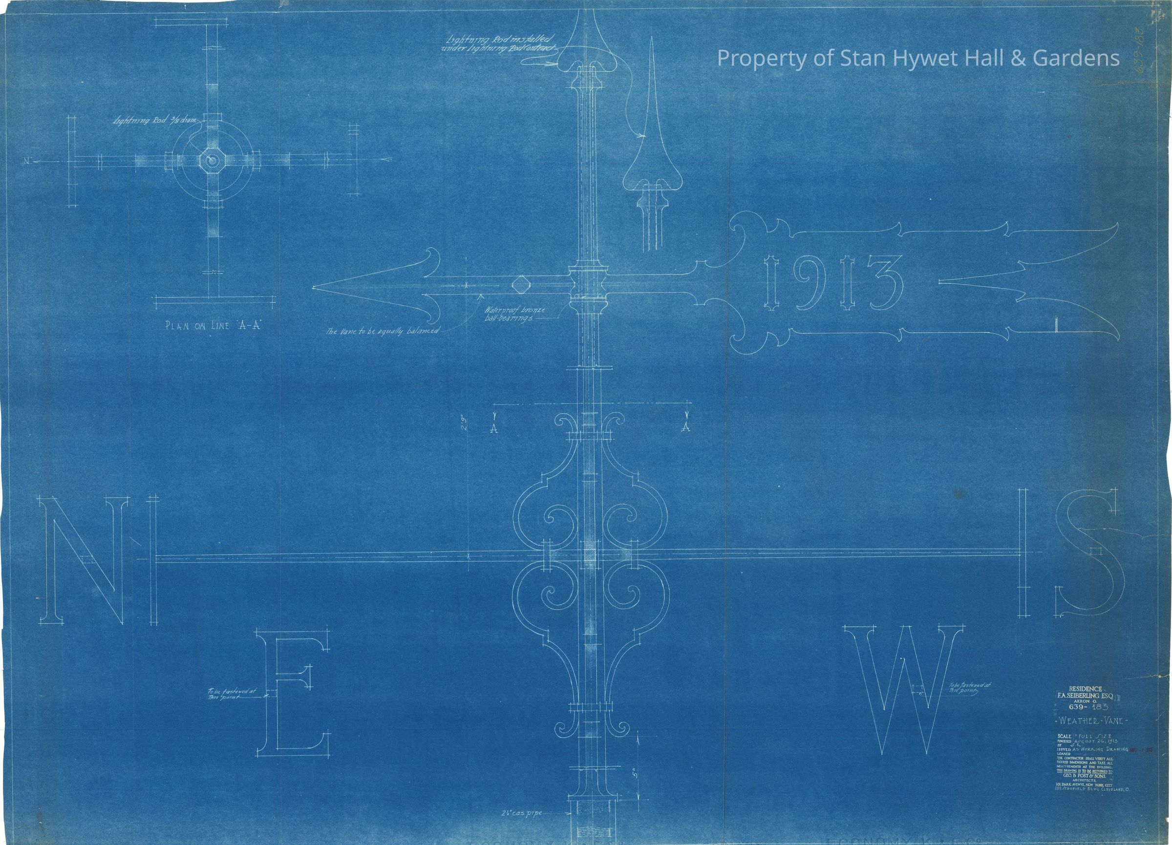 Historic blueprint: Full sized detailed drawing of the weathervane on top of Tower. Titled "Weather Vane".