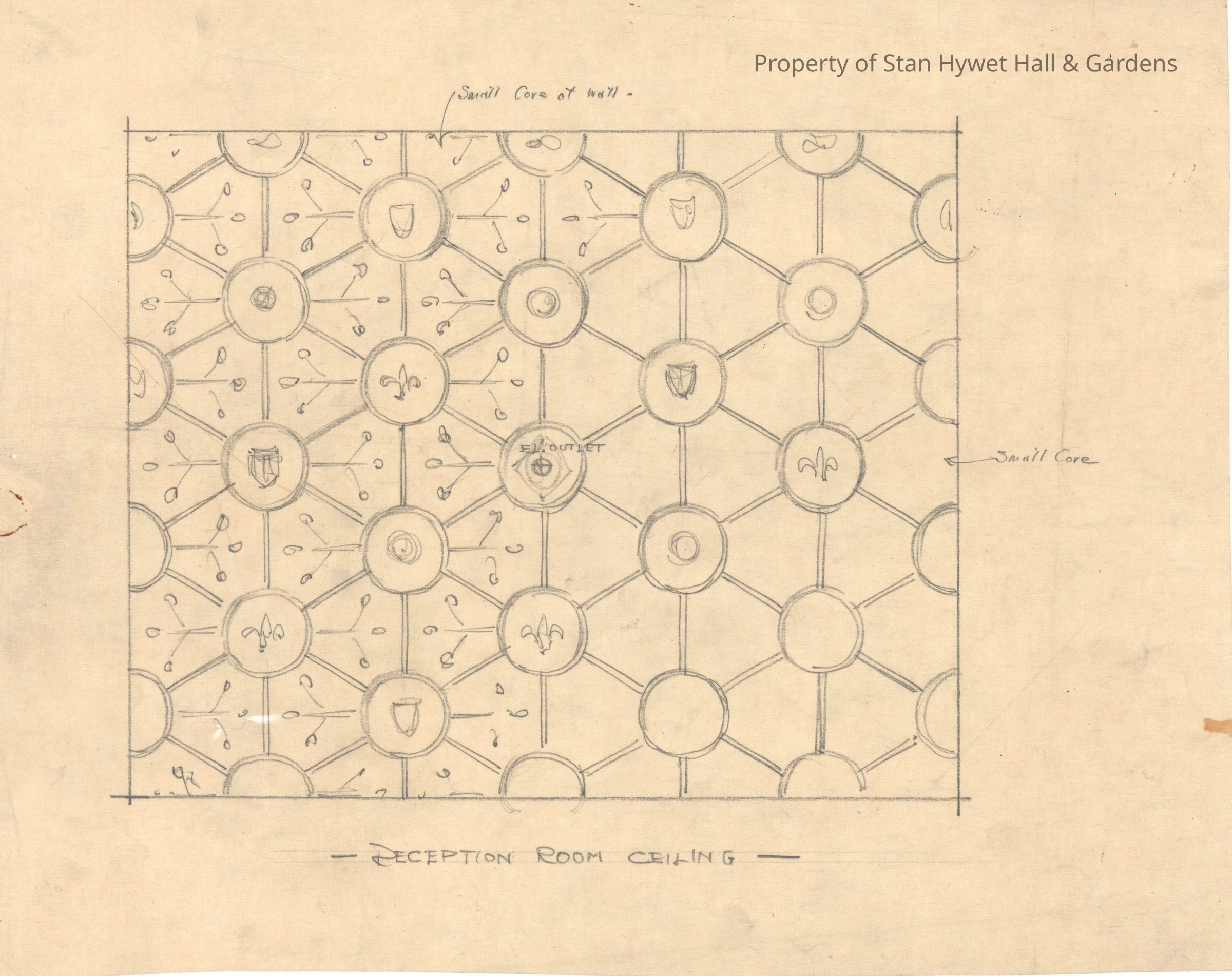 Historic drawing: Detailed drawing of the Reception Room's ceiling. Titled "Reception Room Ceiling".Collection