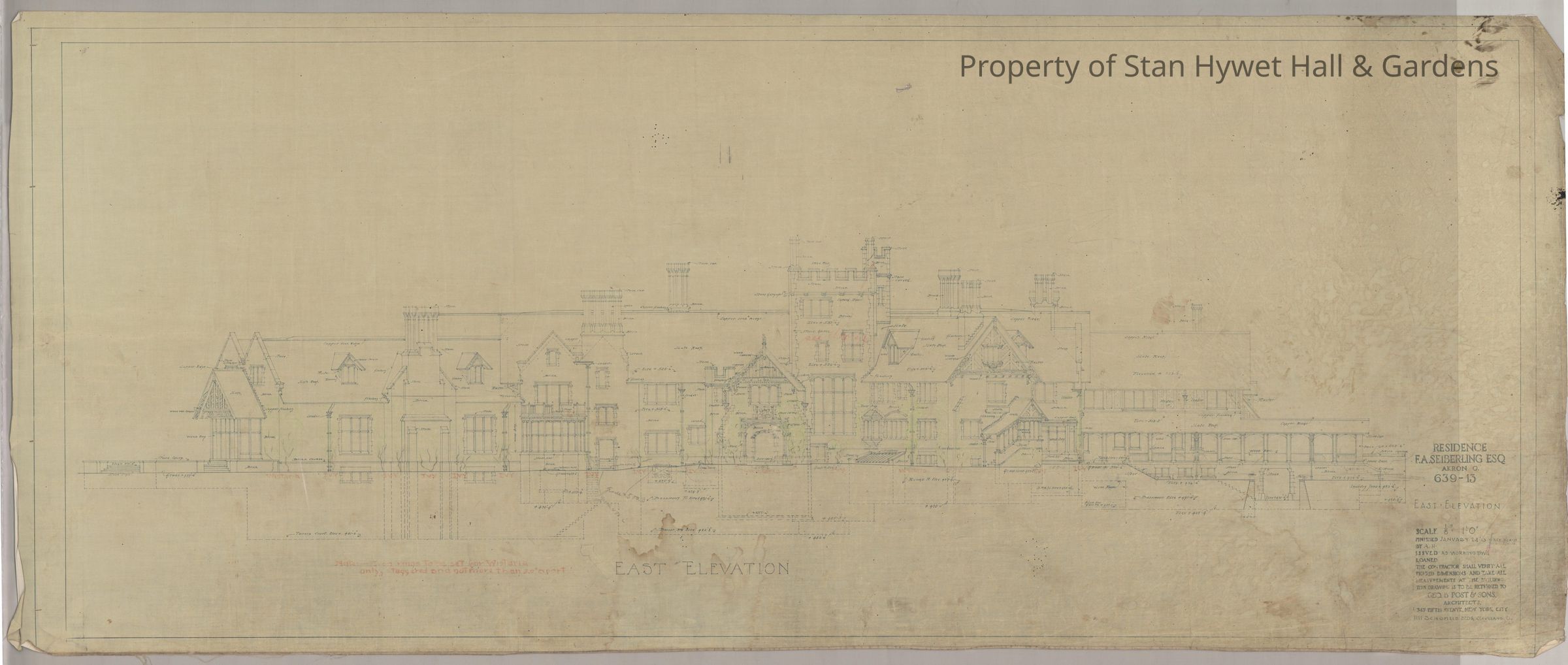 Historic drawing: Detailed drawing of the entire east elevation of the Manor House.
