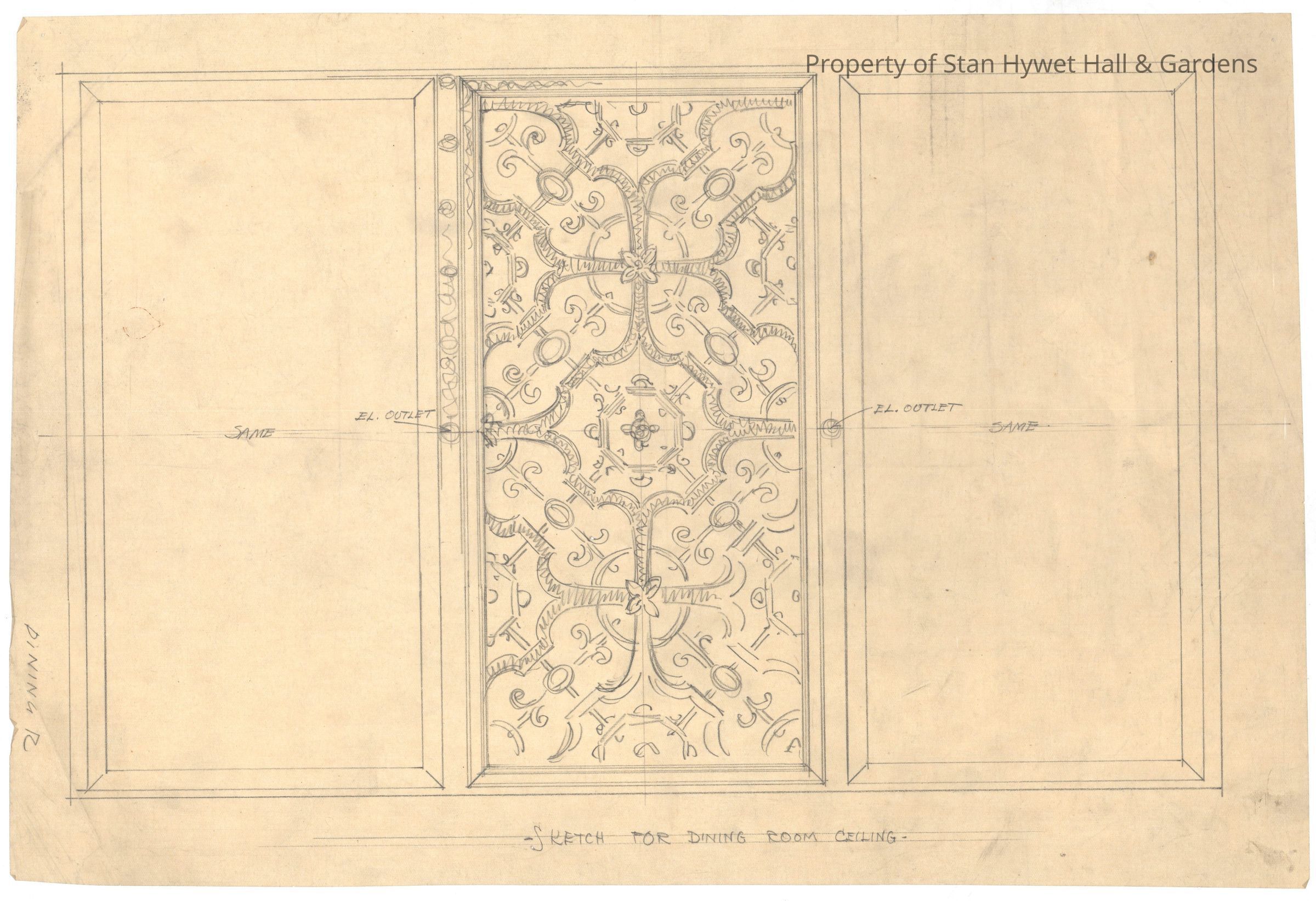 Historic drawing: Detailed drawing of the Dining Room's molded plaster ceiling pattern. Titled "Sketch for Dining Room Ceiling".Collection