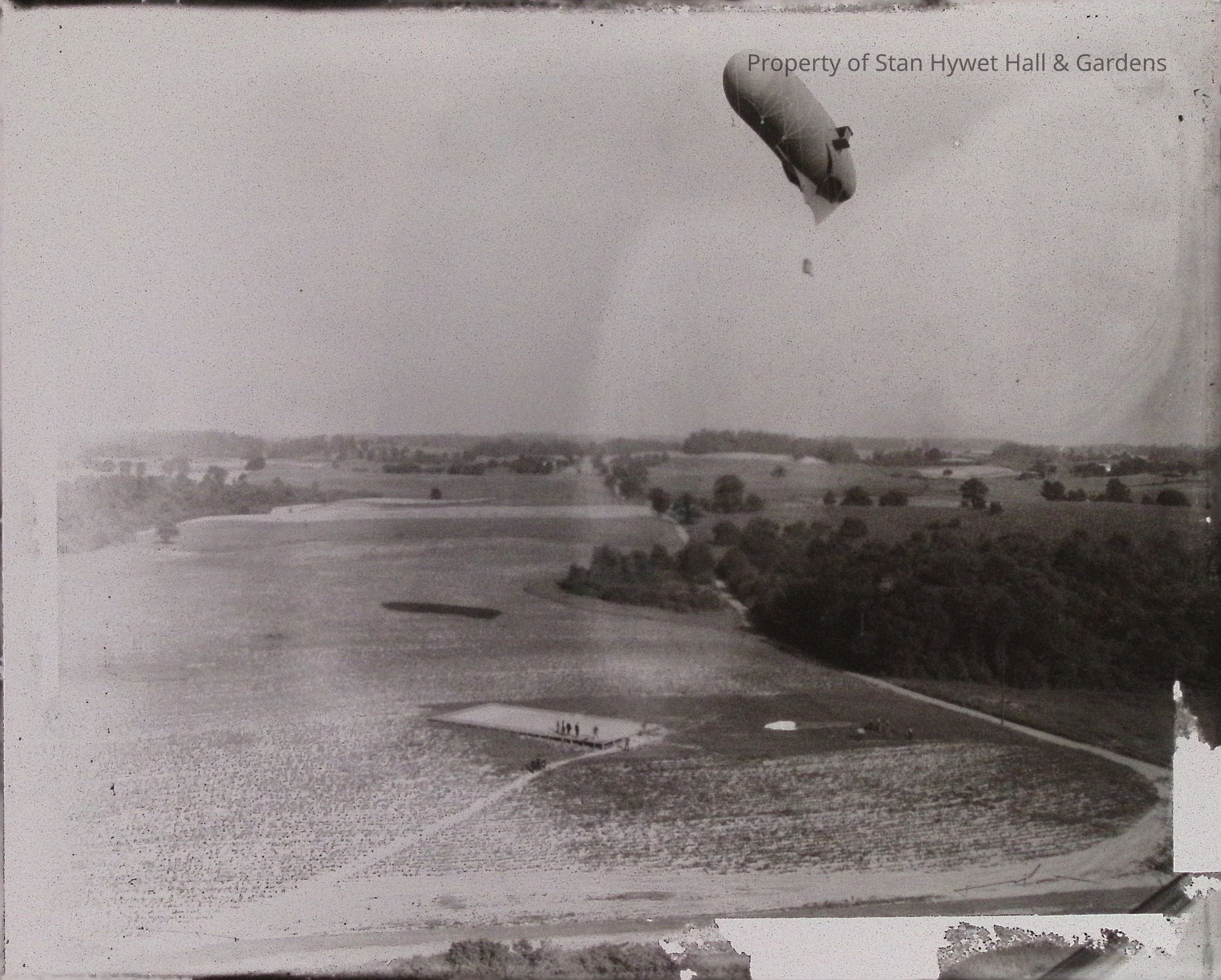 This image is part of a long series of images taken of flying crafts, taken at Wingfoot Lake. Willard was manager of Goodyear's Aeronautics Department in 1915. Willard Seiberling (1892-1981) was an avid and accomplished photographer who developed his photographic interest while attending Princeton University. The dark room at Stan Hywet was added to the floorplan during construction for his use. Willard is credited with most of the early images of Stan Hywet.Created By