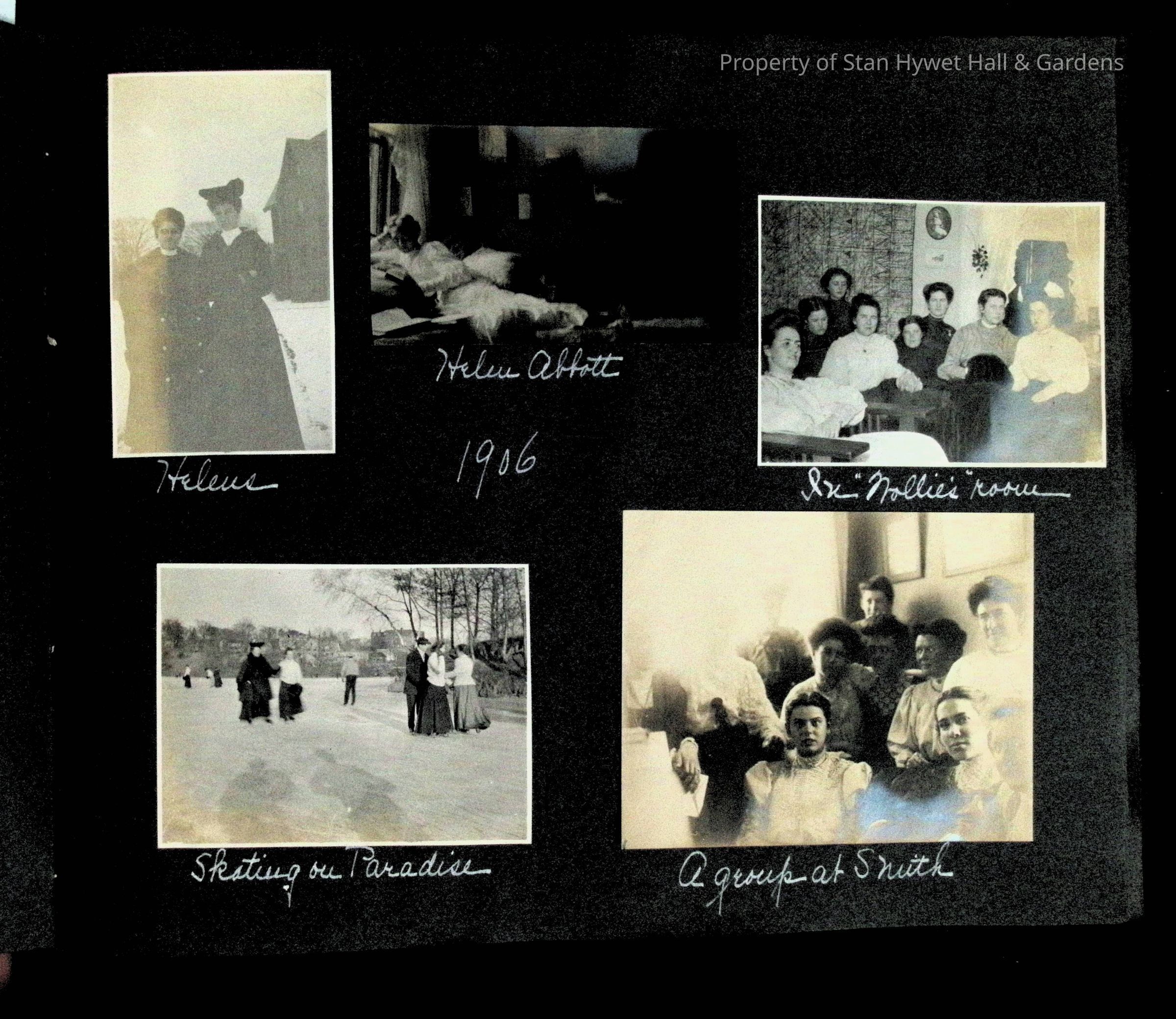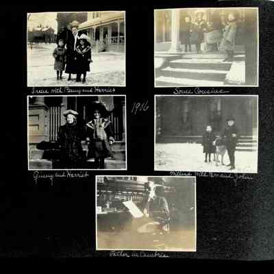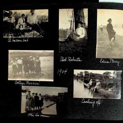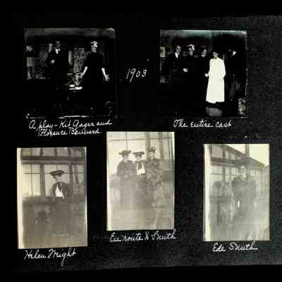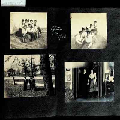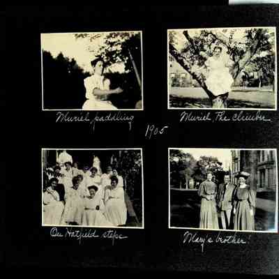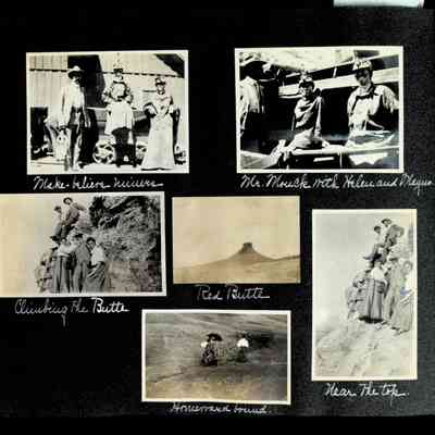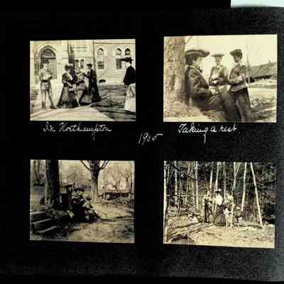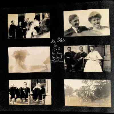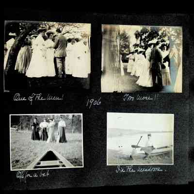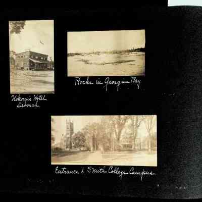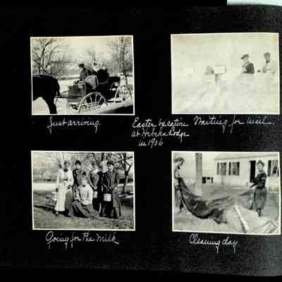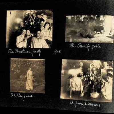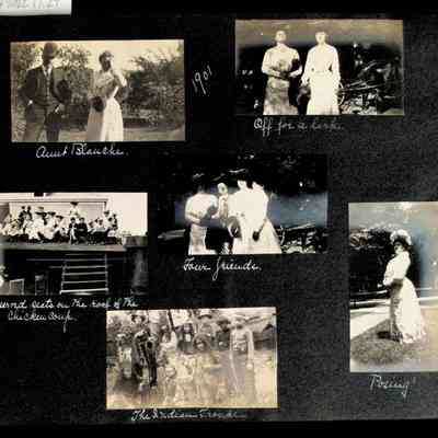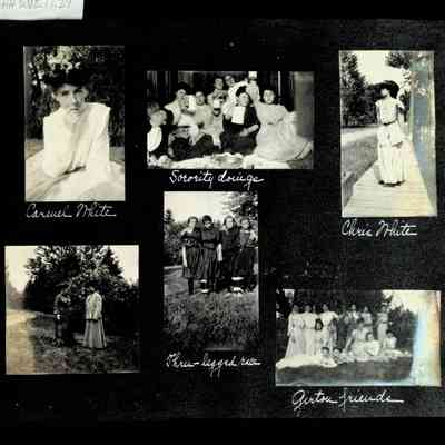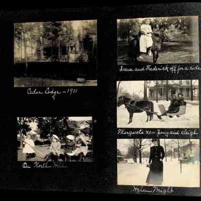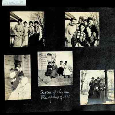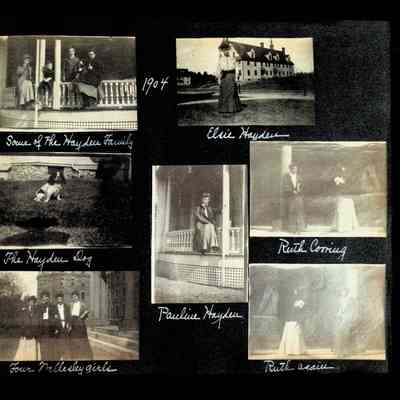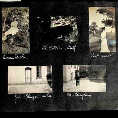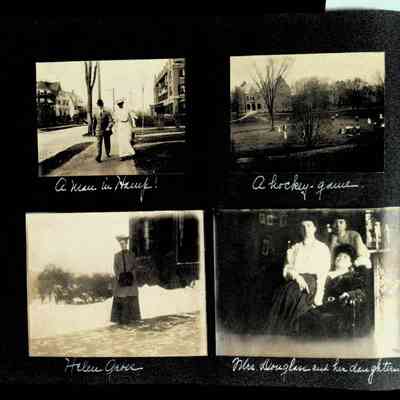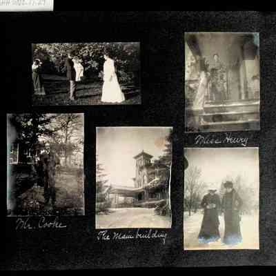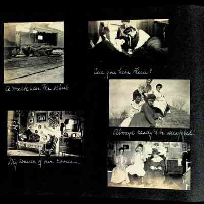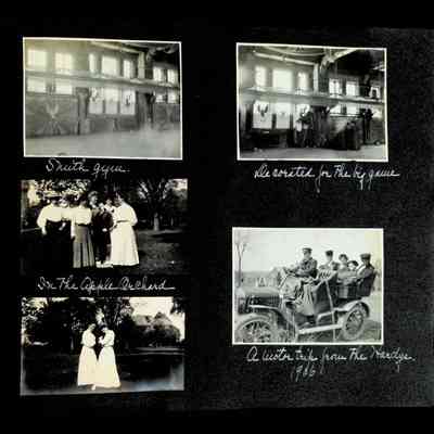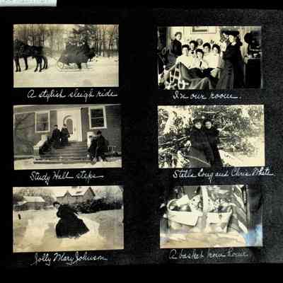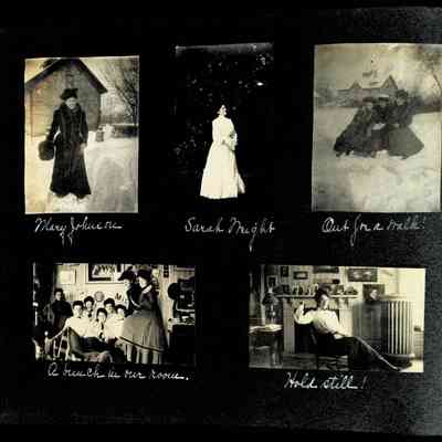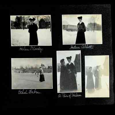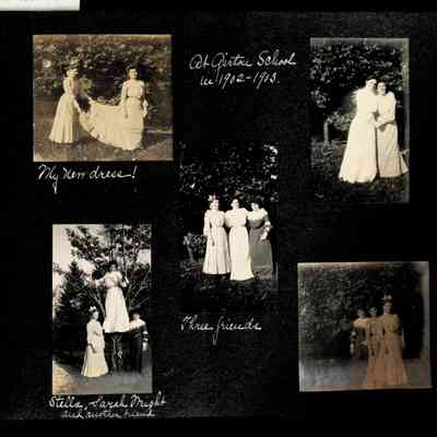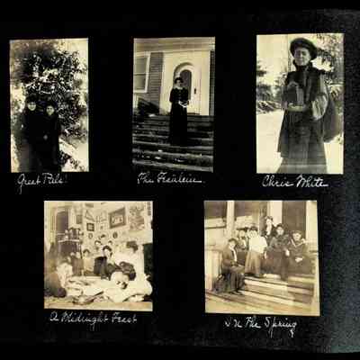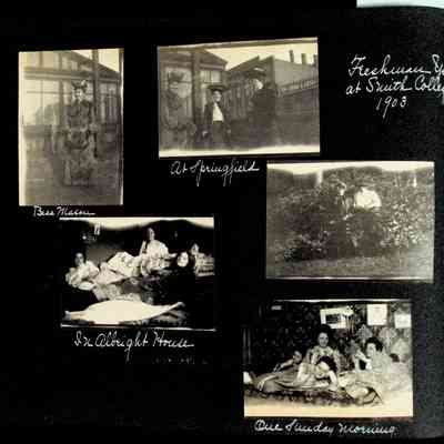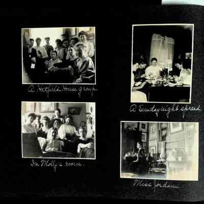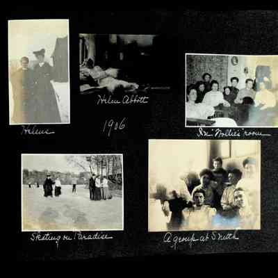 Photographic scrapbook album created by Helen Wolle between 1901 - 1906 including photos from Cambria, WY; Hessel, MI; Kansas City, MO; Girton School; and Smith College. 101 pages.Collection