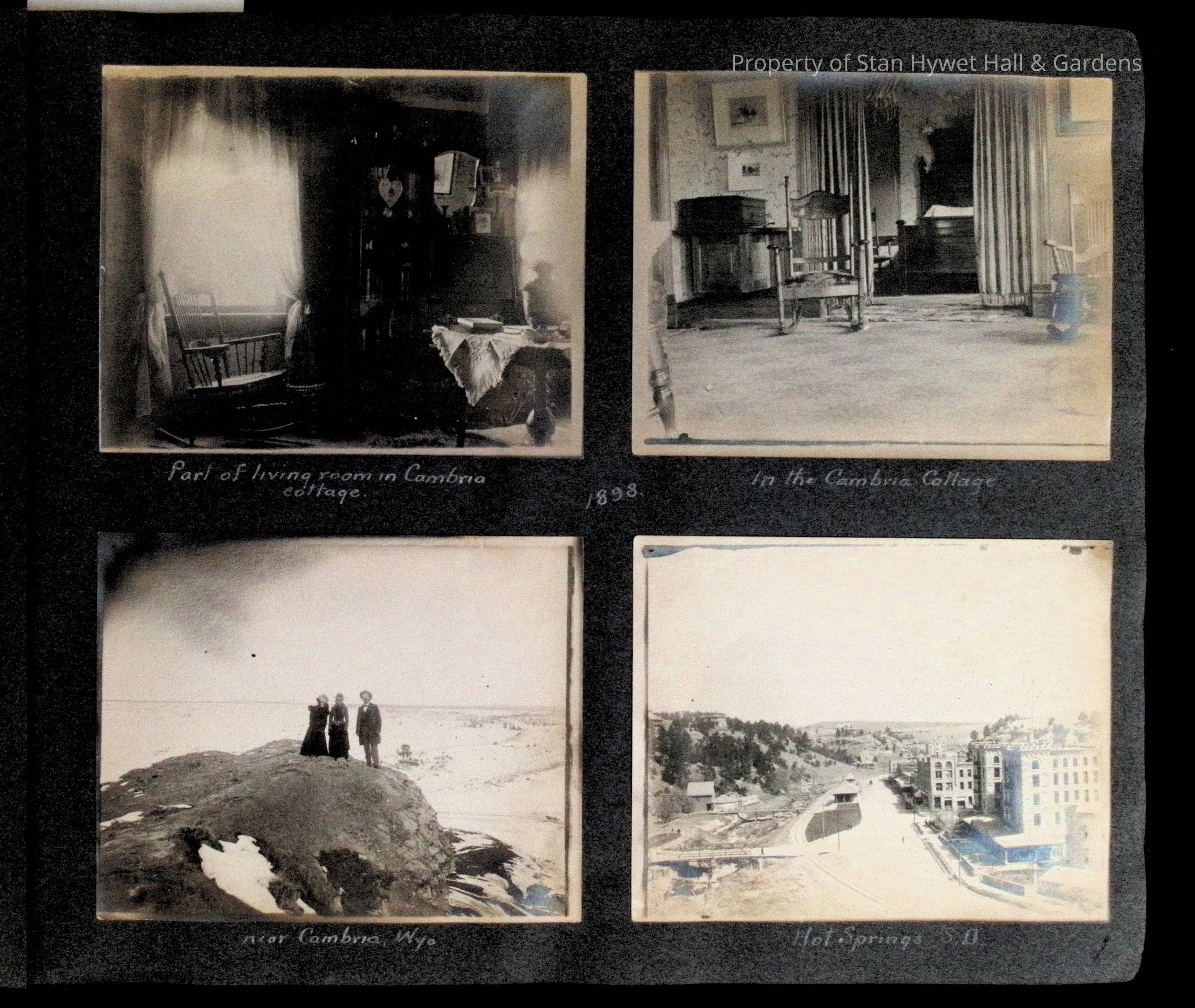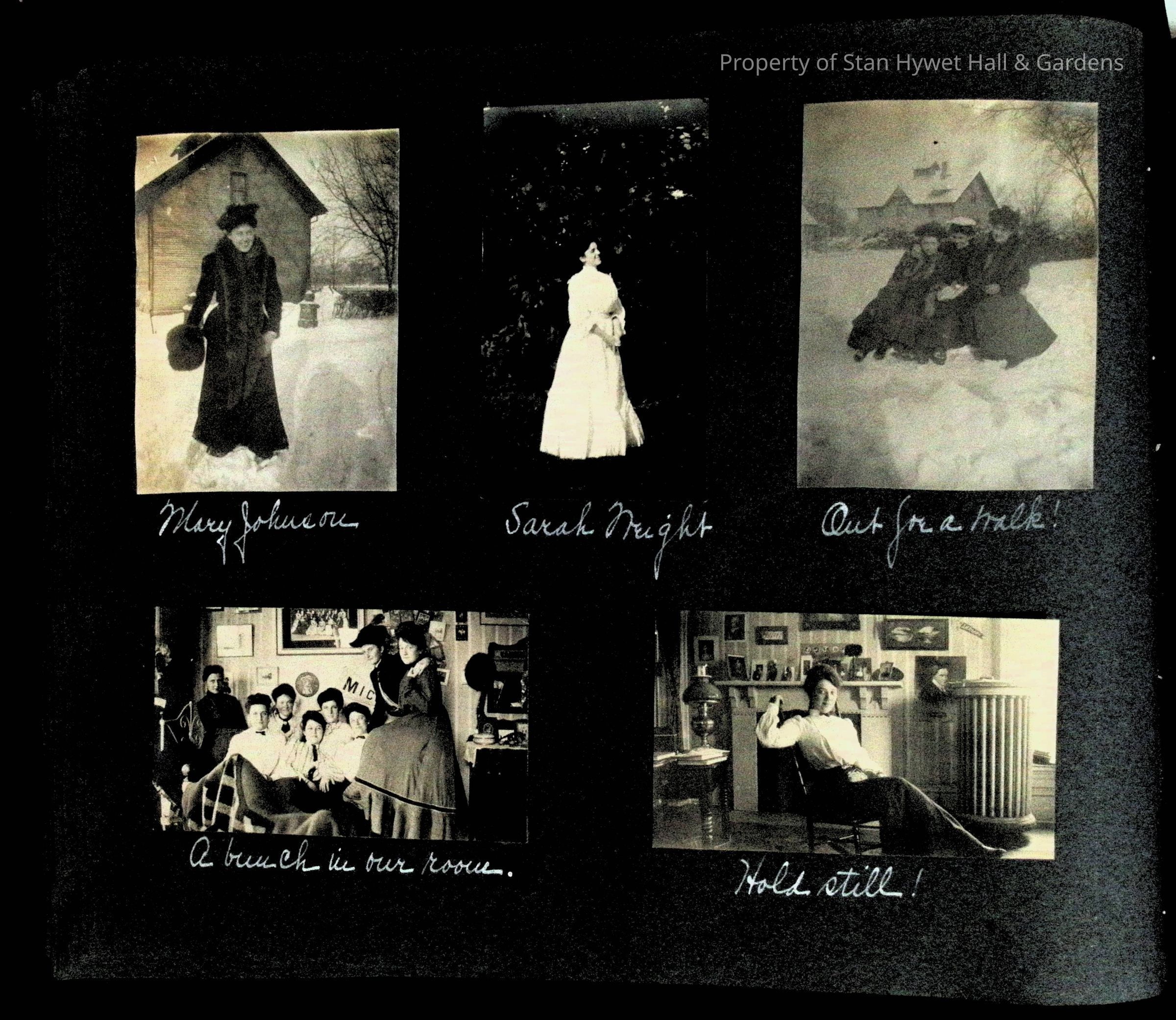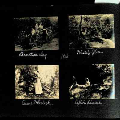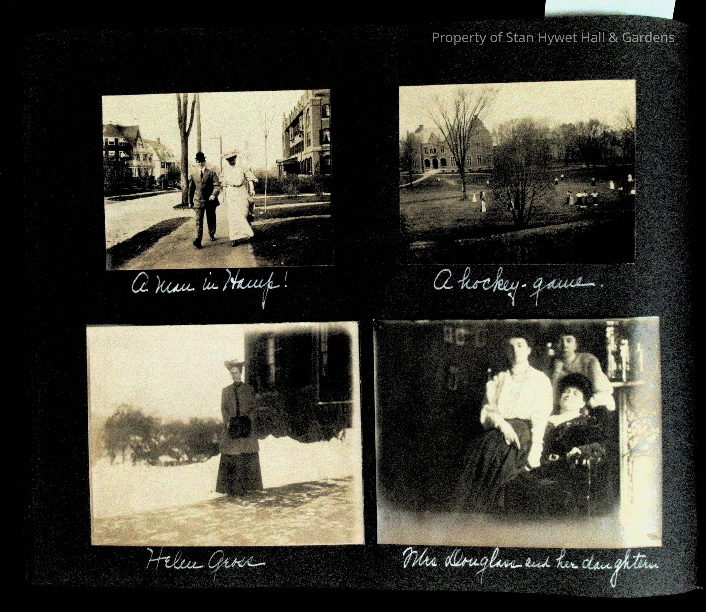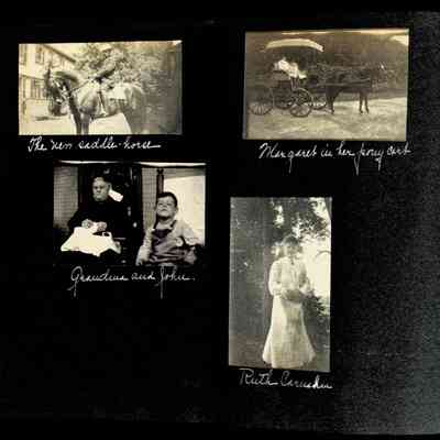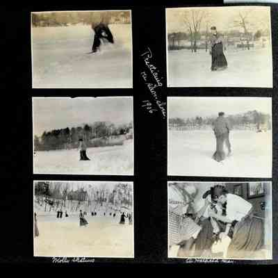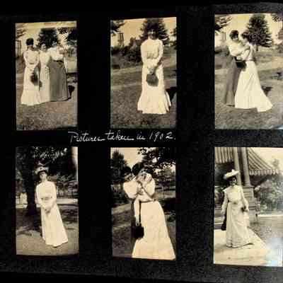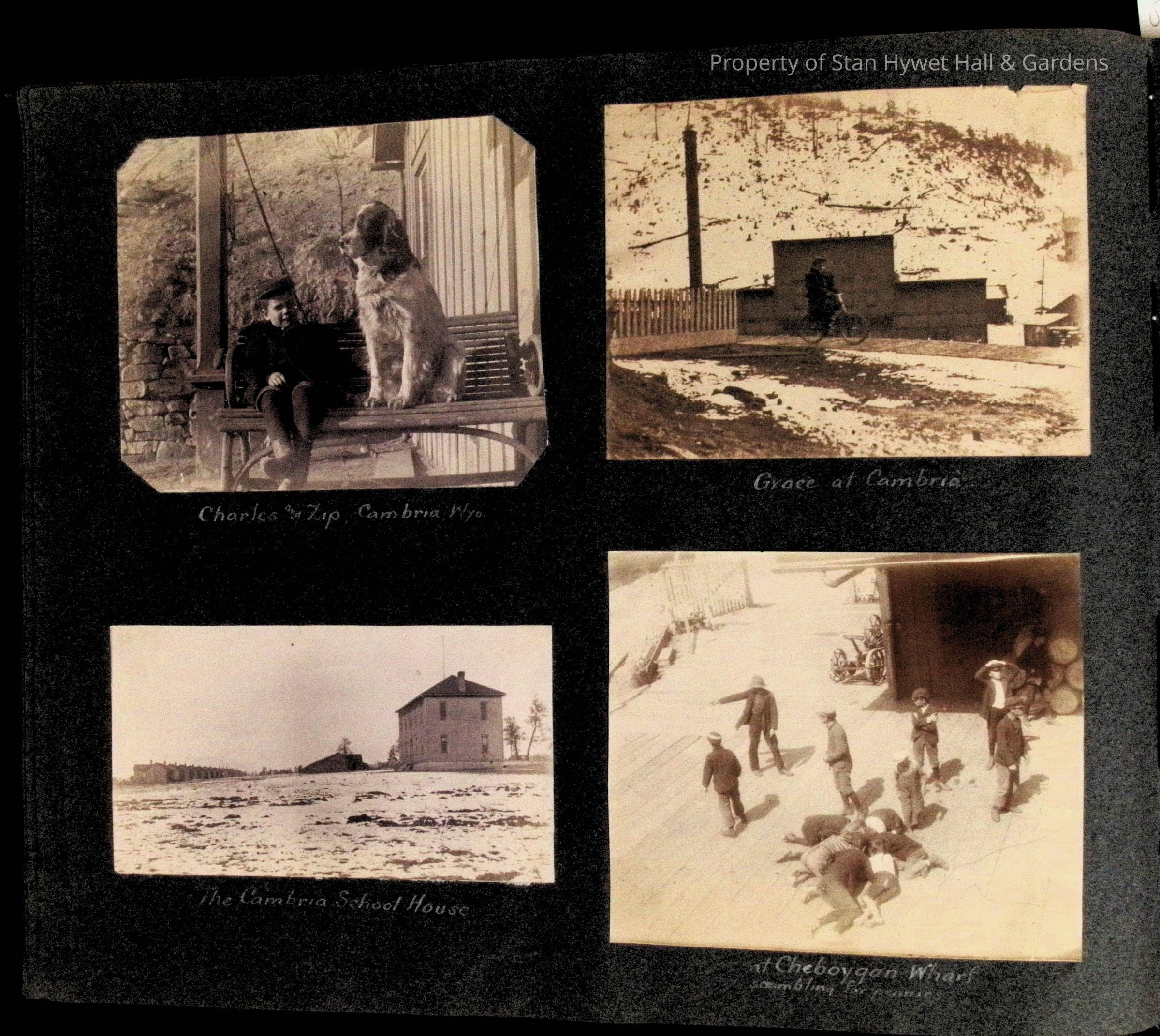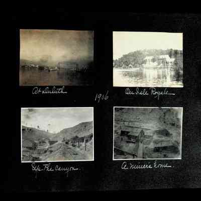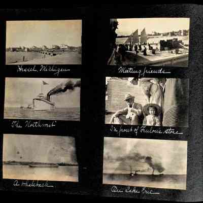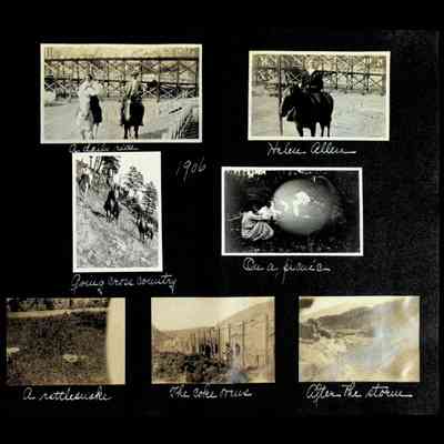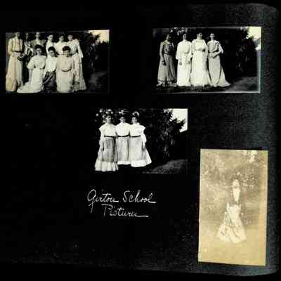 Photographic scrapbook album created by Helen Wolle between 1901 - 1906 including photos from Cambria, WY; Hessel, MI; Kansas City, MO; Girton School; and Smith College. 101 pages.Collection