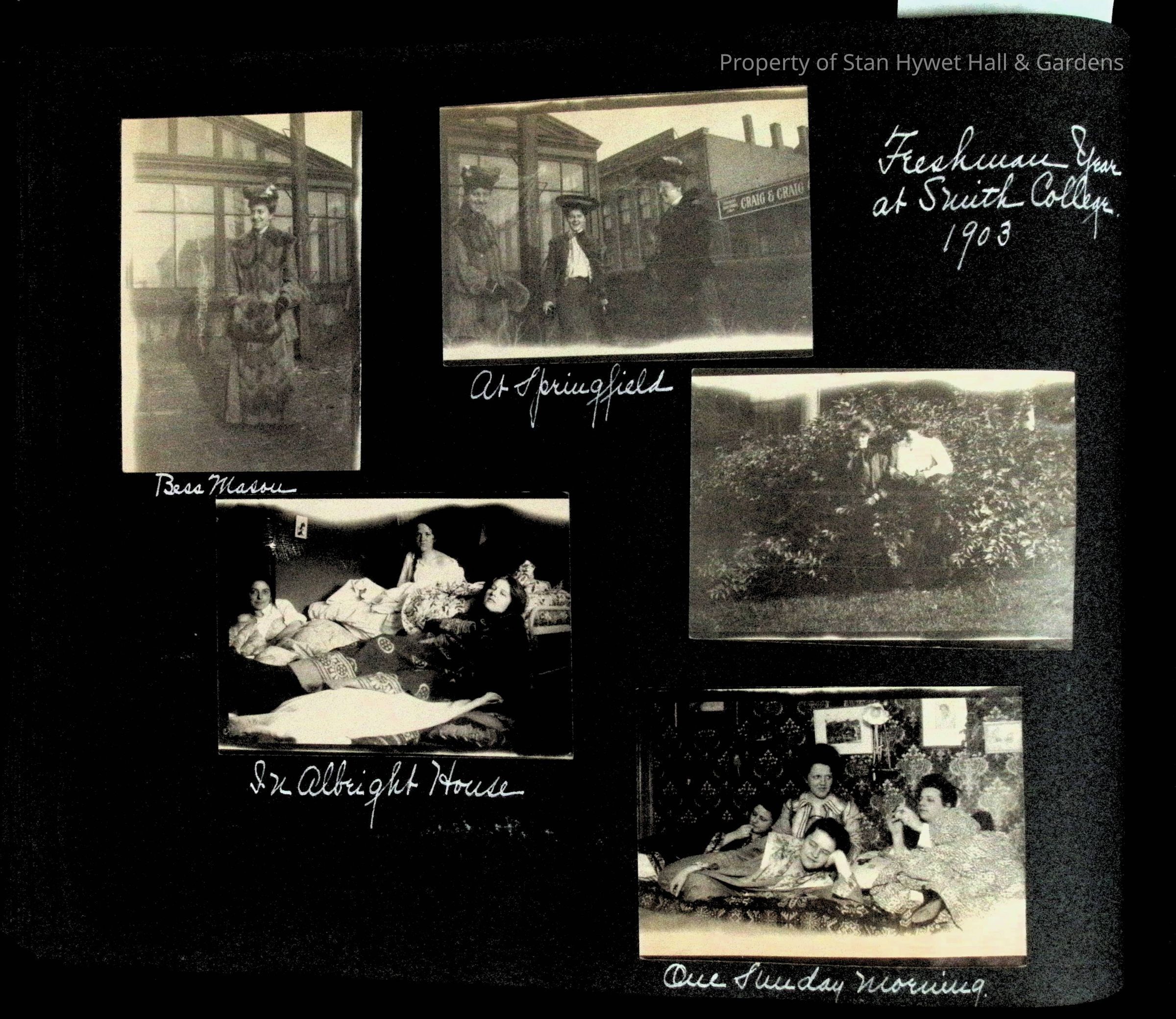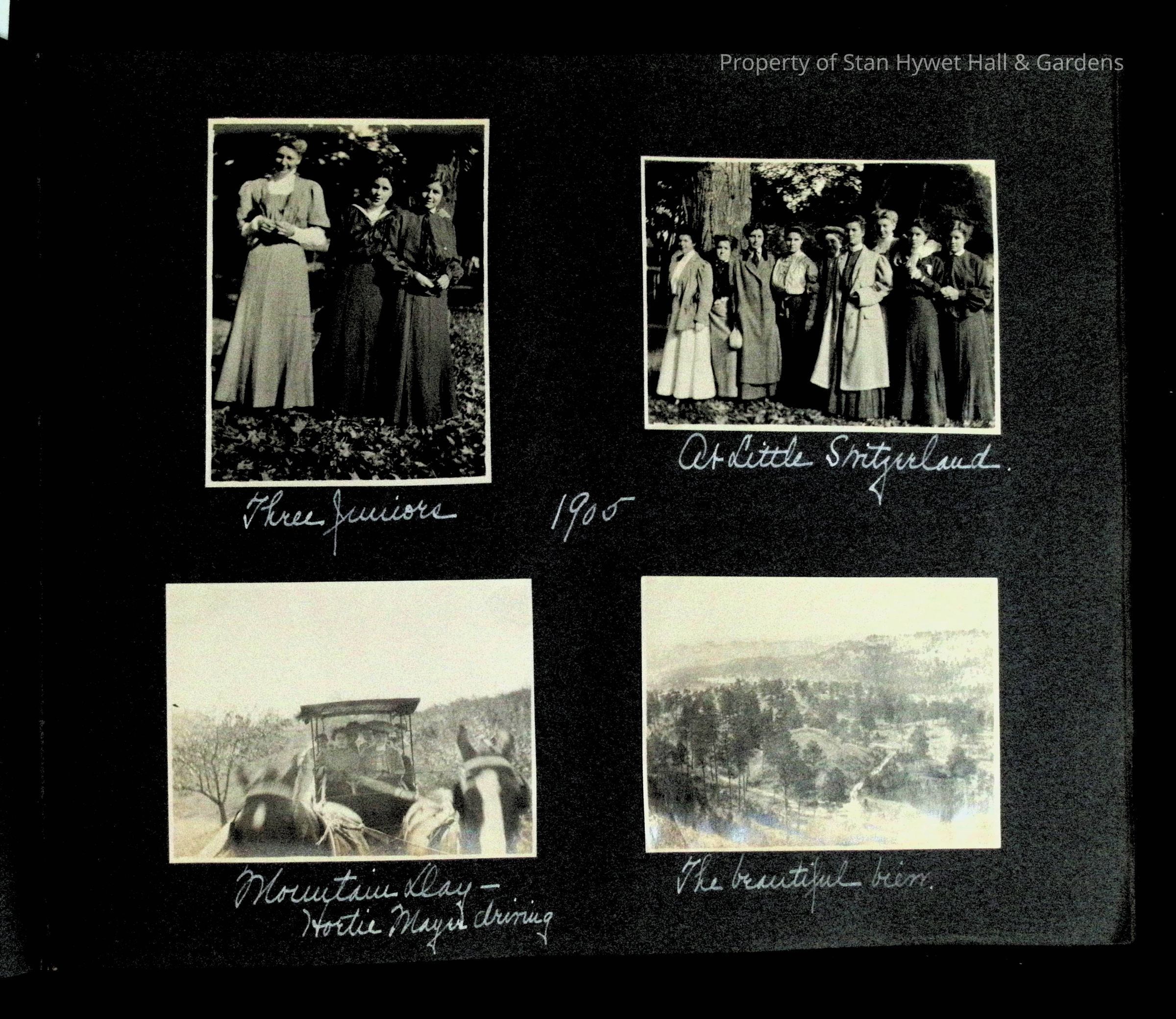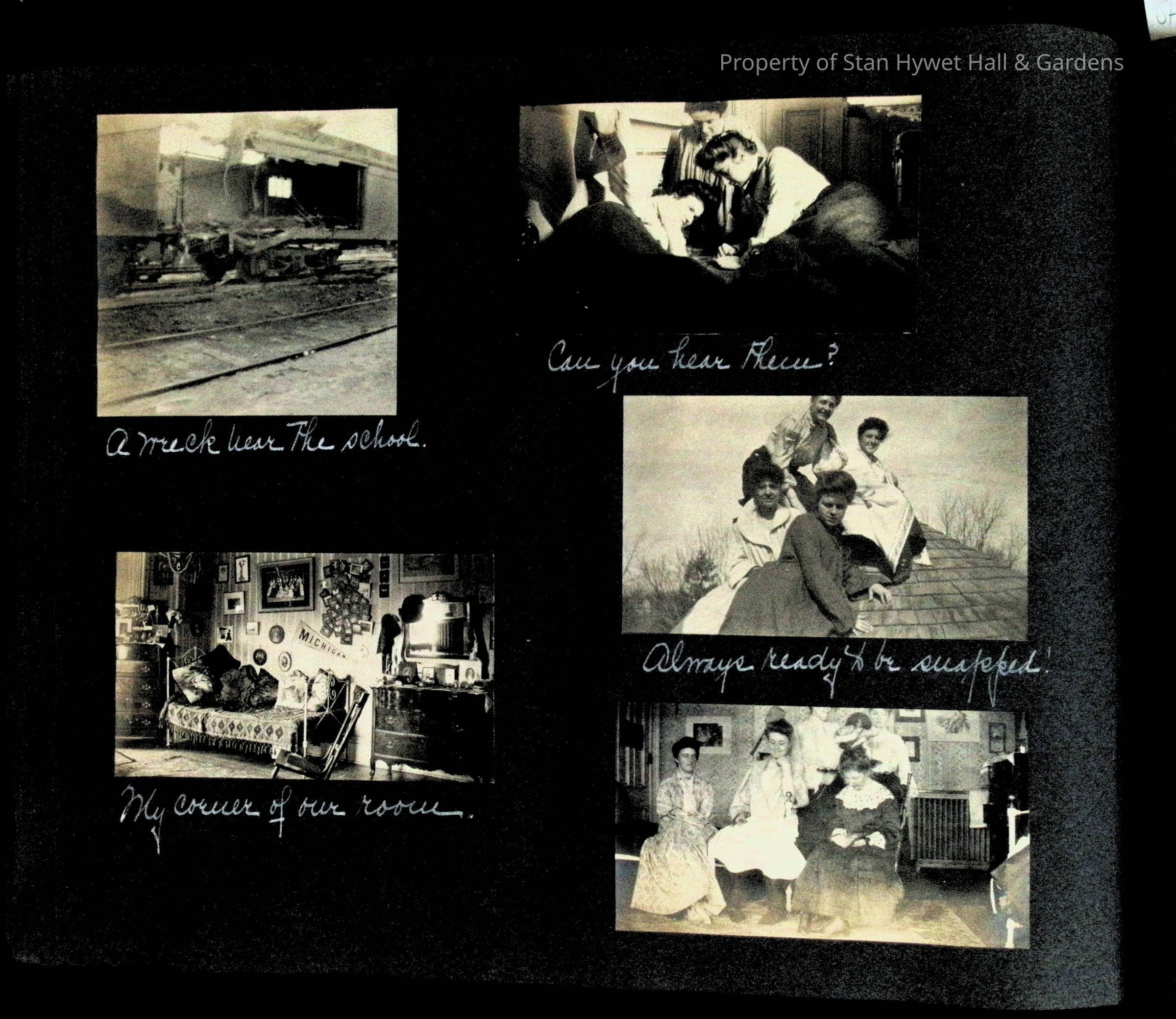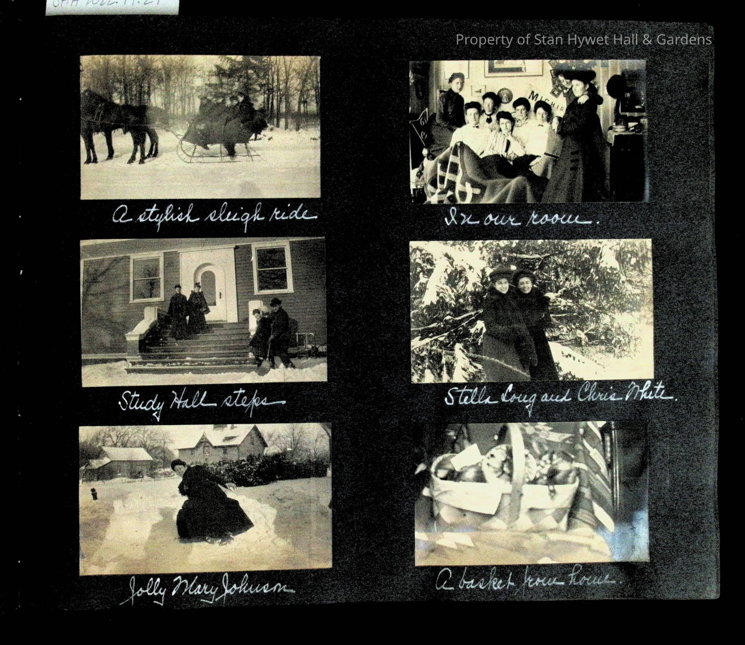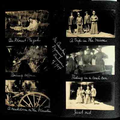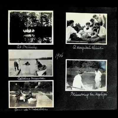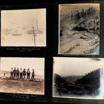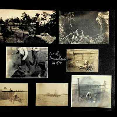 Photographic scrapbook album created by Helen Wolle between 1901 - 1906 including photos from Cambria, WY; Hessel, MI; Kansas City, MO; Girton School; and Smith College. 101 pages.Collection