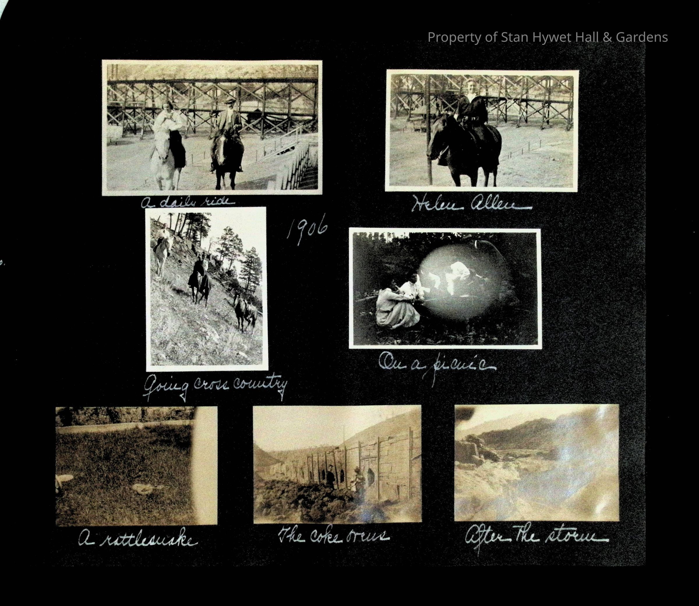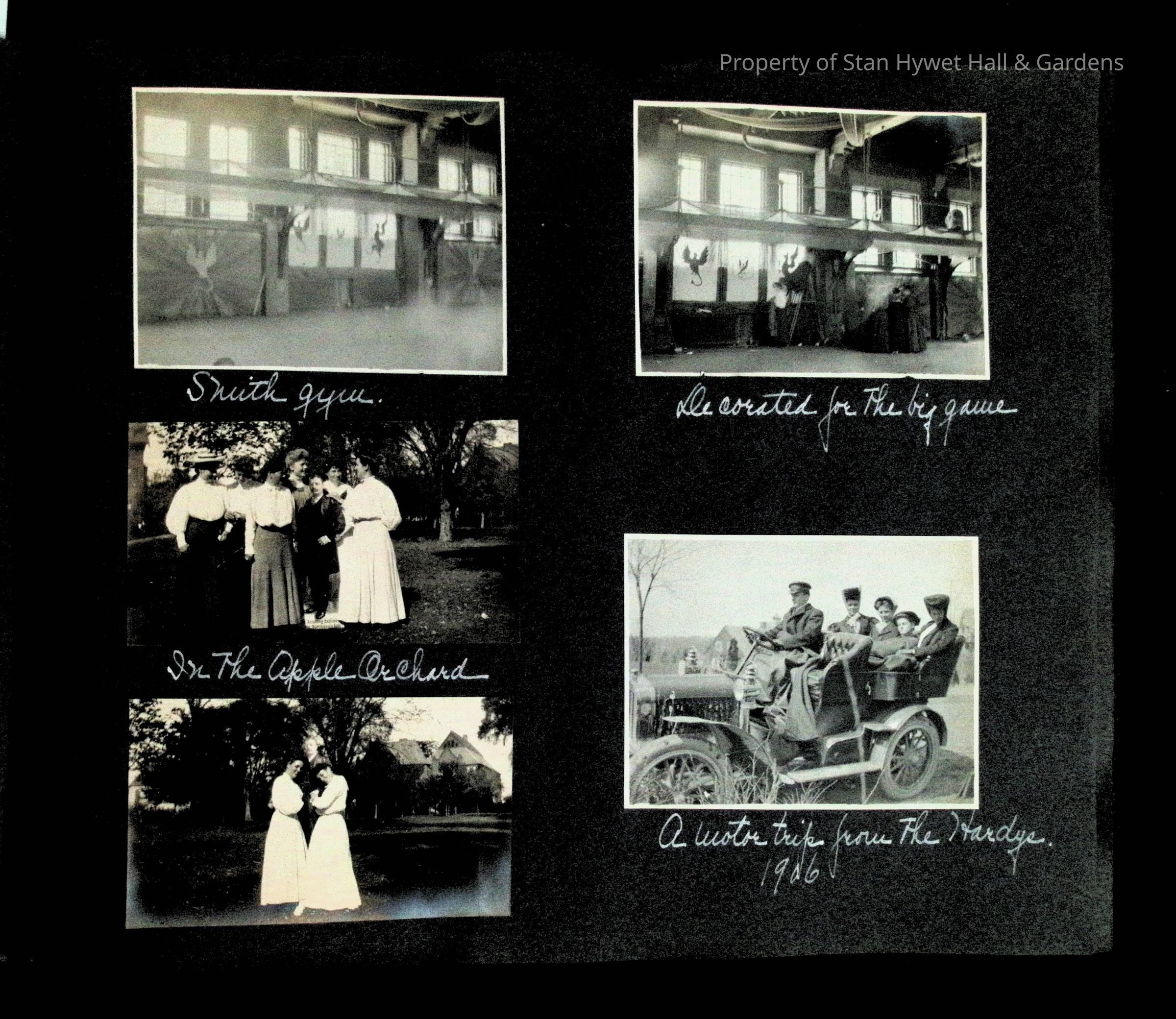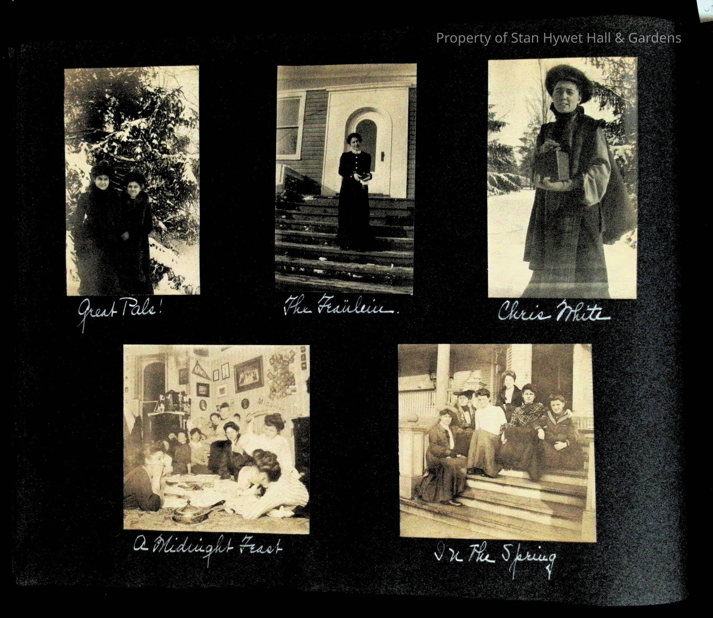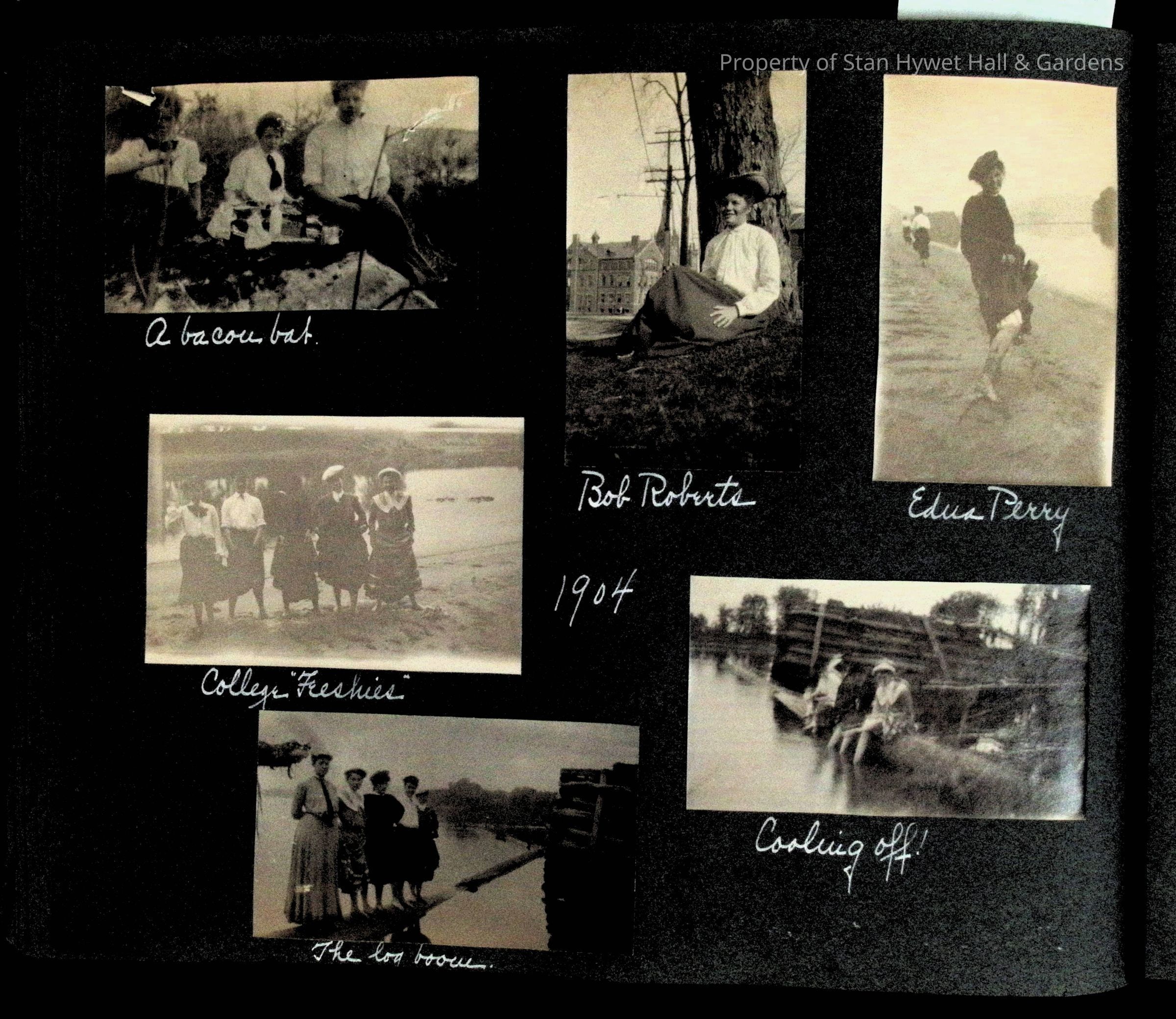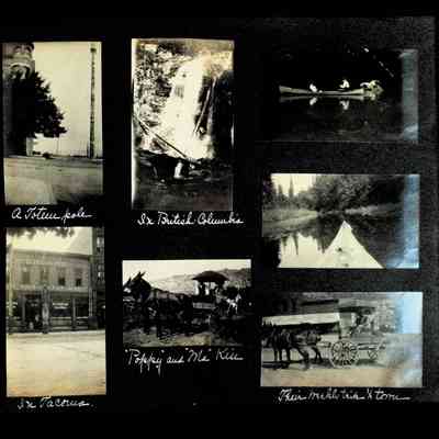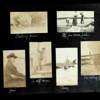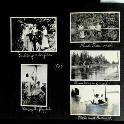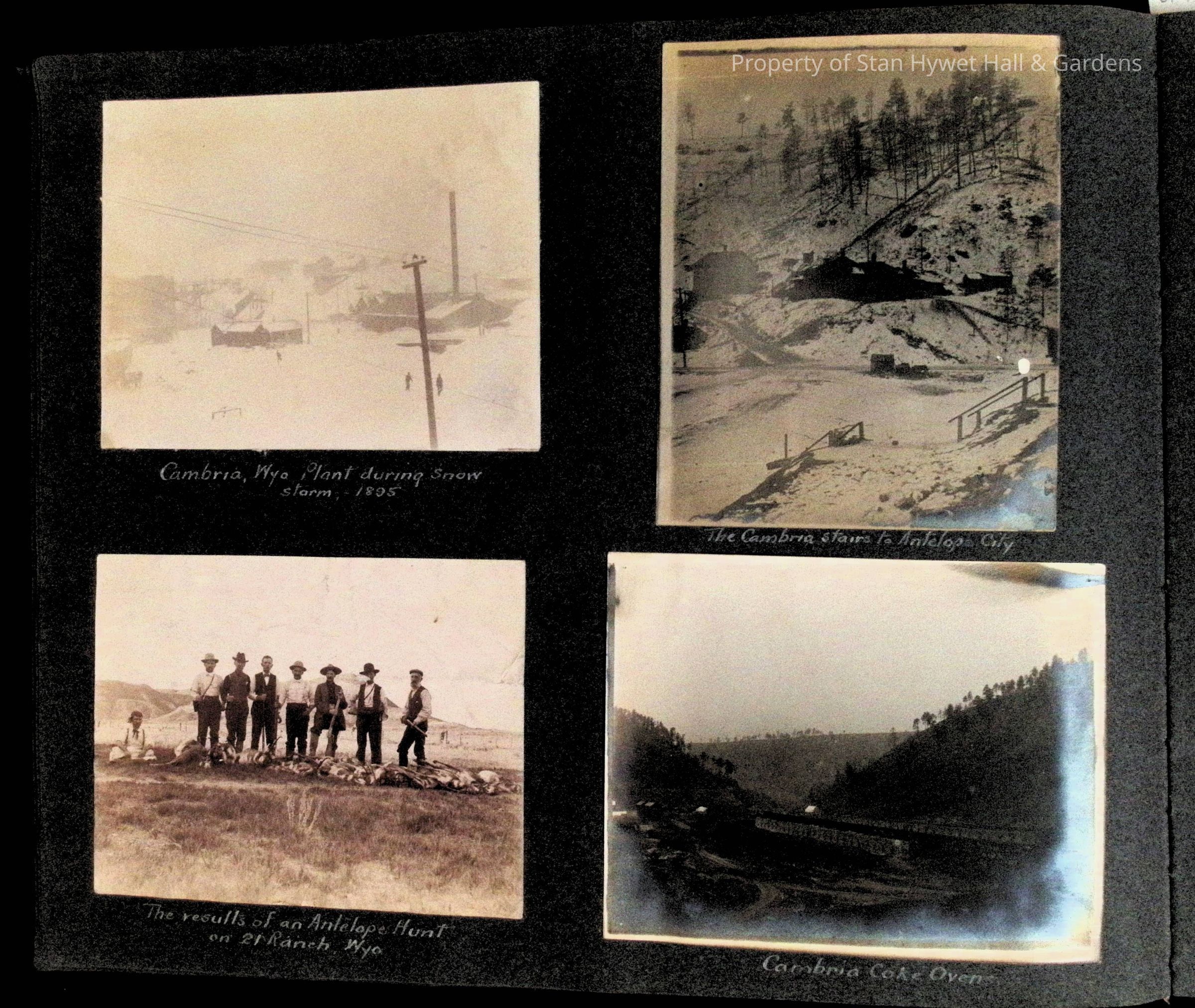 Photographic scrapbook album created by Helen Wolle between 1901 - 1906 including photos from Cambria, WY; Hessel, MI; Kansas City, MO; Girton School; and Smith College. 101 pages.Collection