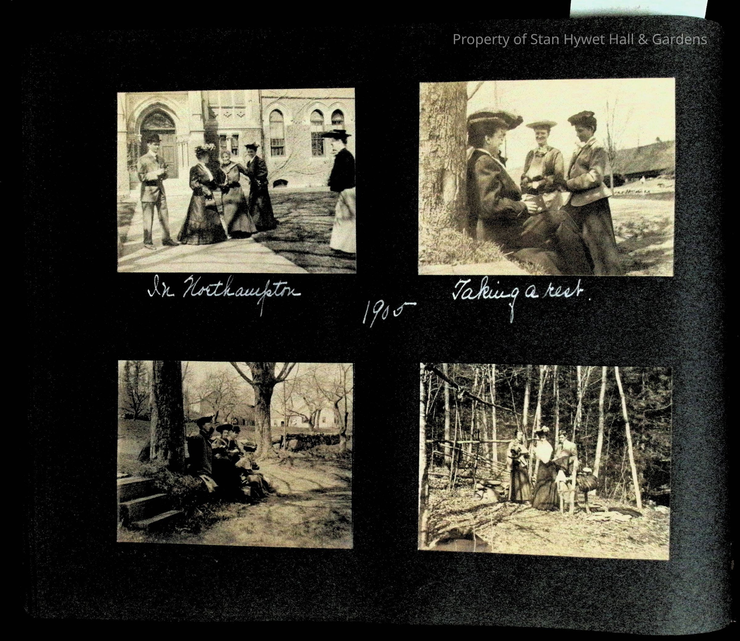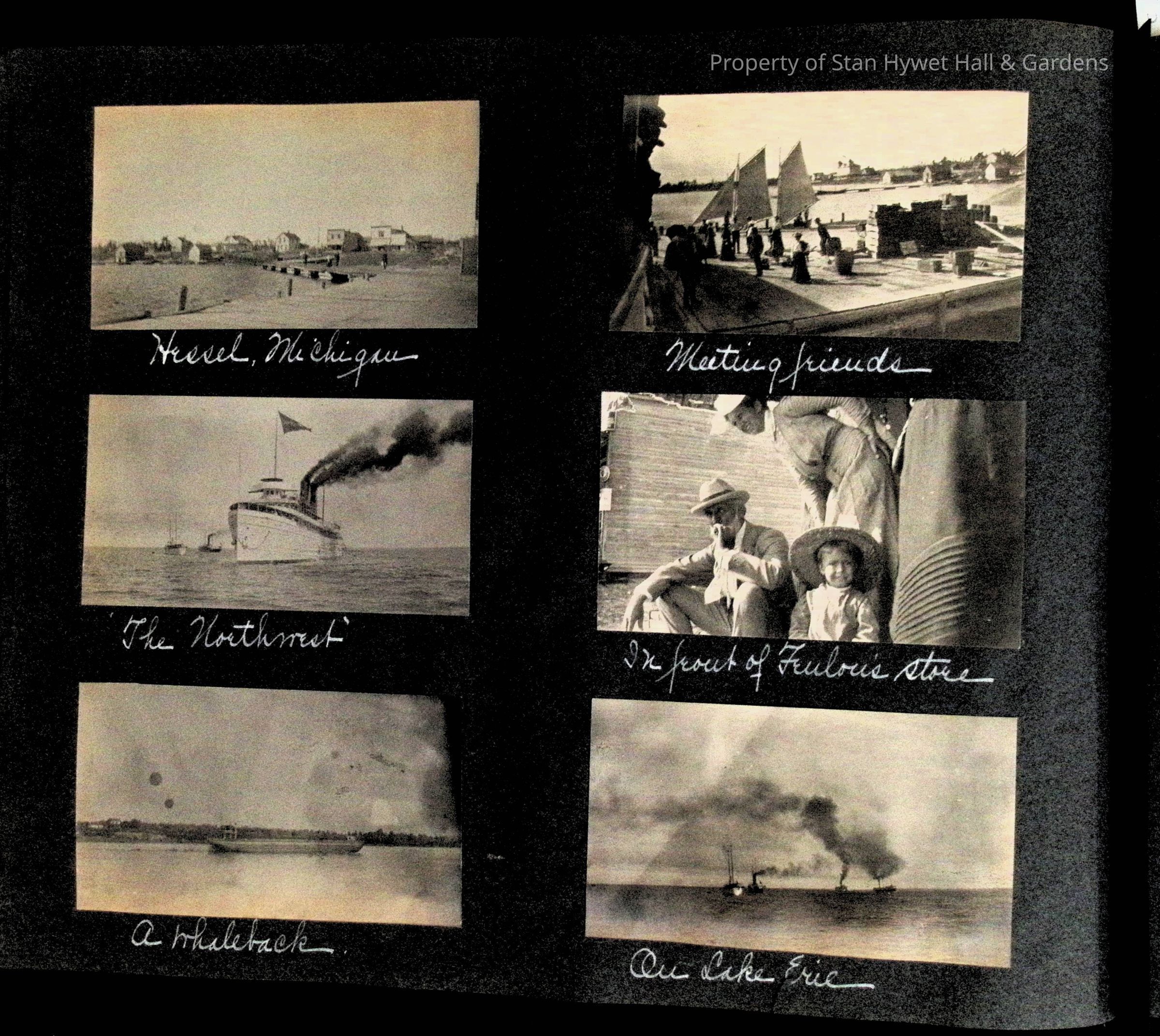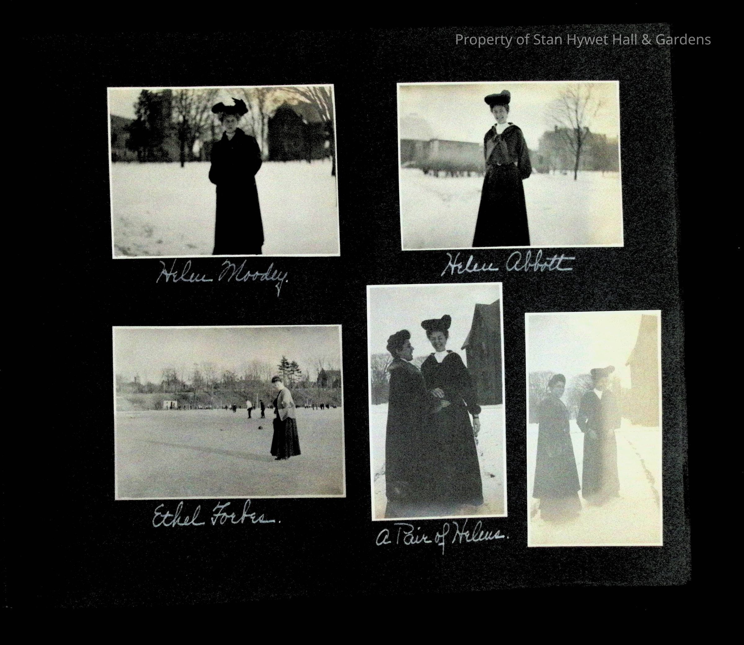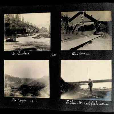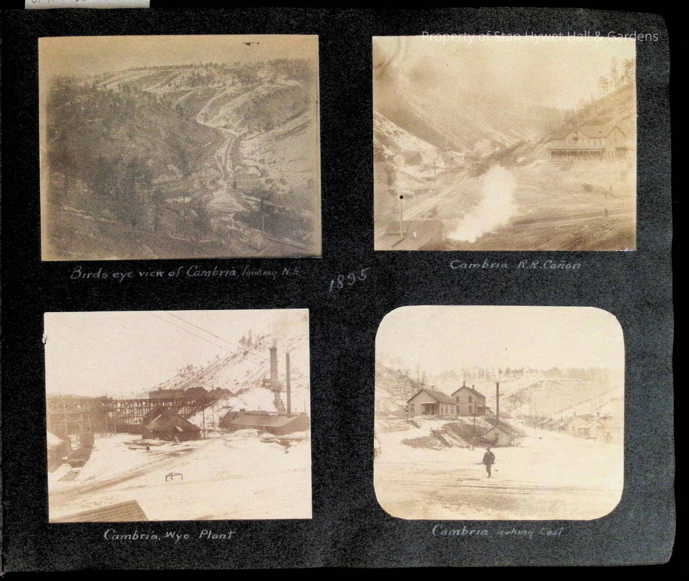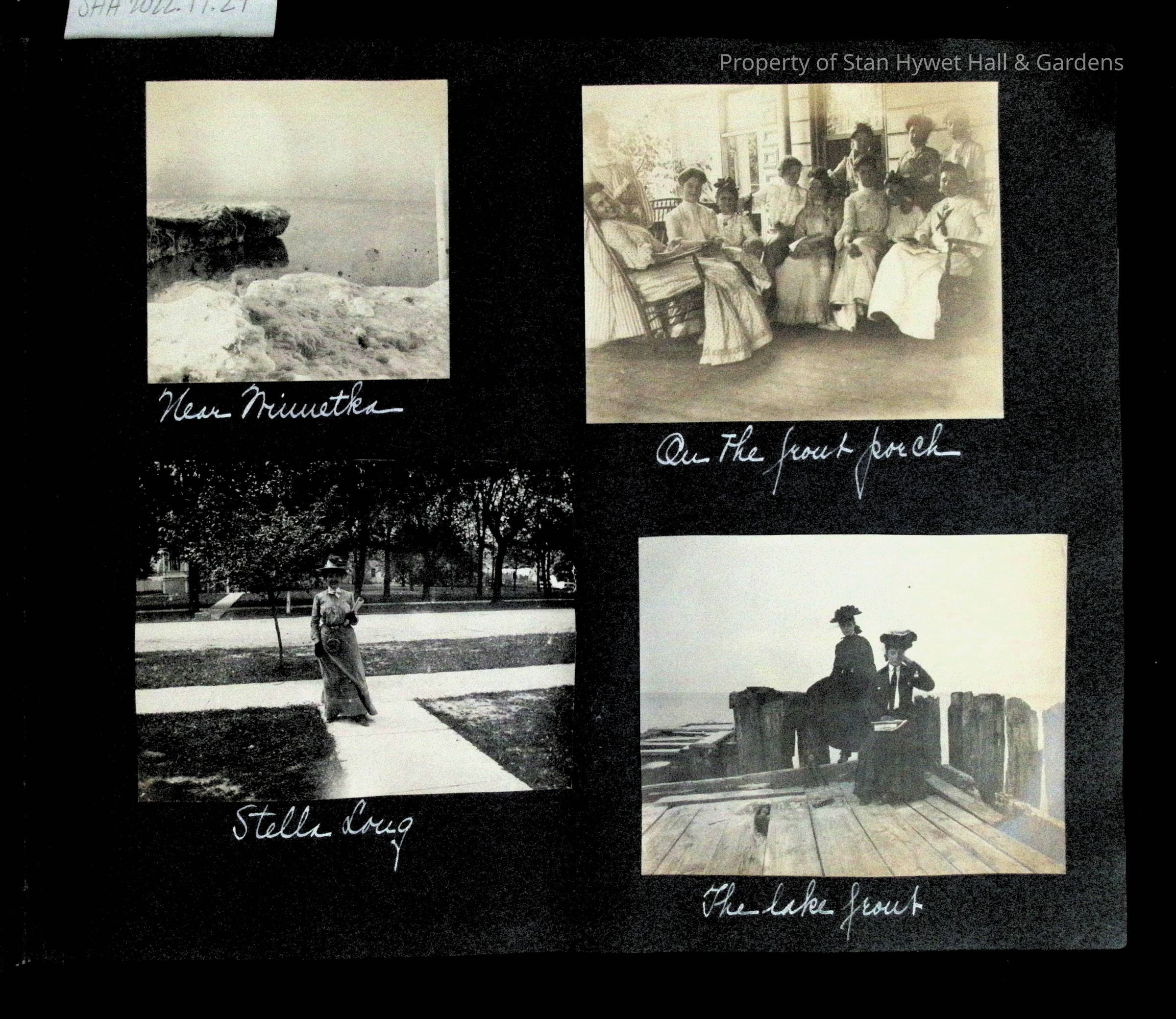 Photographic scrapbook album created by Helen Wolle between 1901 - 1906 including photos from Cambria, WY; Hessel, MI; Kansas City, MO; Girton School; and Smith College. 101 pages.Collection
