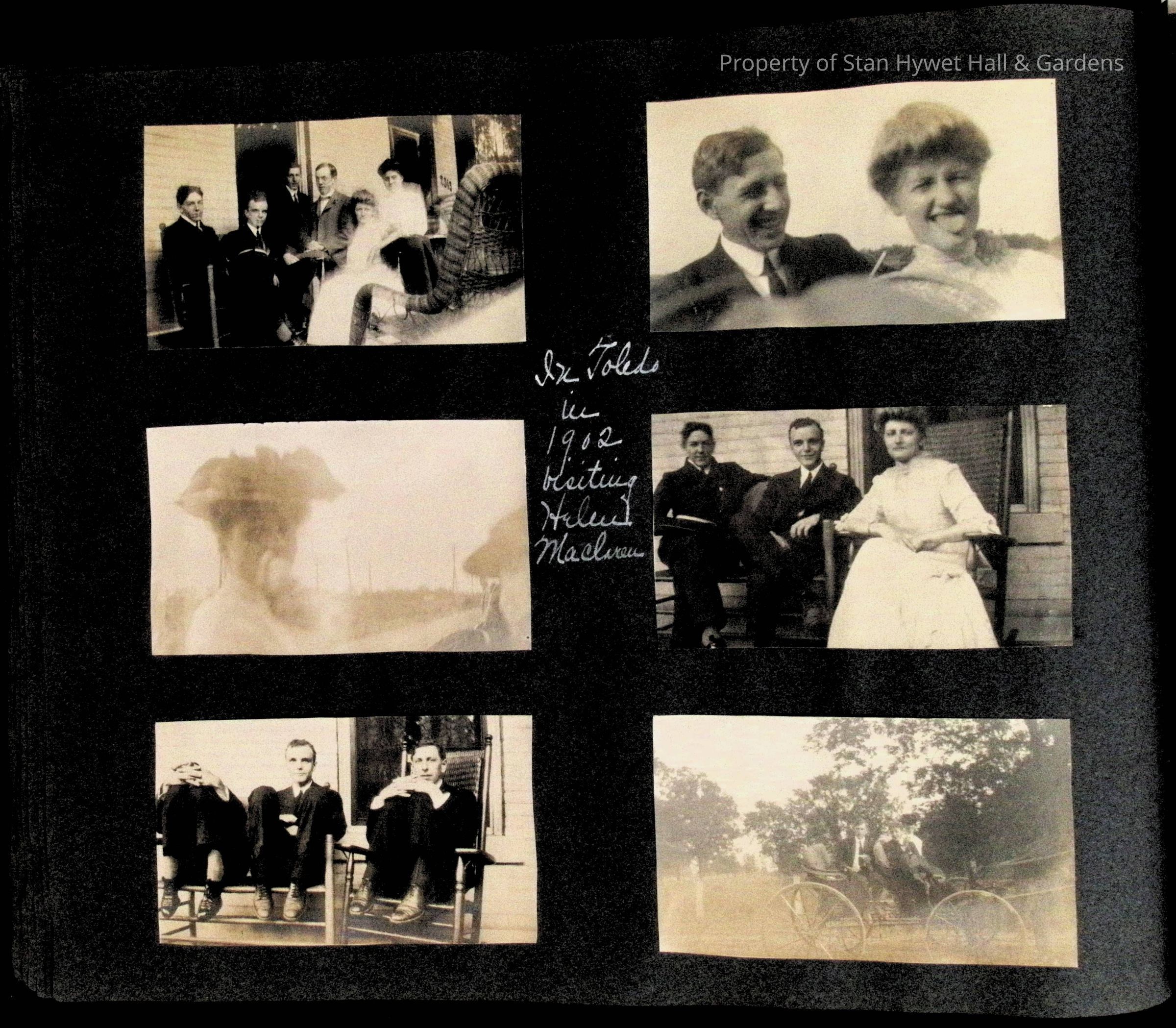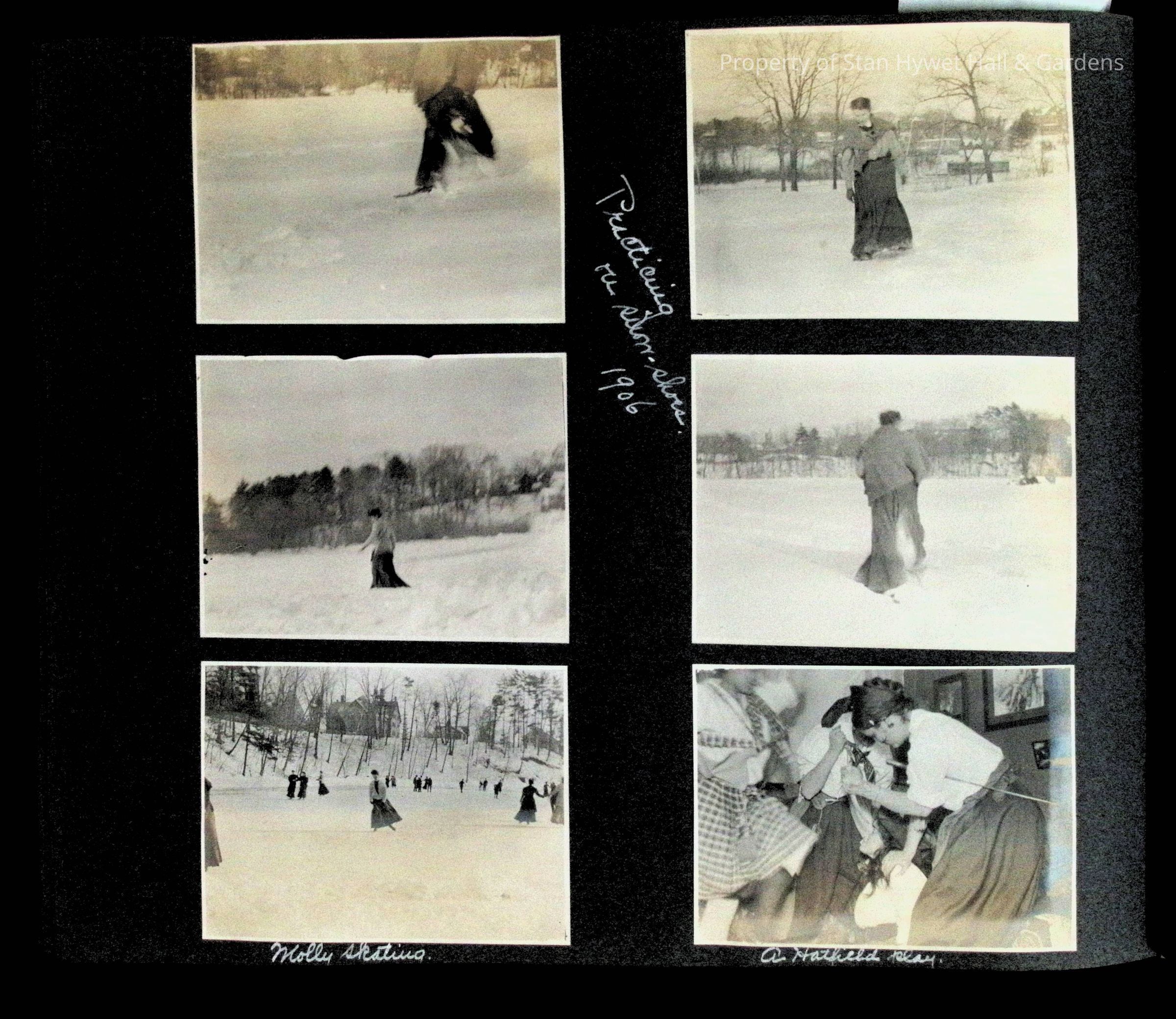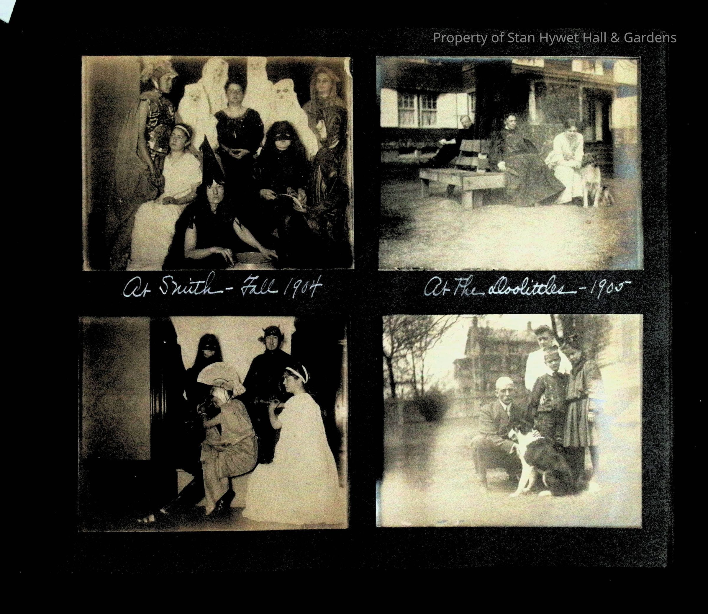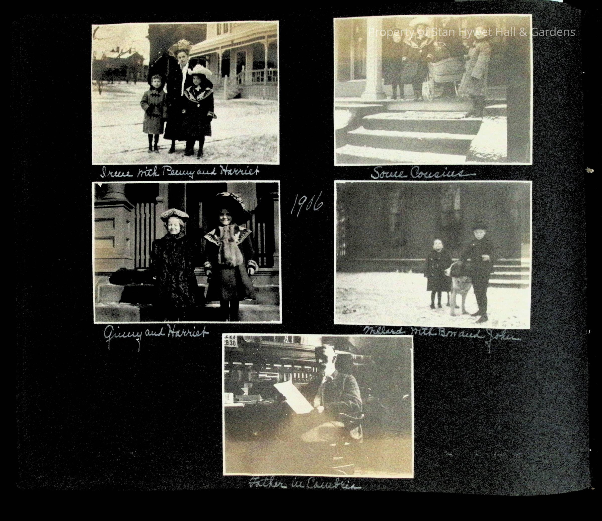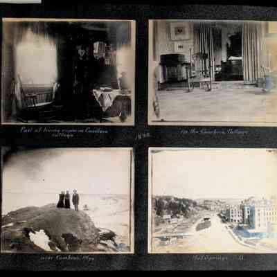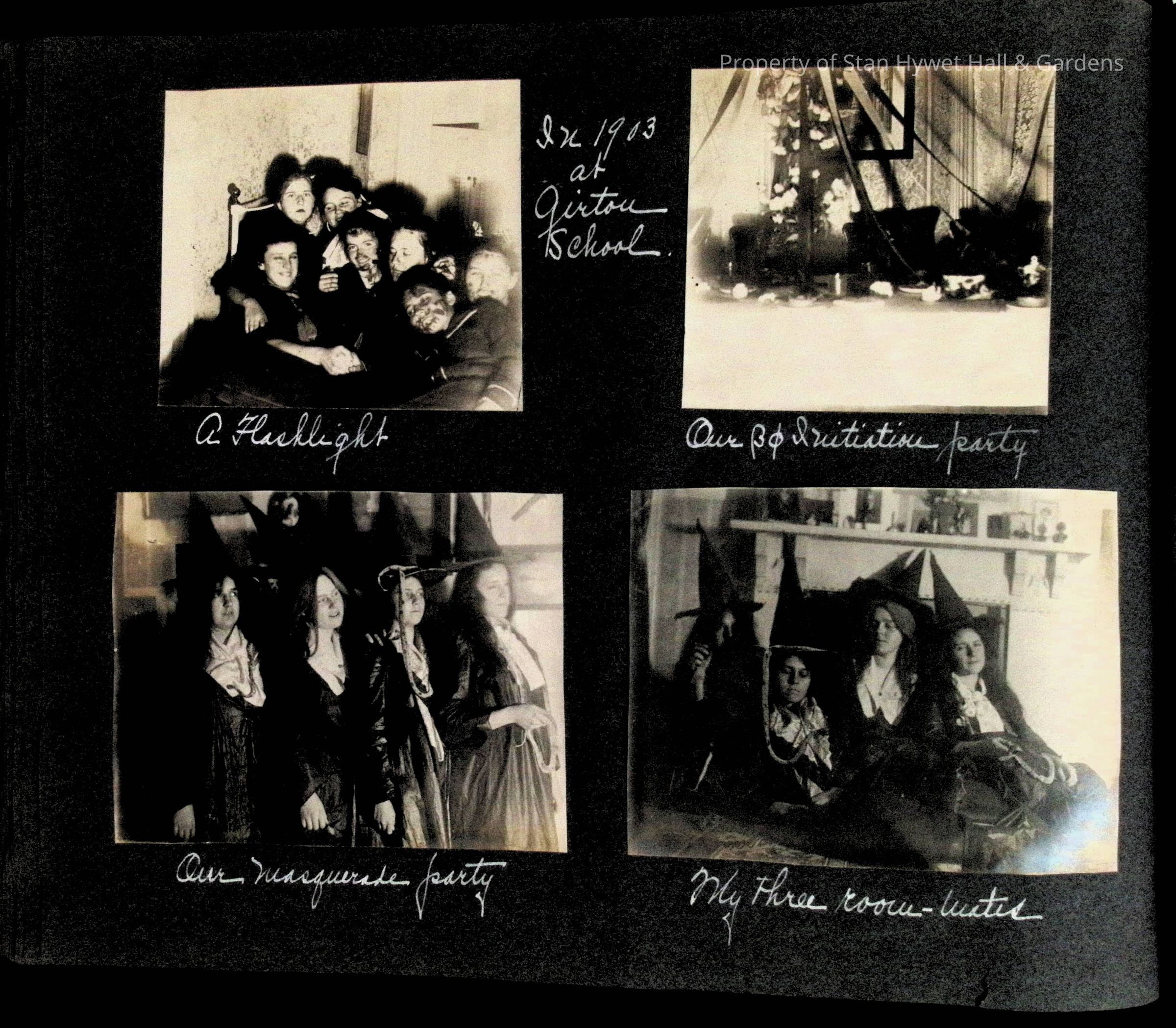 Photographic scrapbook album created by Helen Wolle between 1901 - 1906 including photos from Cambria, WY; Hessel, MI; Kansas City, MO; Girton School; and Smith College. 101 pages.Collection
