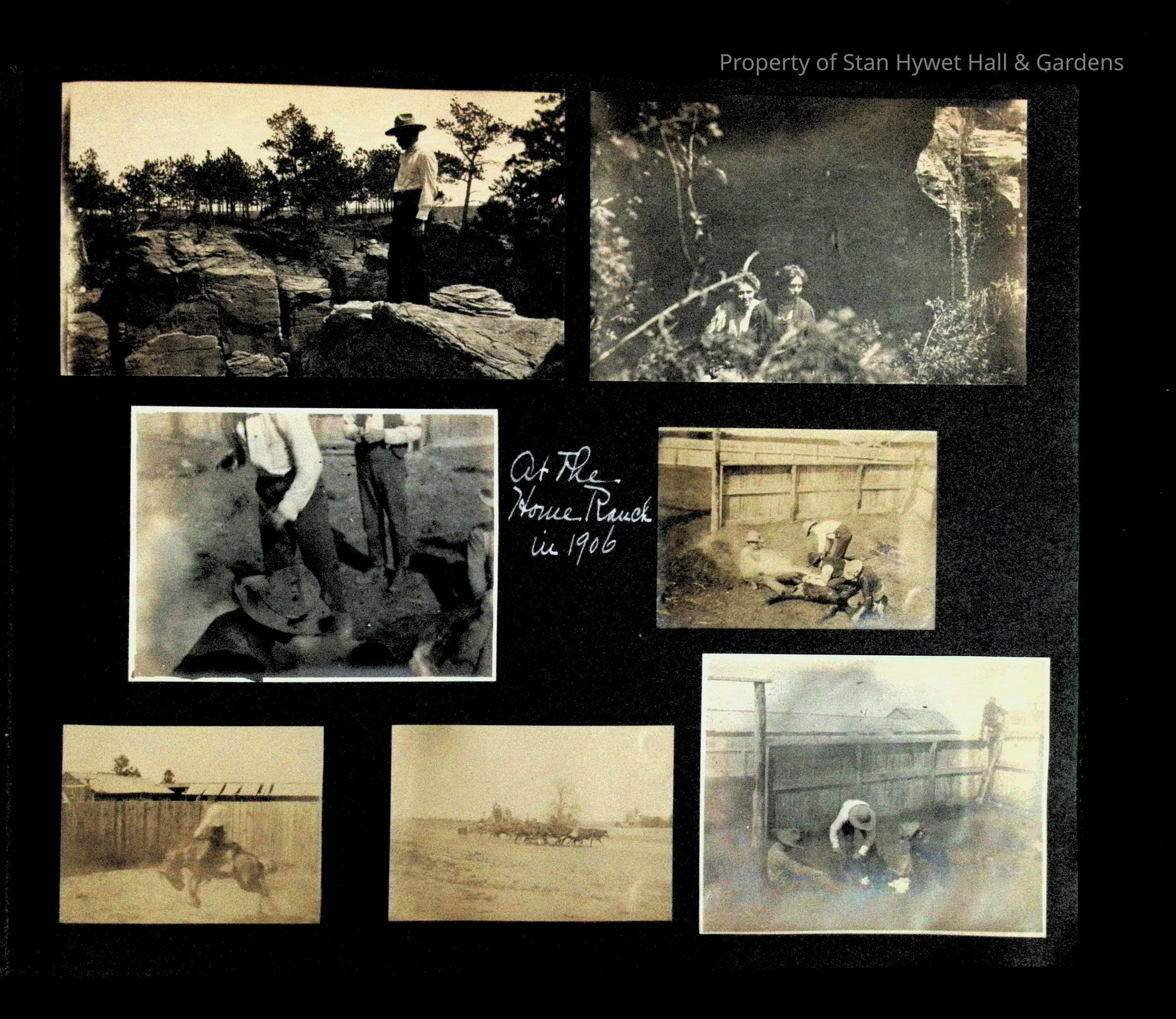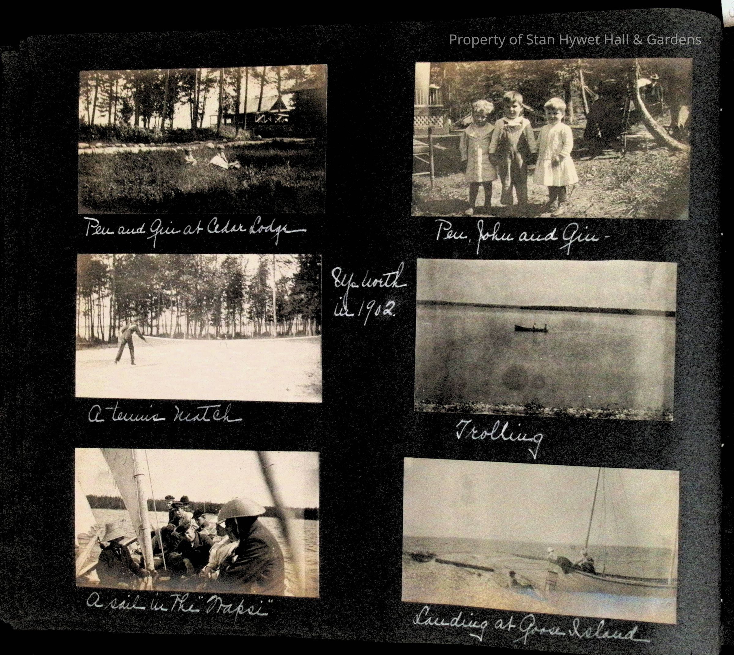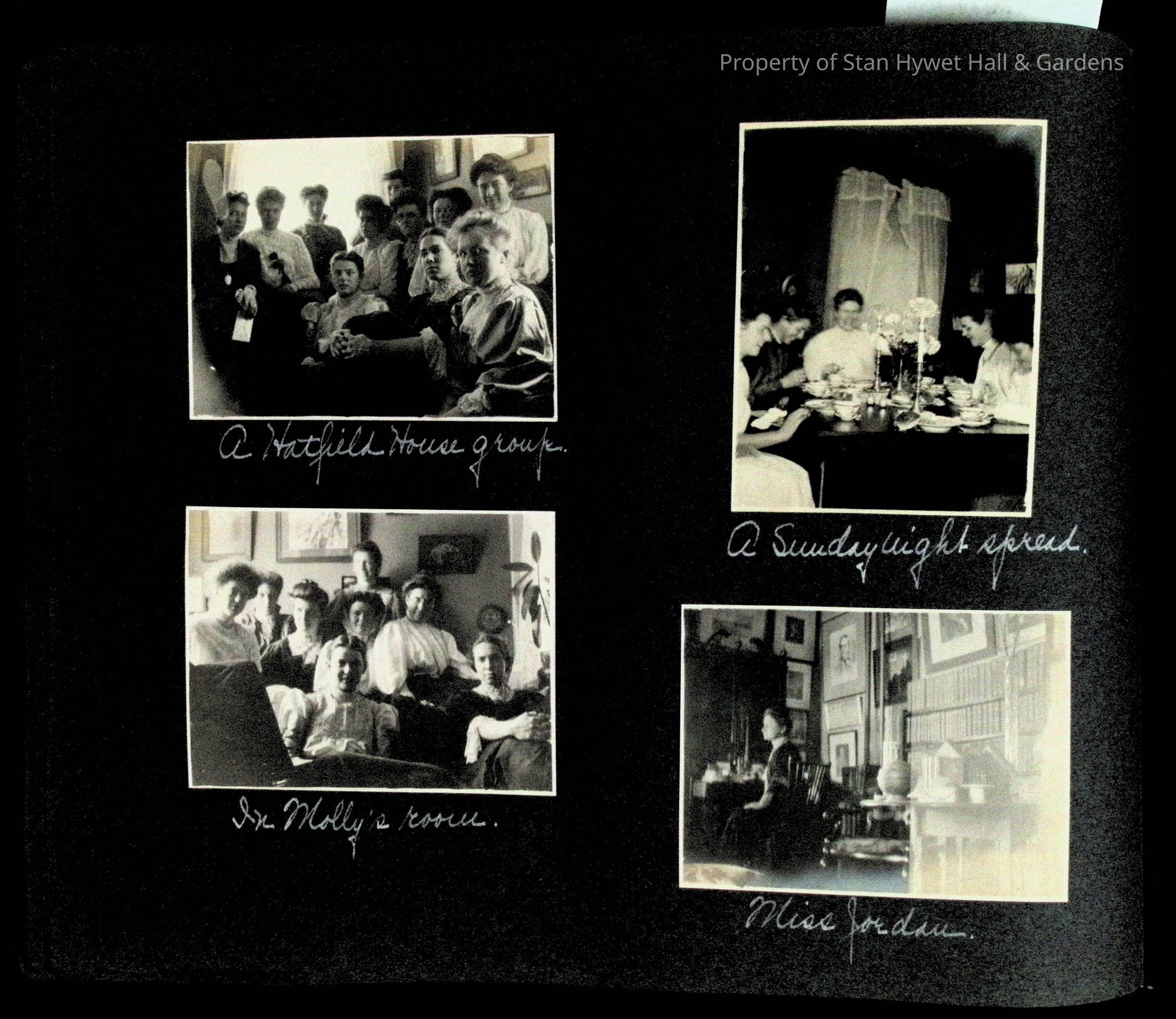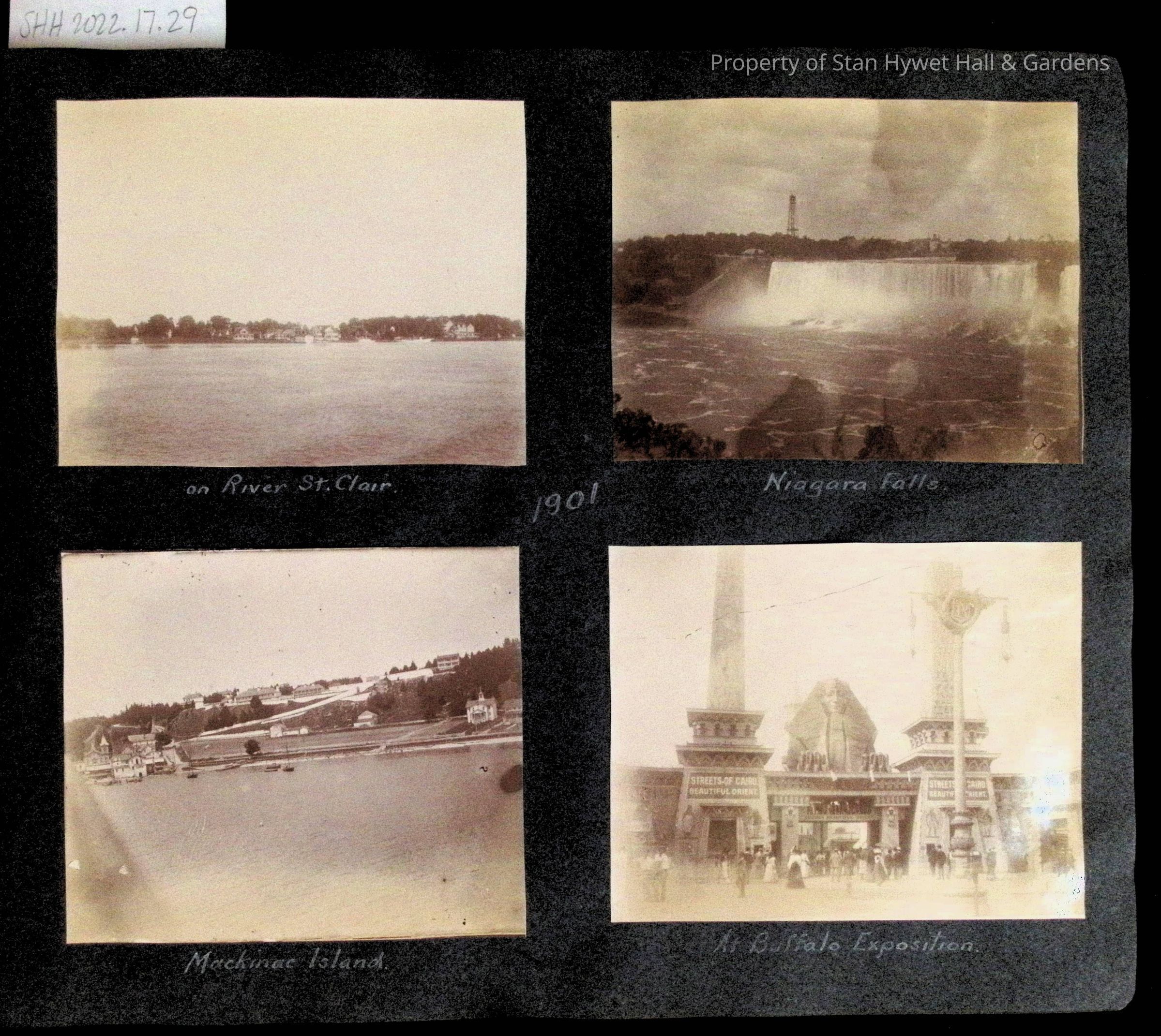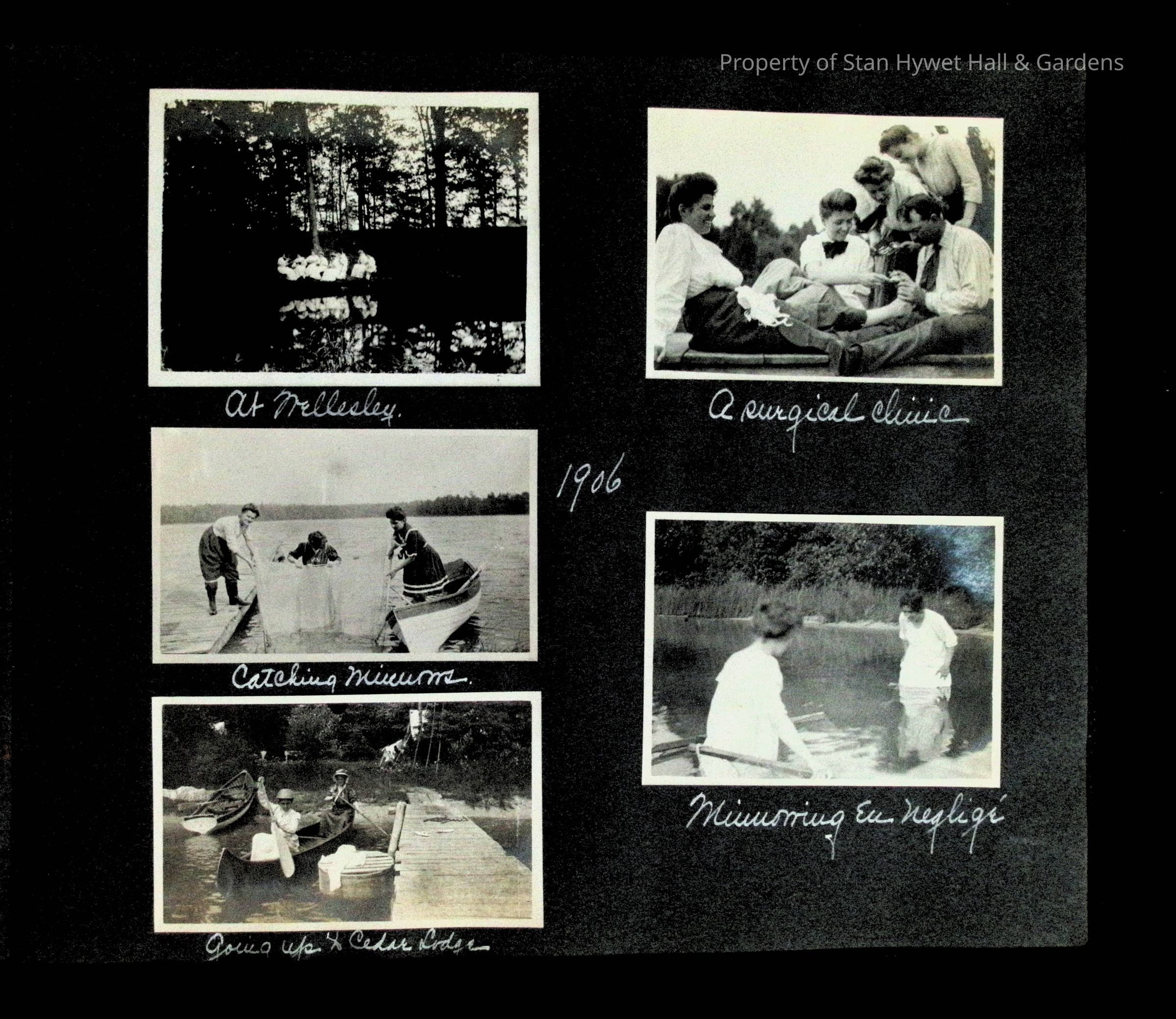 Photographic scrapbook album created by Helen Wolle between 1901 - 1906 including photos from Cambria, WY; Hessel, MI; Kansas City, MO; Girton School; and Smith College. 101 pages.Collection