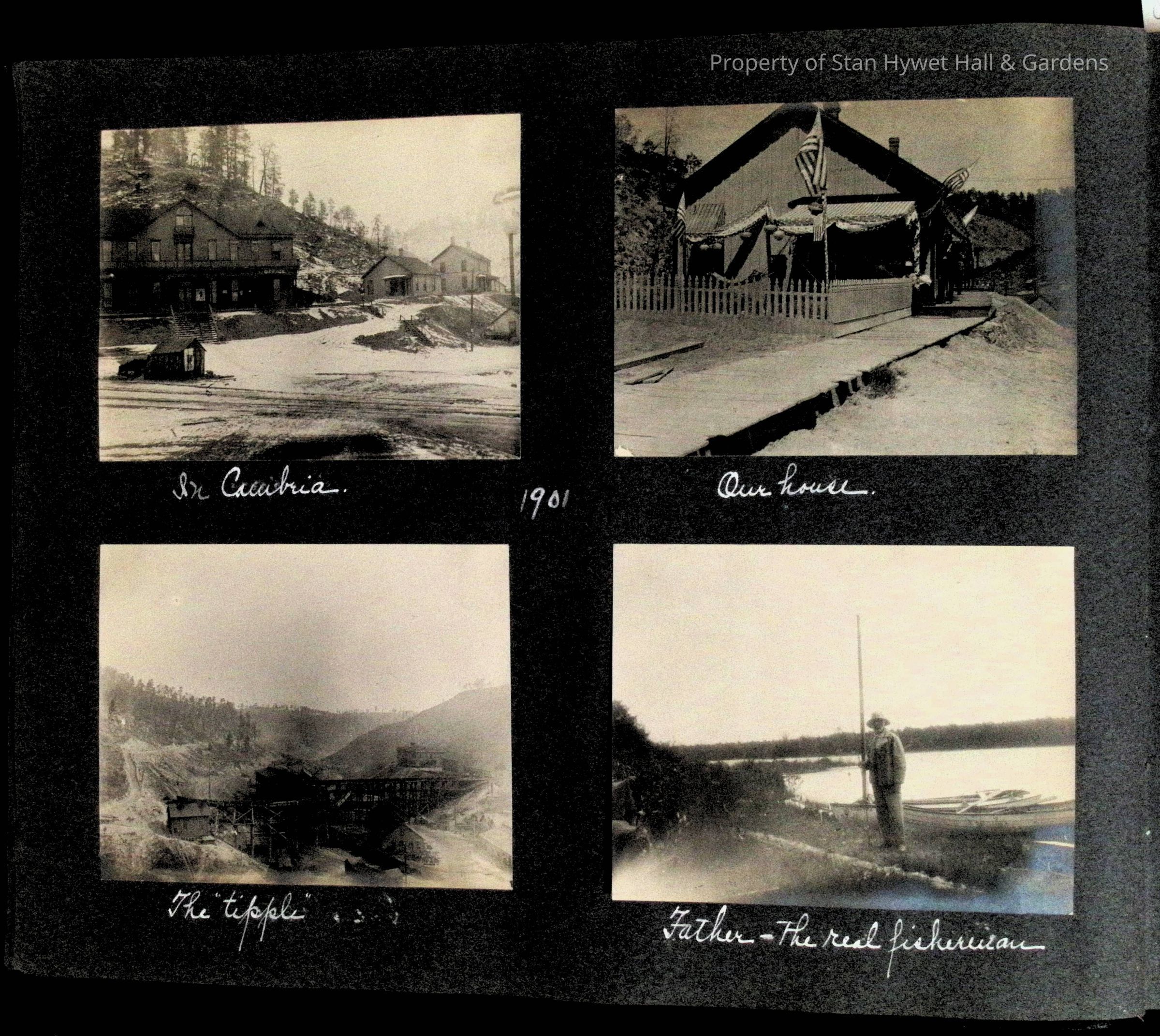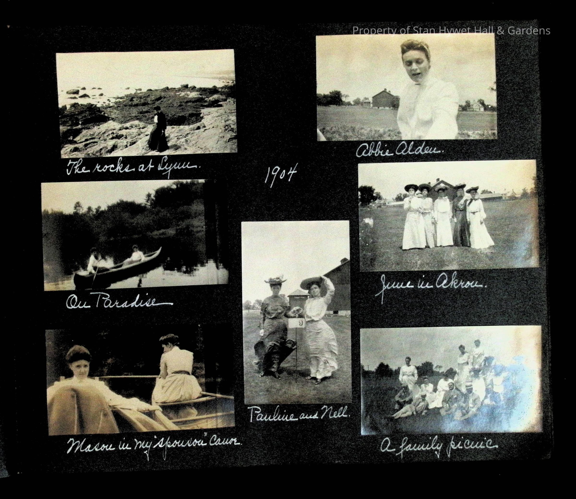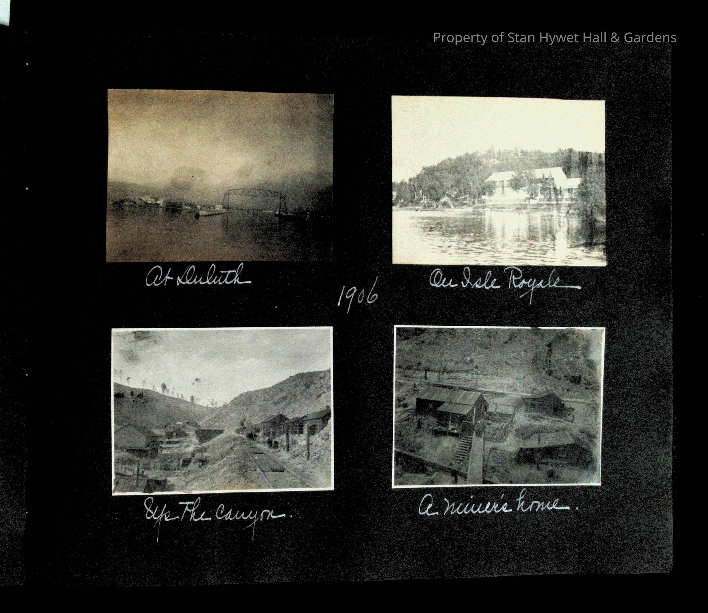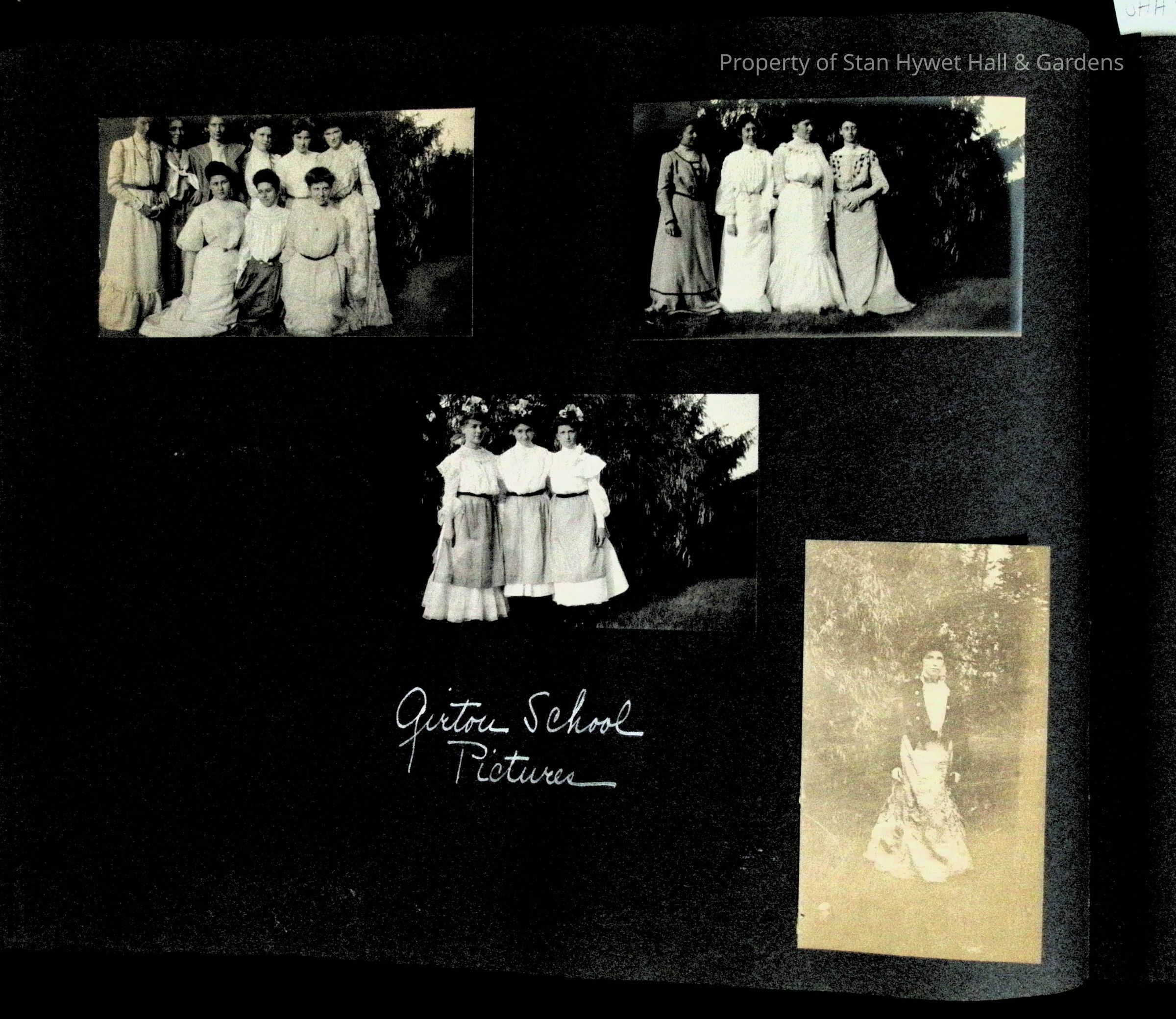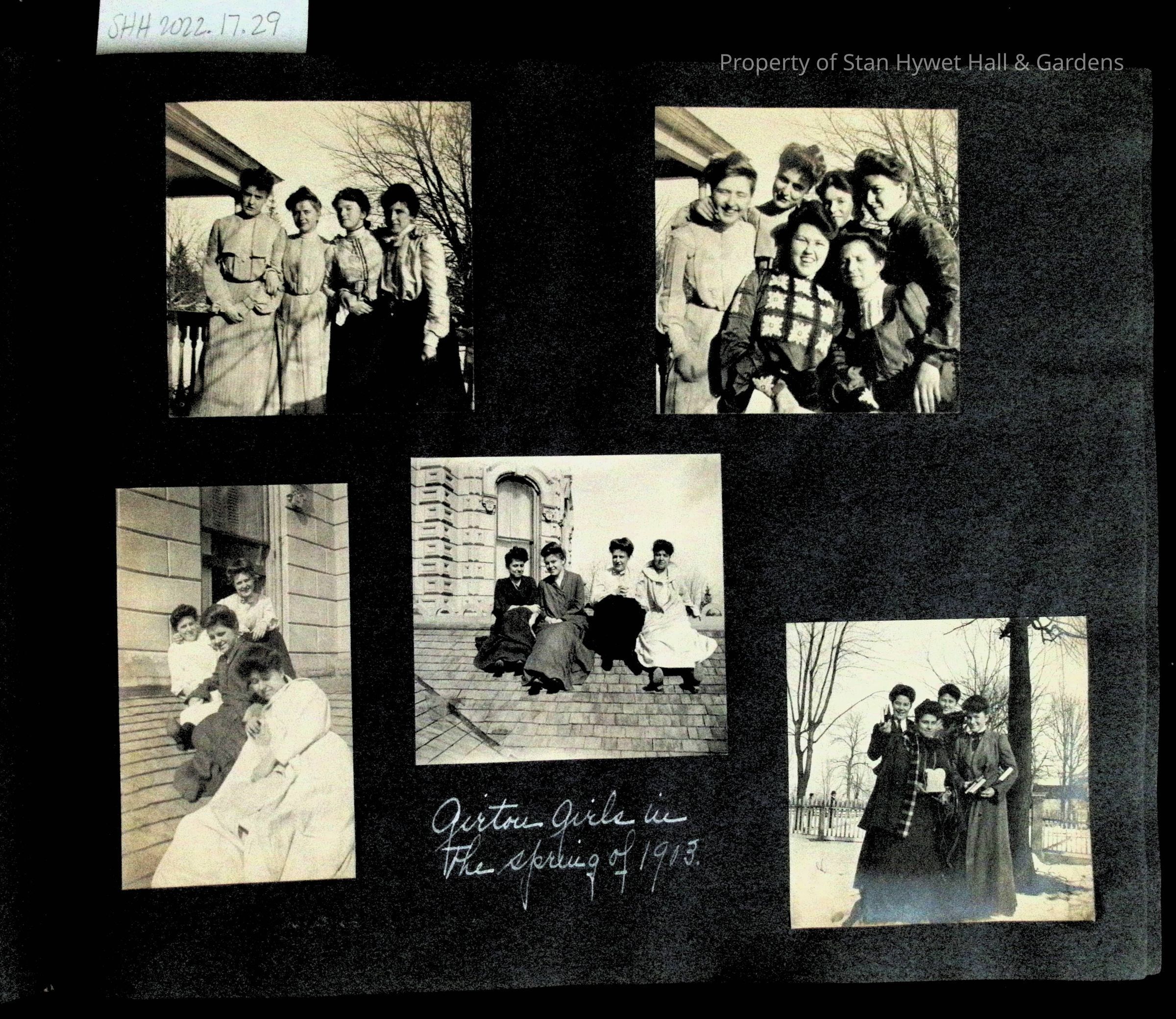 Photographic scrapbook album created by Helen Wolle between 1901 - 1906 including photos from Cambria, WY; Hessel, MI; Kansas City, MO; Girton School; and Smith College. 101 pages.Collection