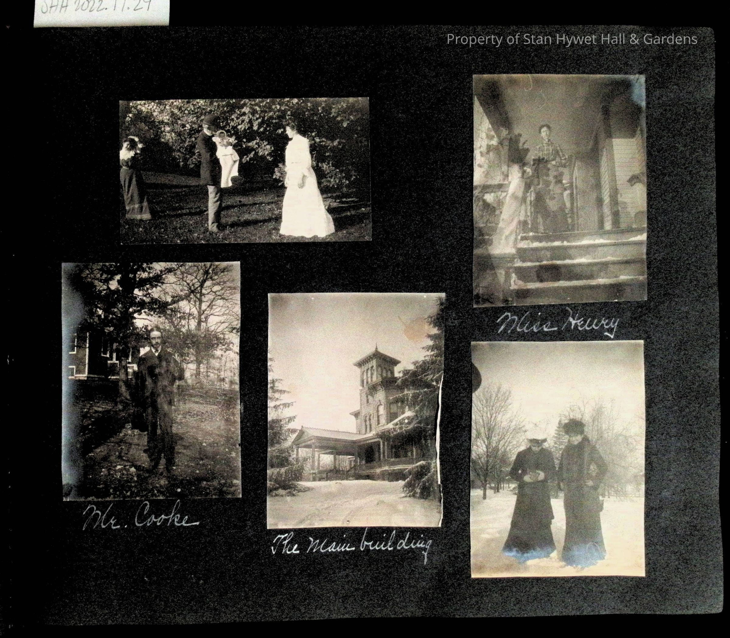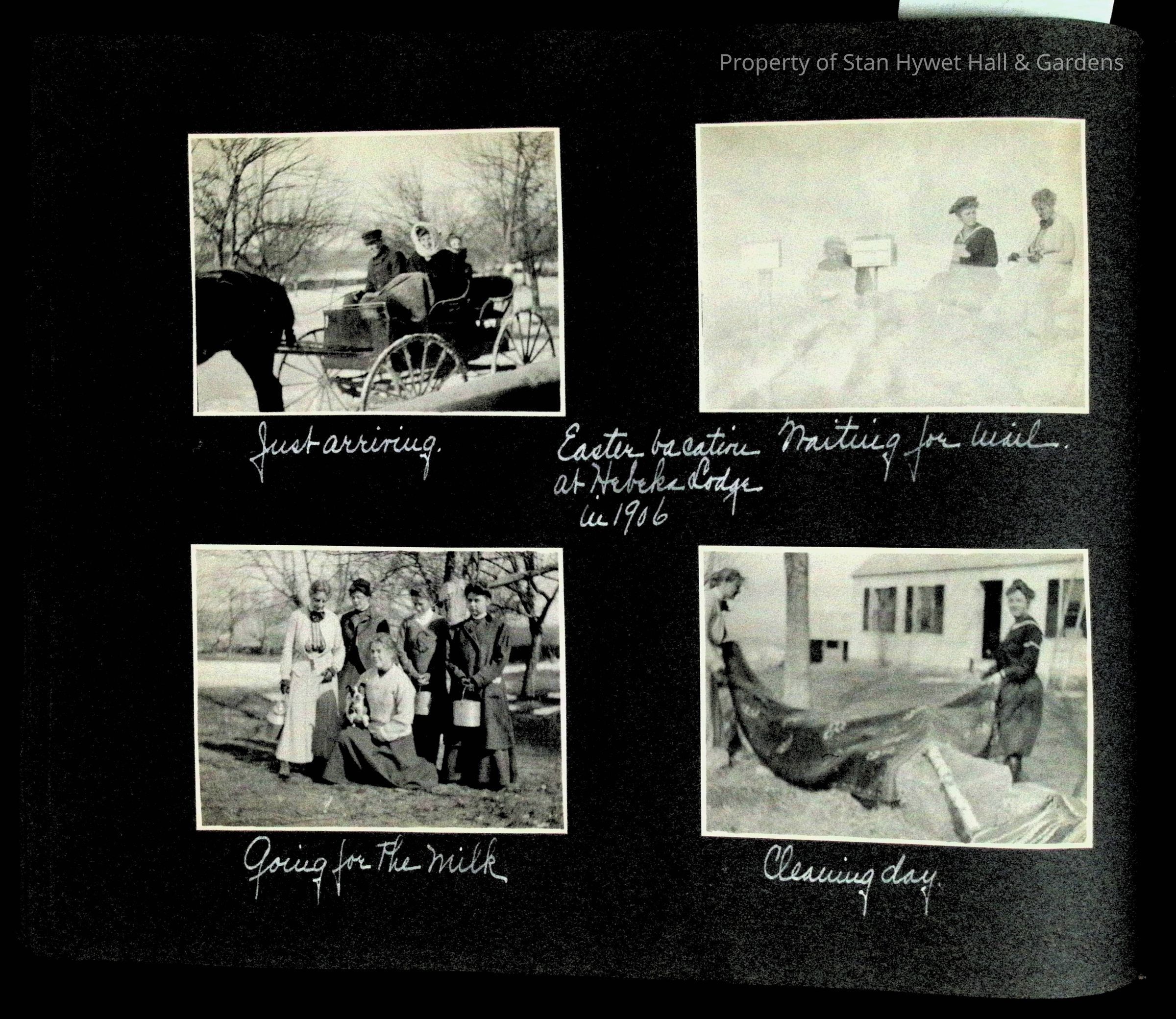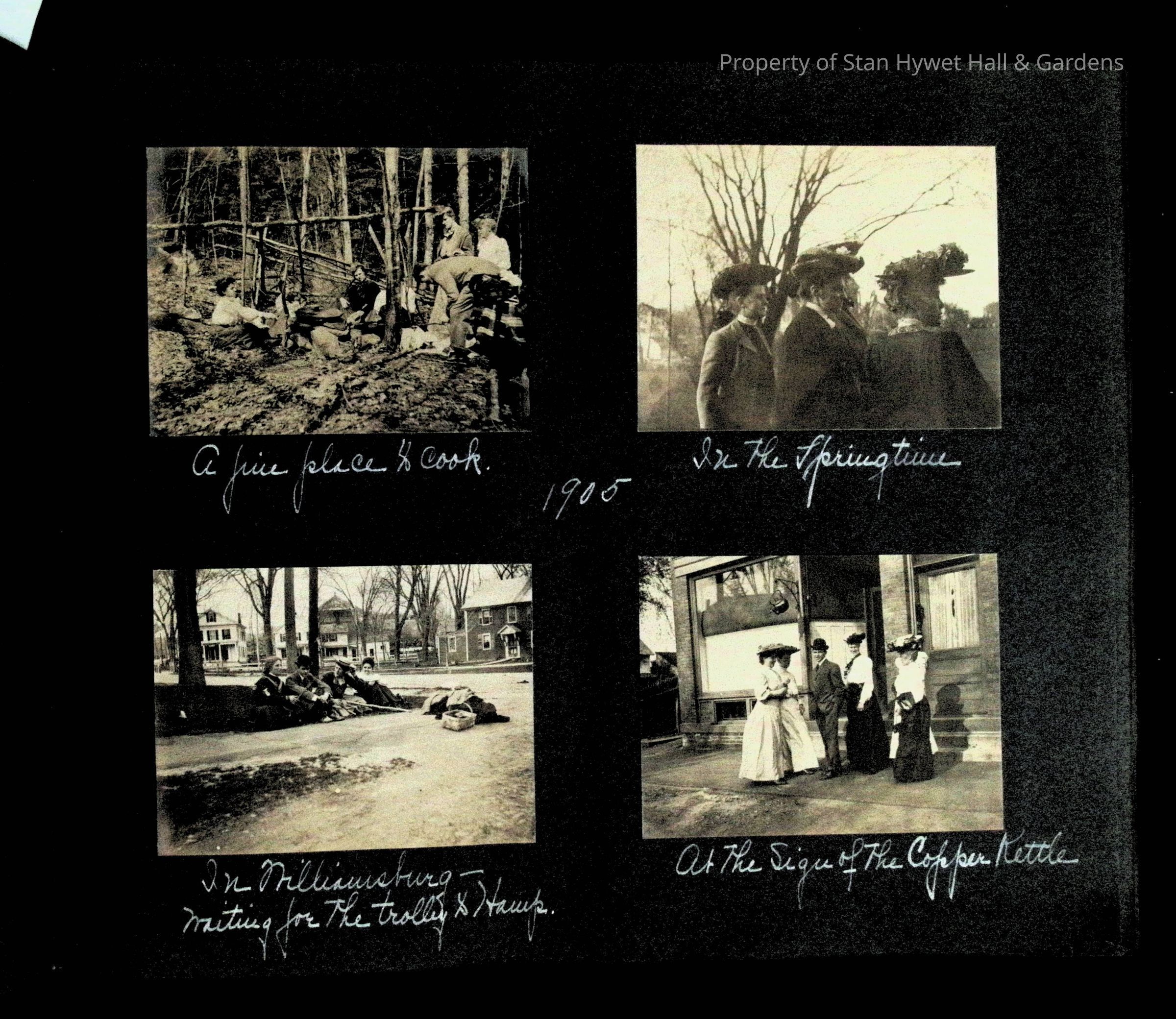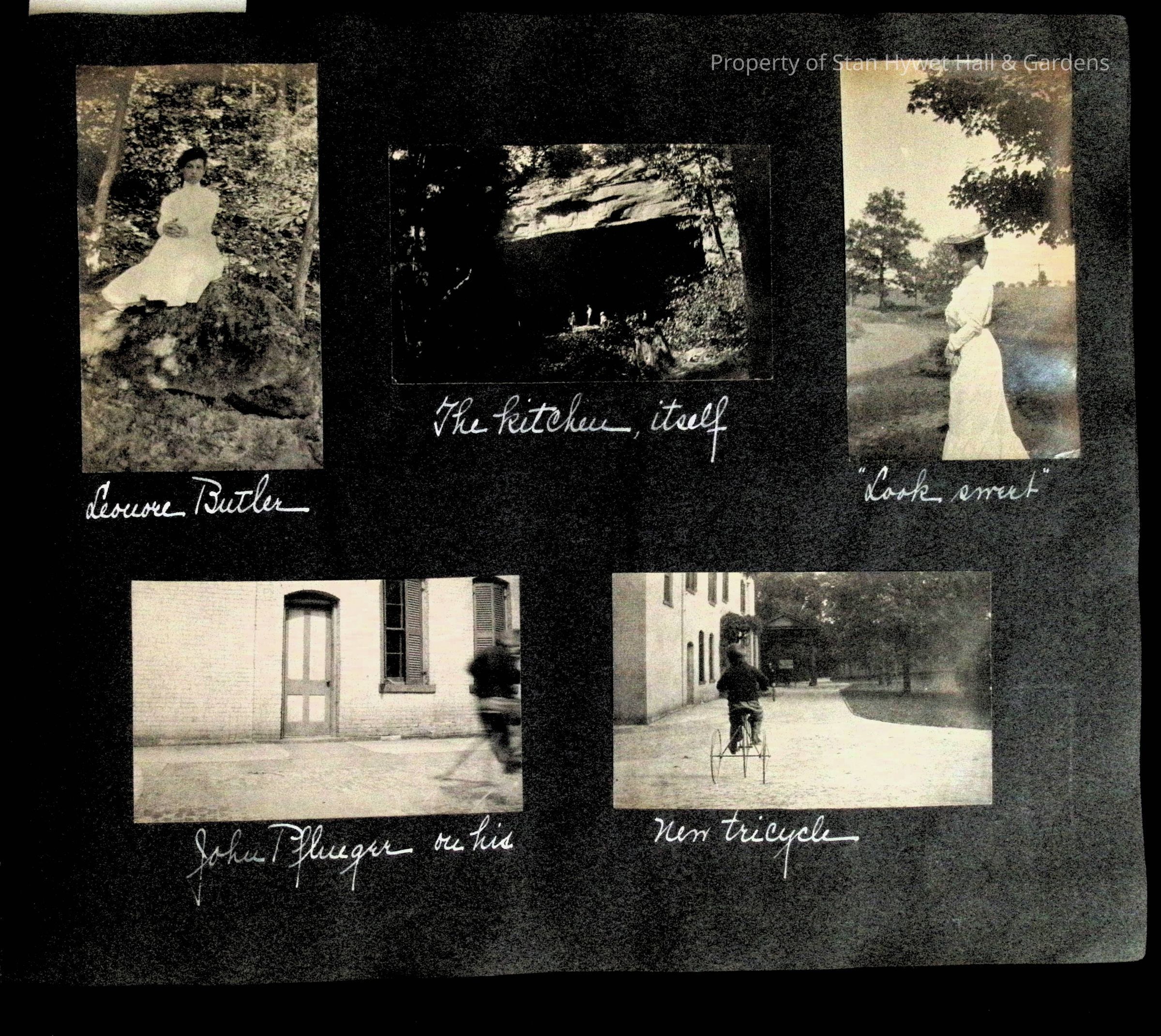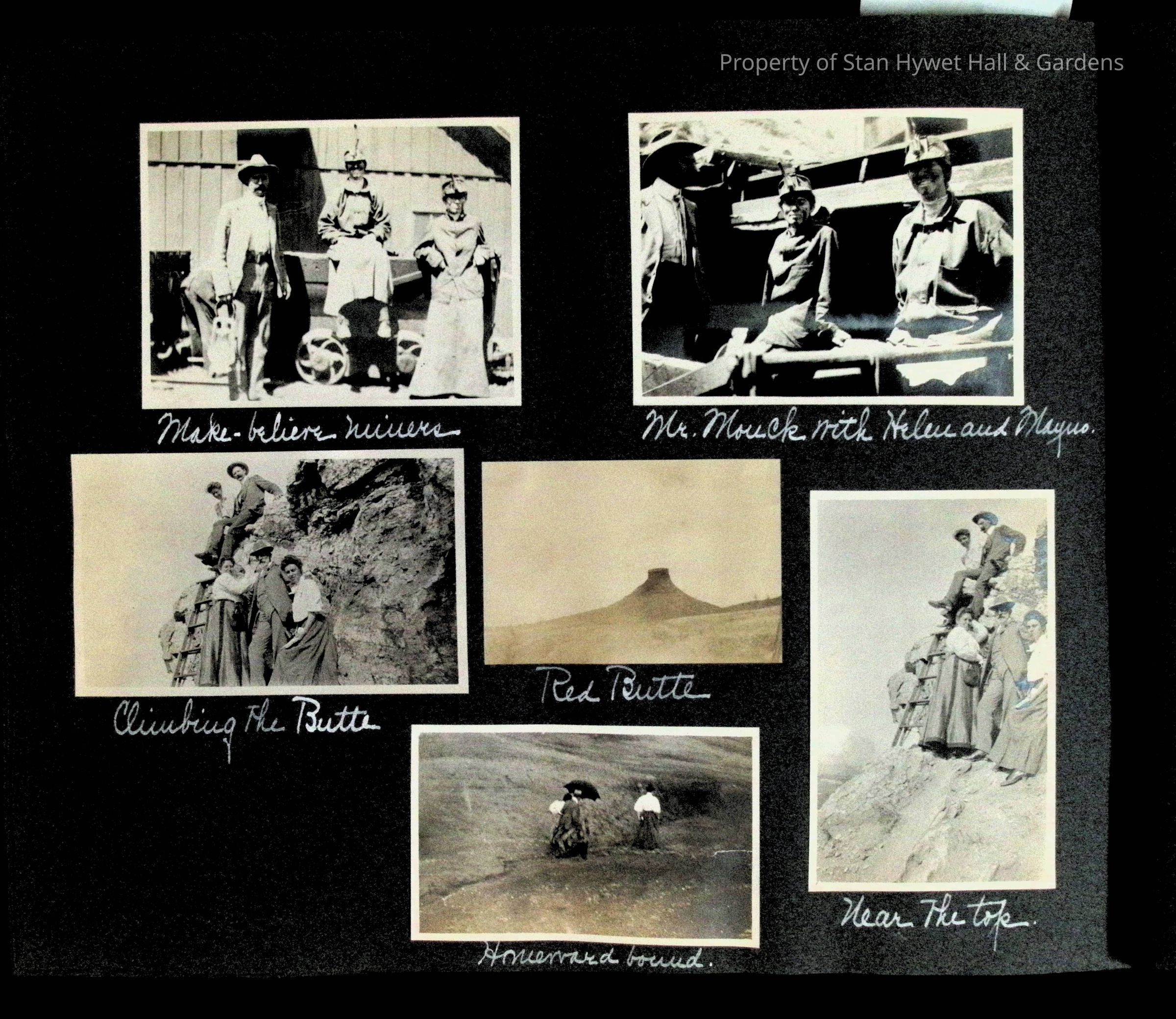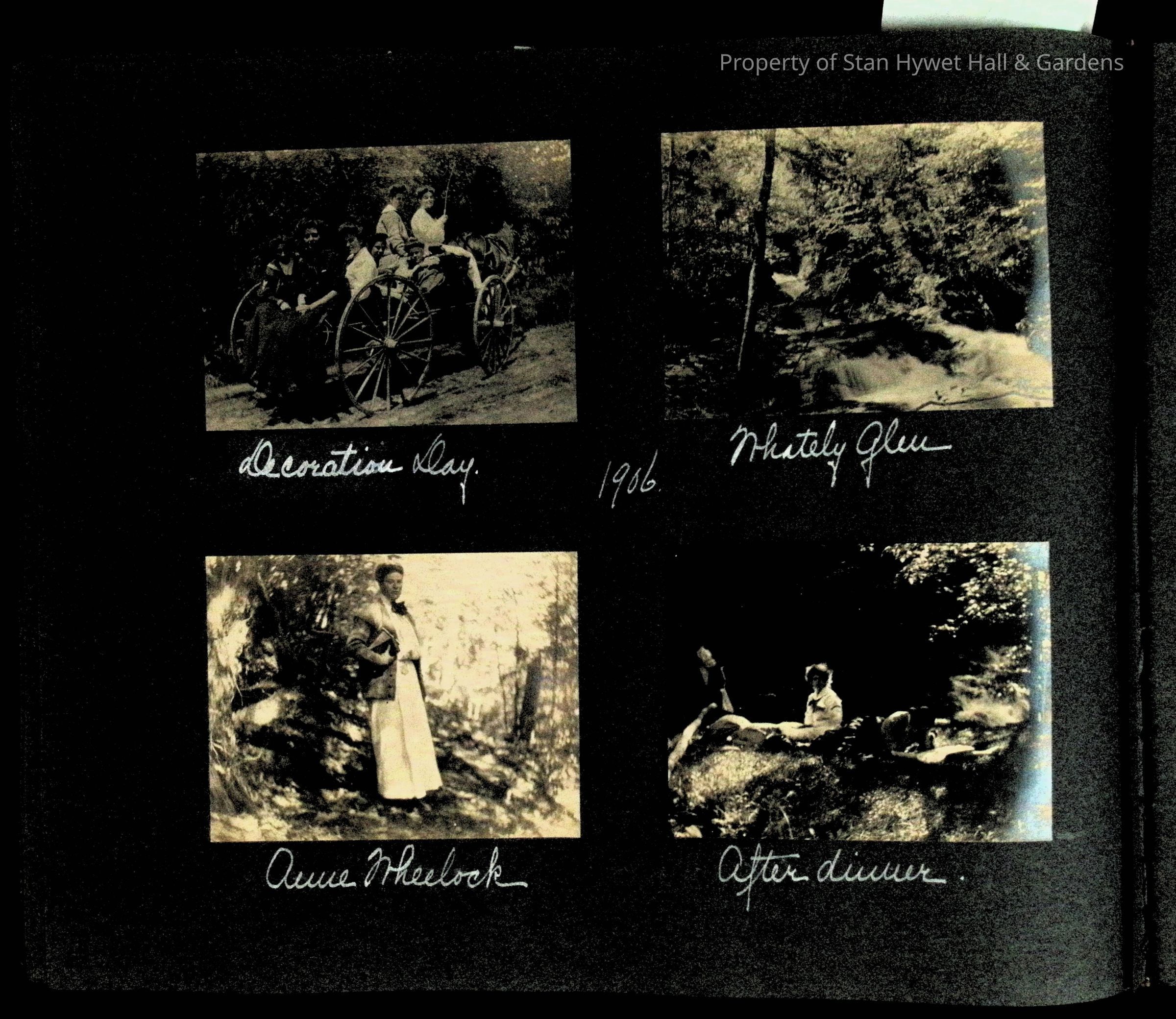 Photographic scrapbook album created by Helen Wolle between 1901 - 1906 including photos from Cambria, WY; Hessel, MI; Kansas City, MO; Girton School; and Smith College. 101 pages.Collection
