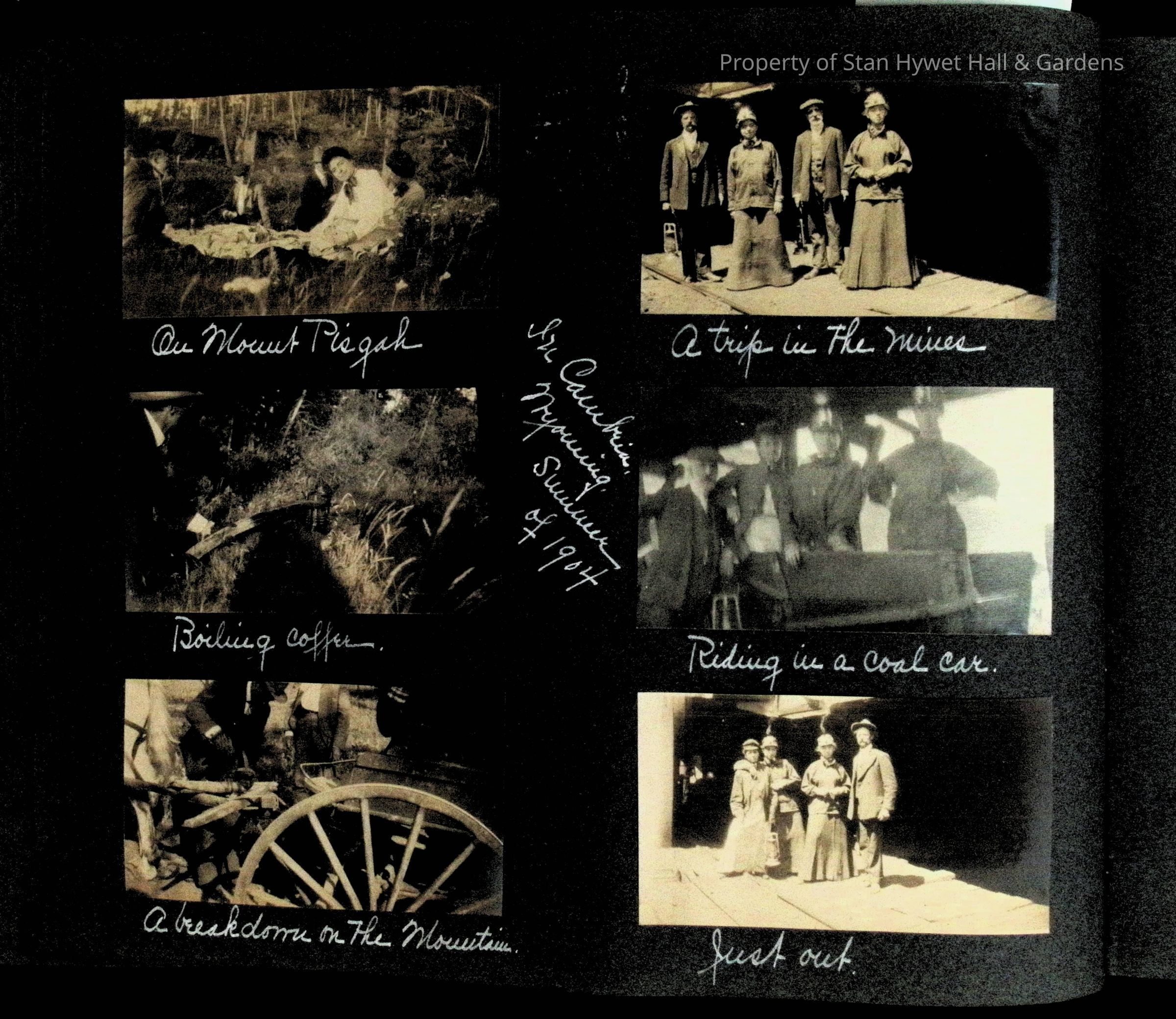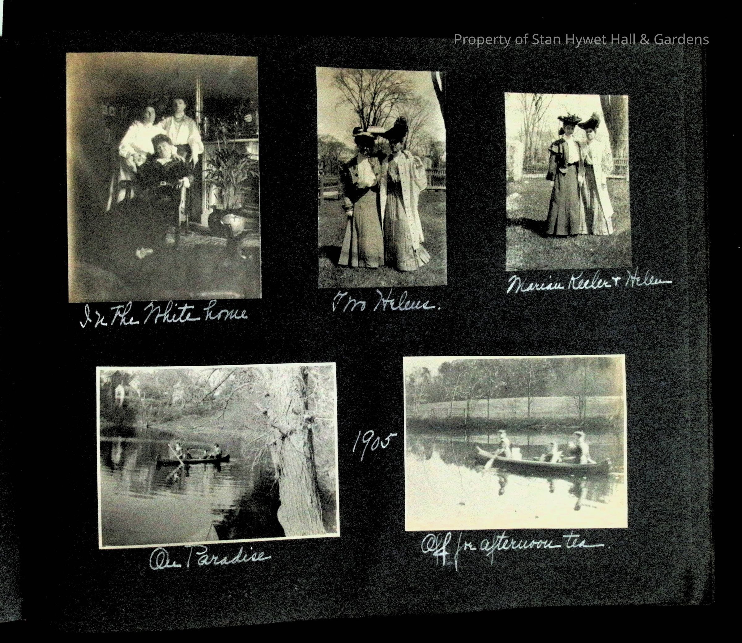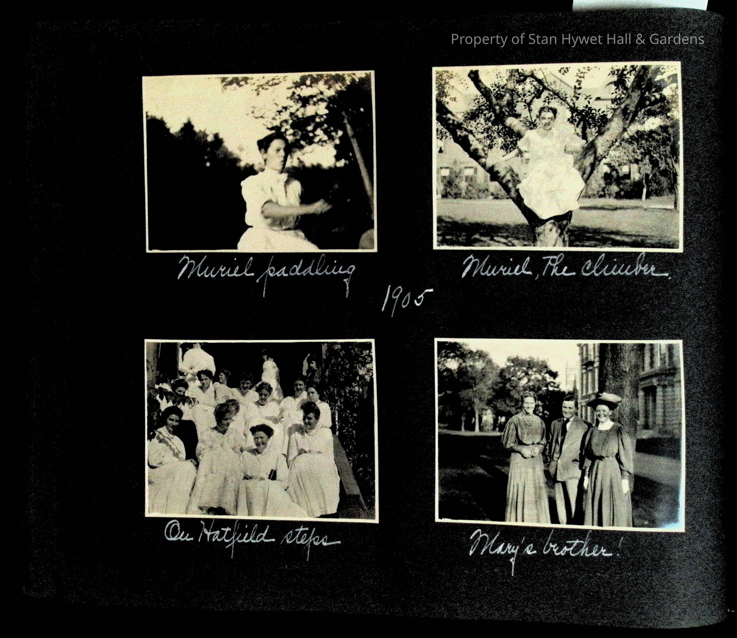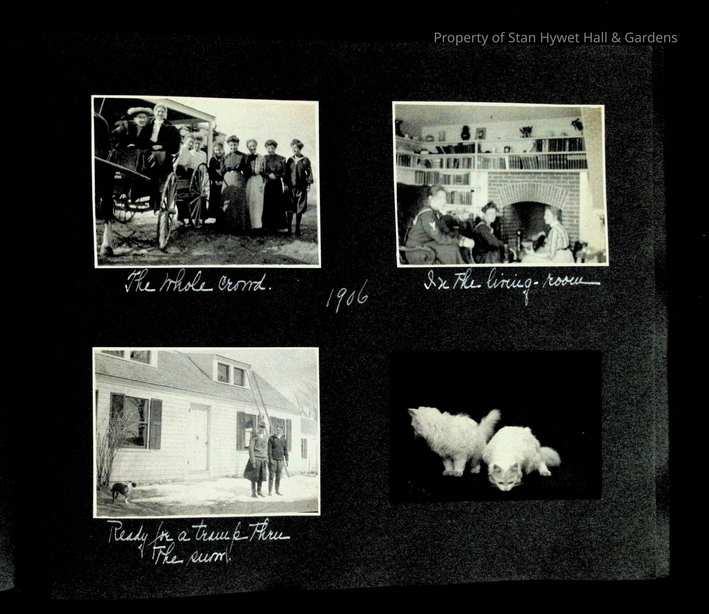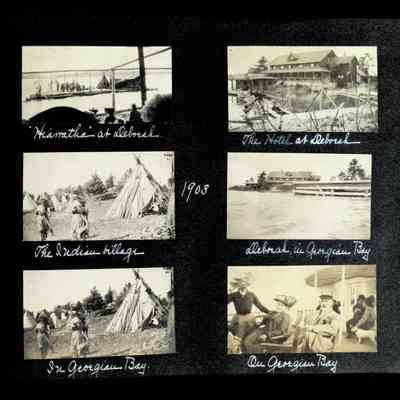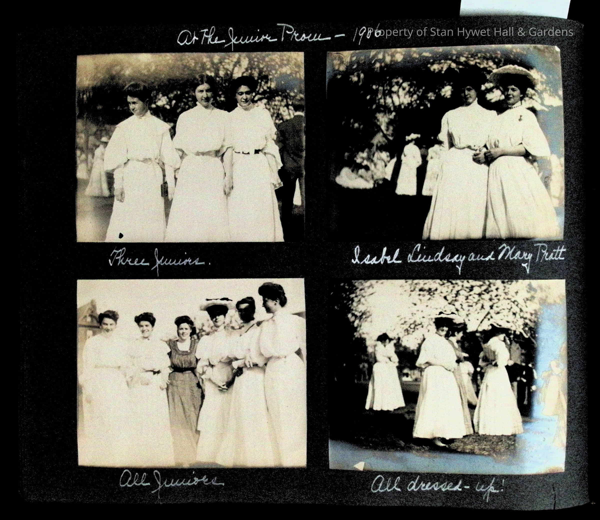 Photographic scrapbook album created by Helen Wolle between 1901 - 1906 including photos from Cambria, WY; Hessel, MI; Kansas City, MO; Girton School; and Smith College. 101 pages.Collection