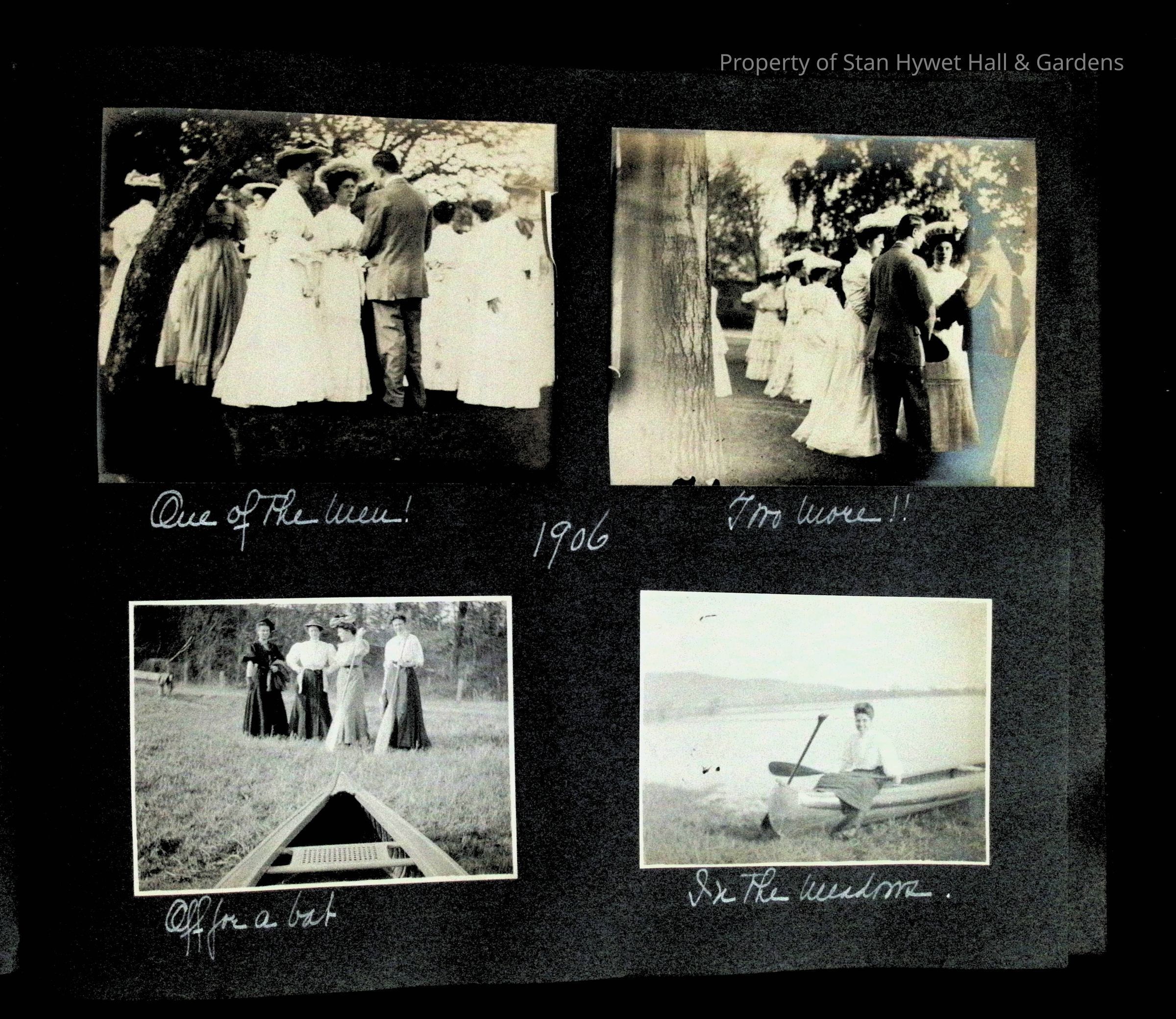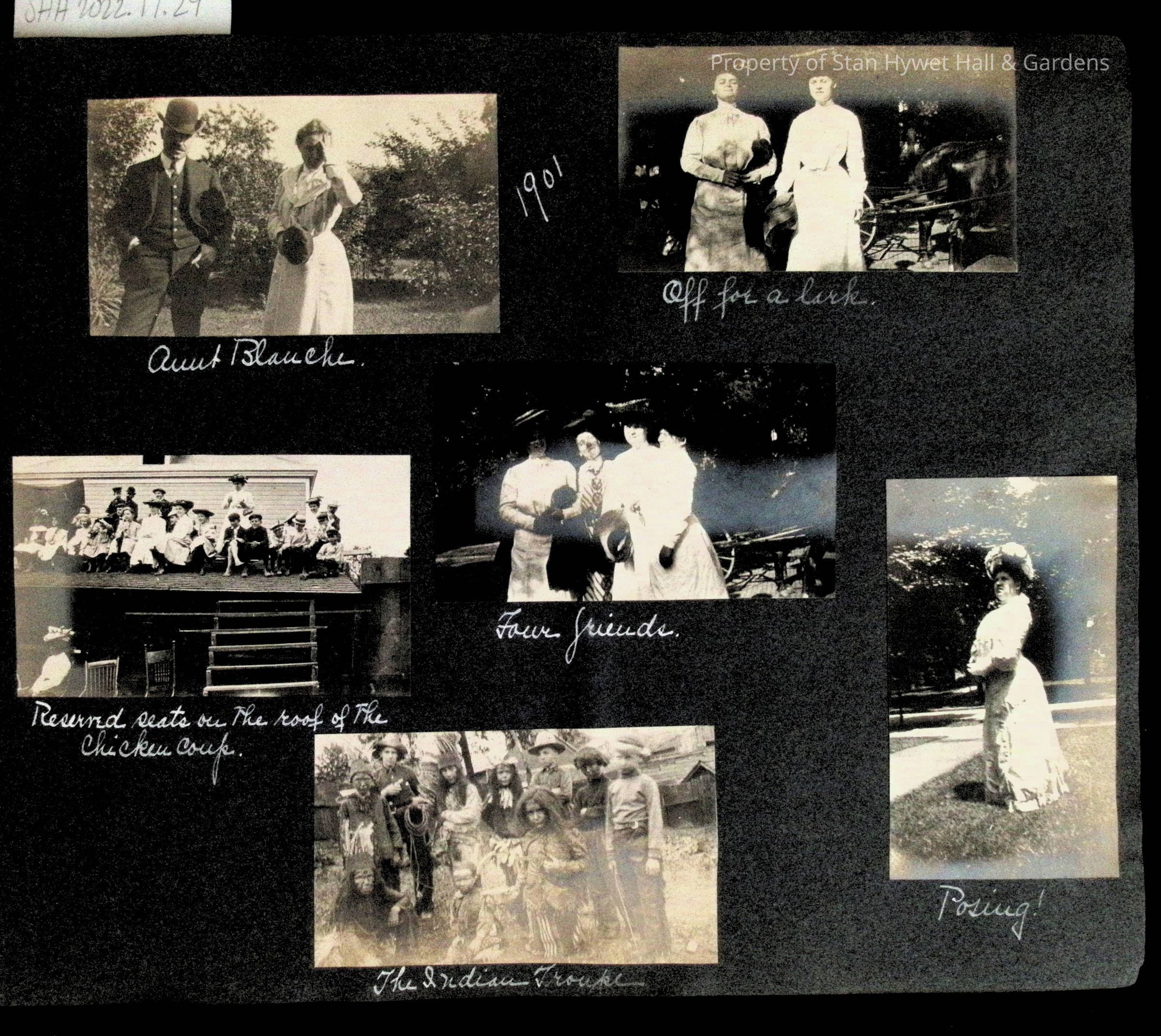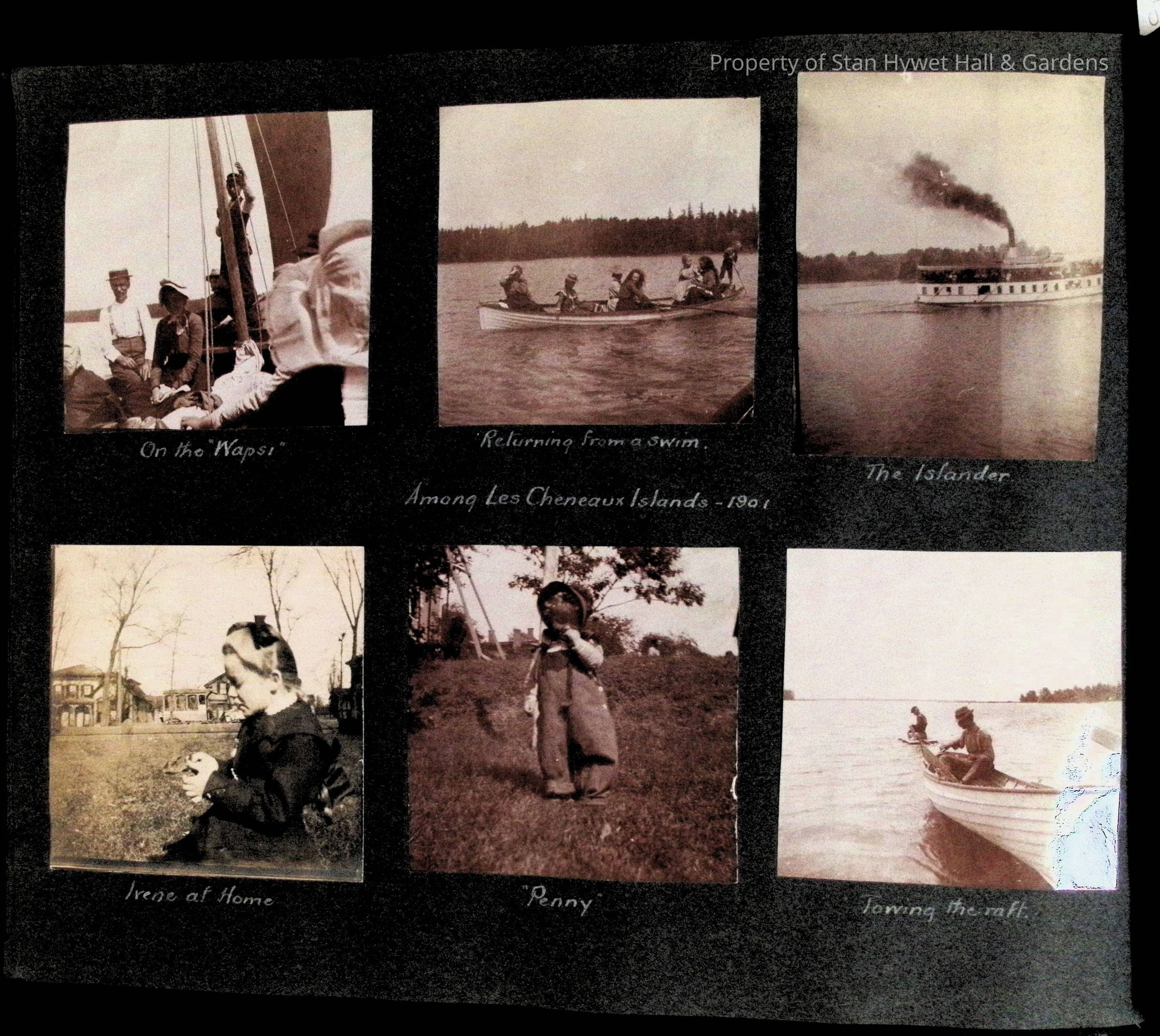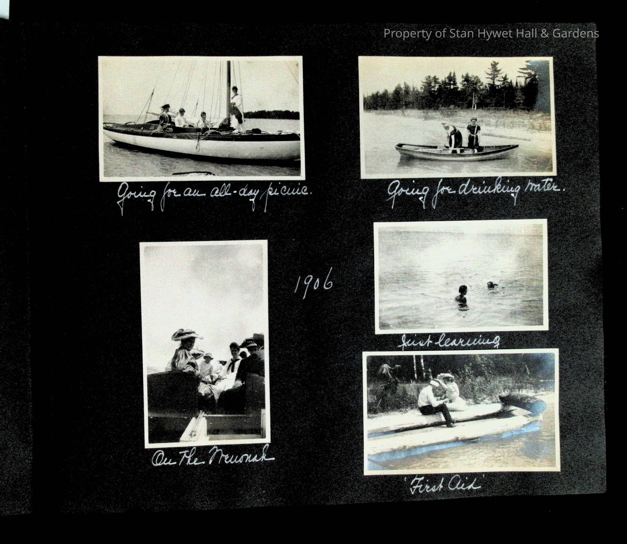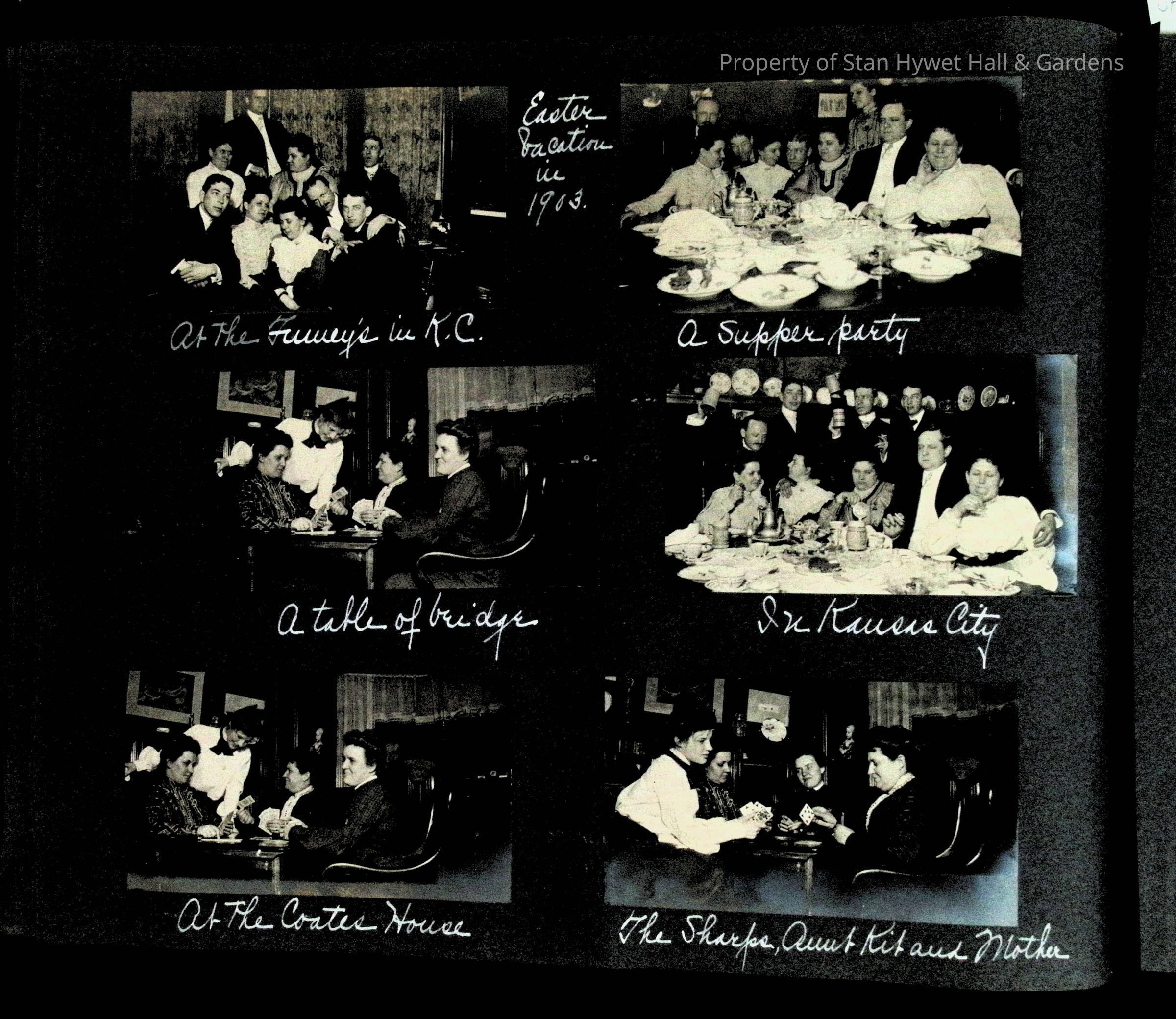 Photographic scrapbook album created by Helen Wolle between 1901 - 1906 including photos from Cambria, WY; Hessel, MI; Kansas City, MO; Girton School; and Smith College. 101 pages.Collection