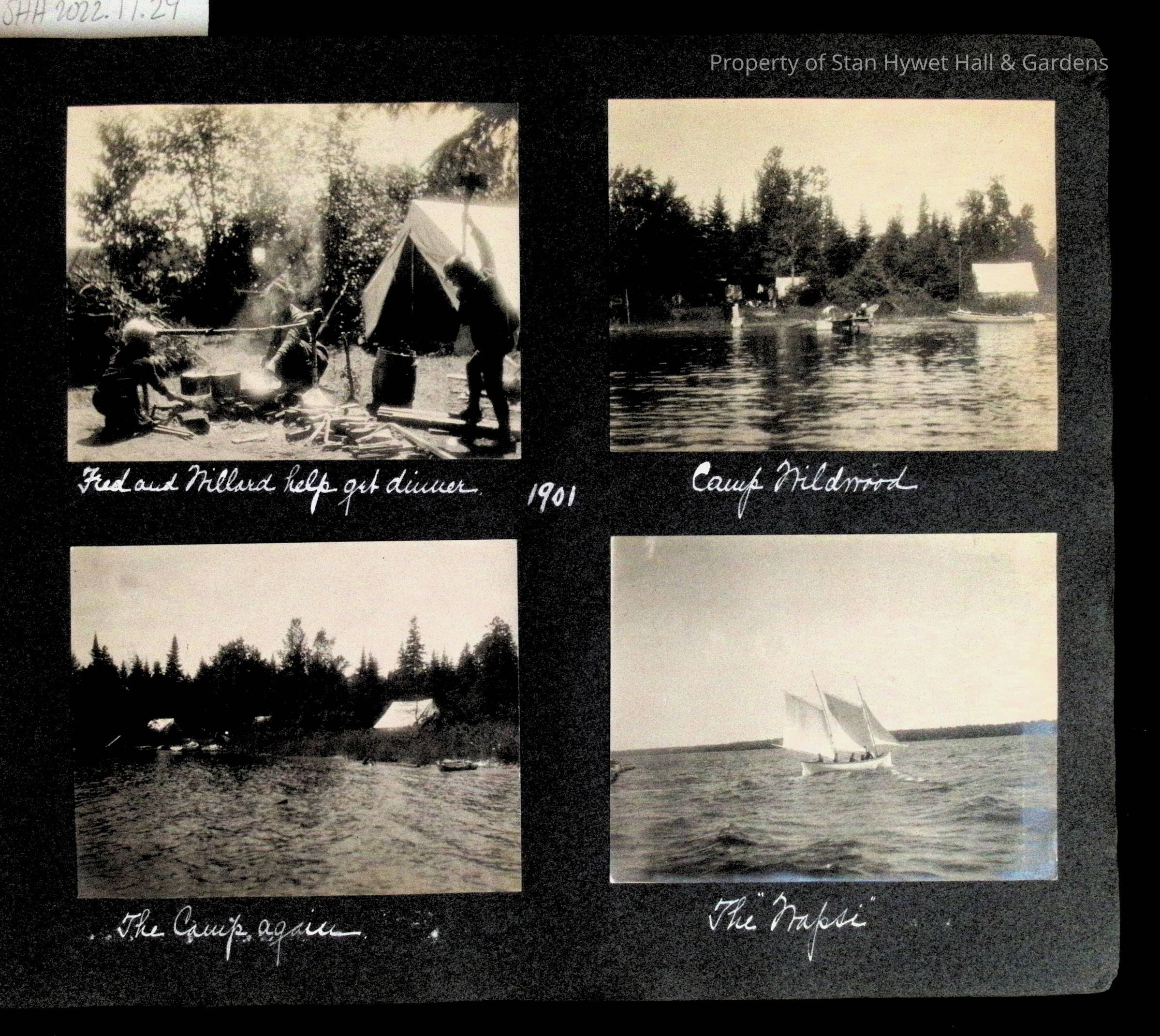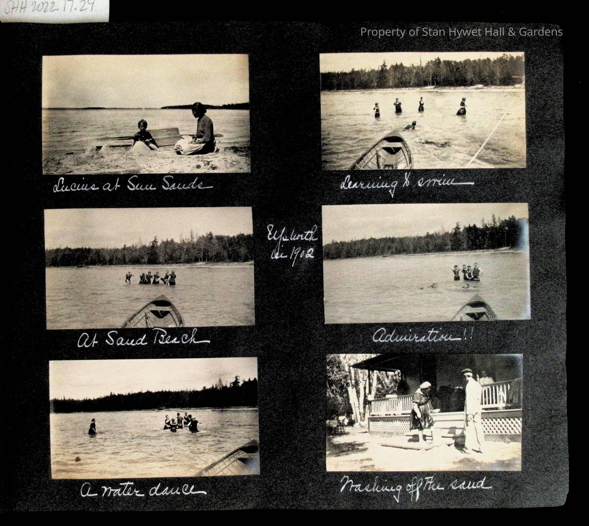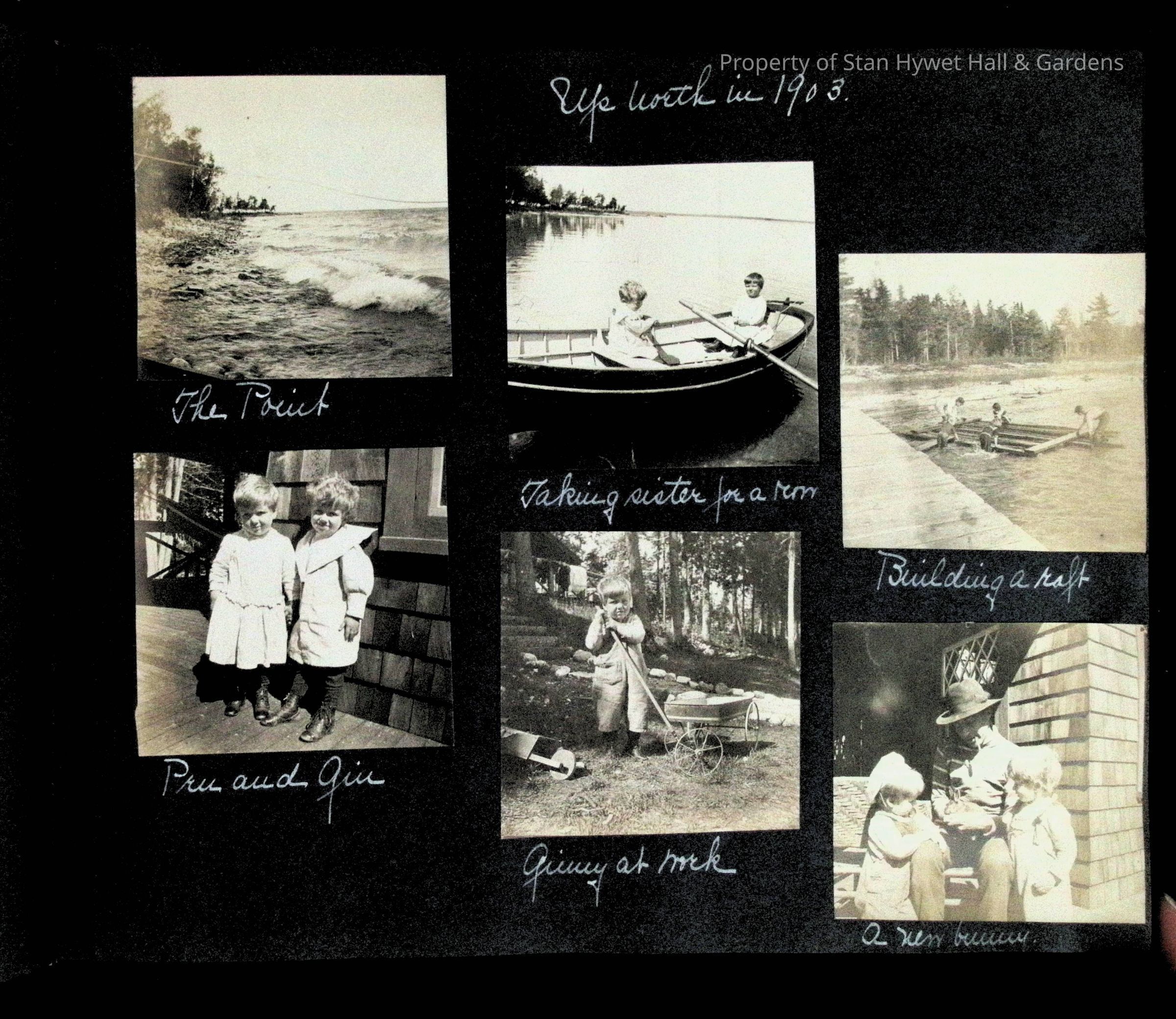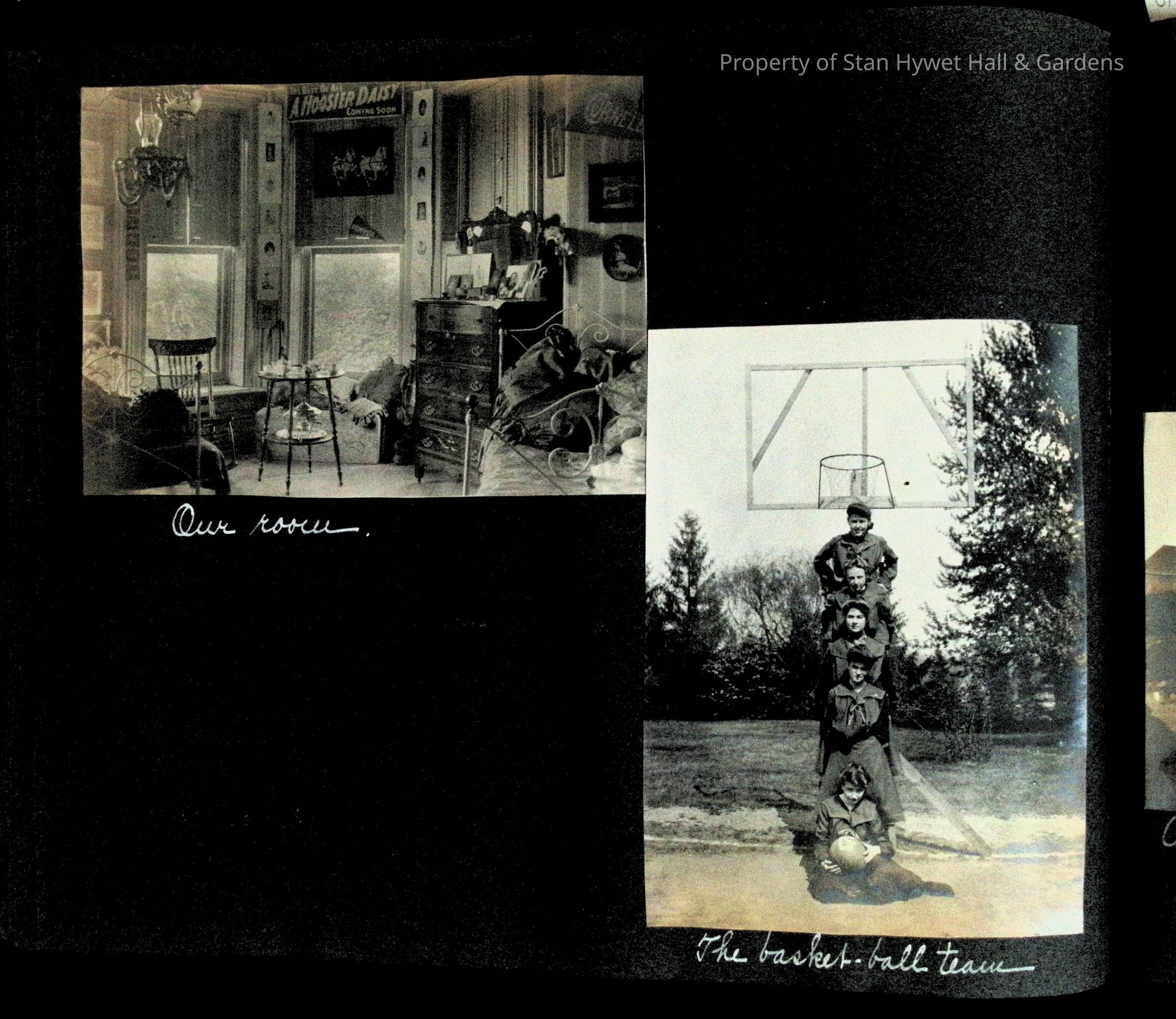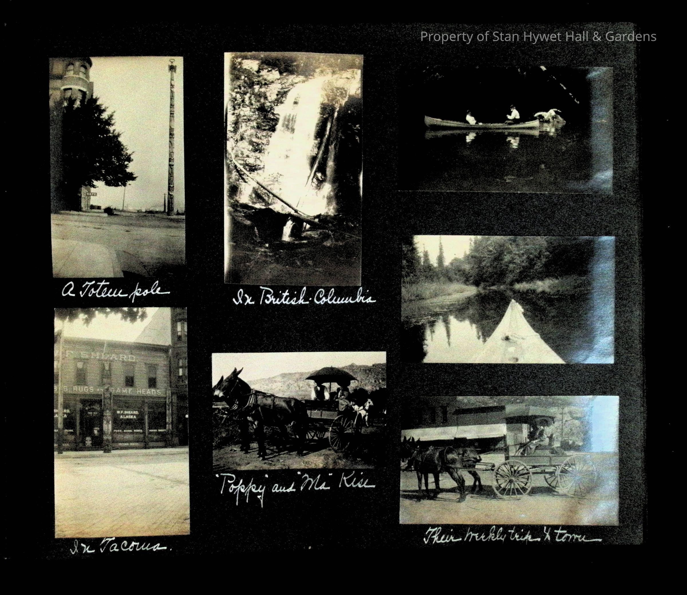 Photographic scrapbook album created by Helen Wolle between 1901 - 1906 including photos from Cambria, WY; Hessel, MI; Kansas City, MO; Girton School; and Smith College. 101 pages.Collection