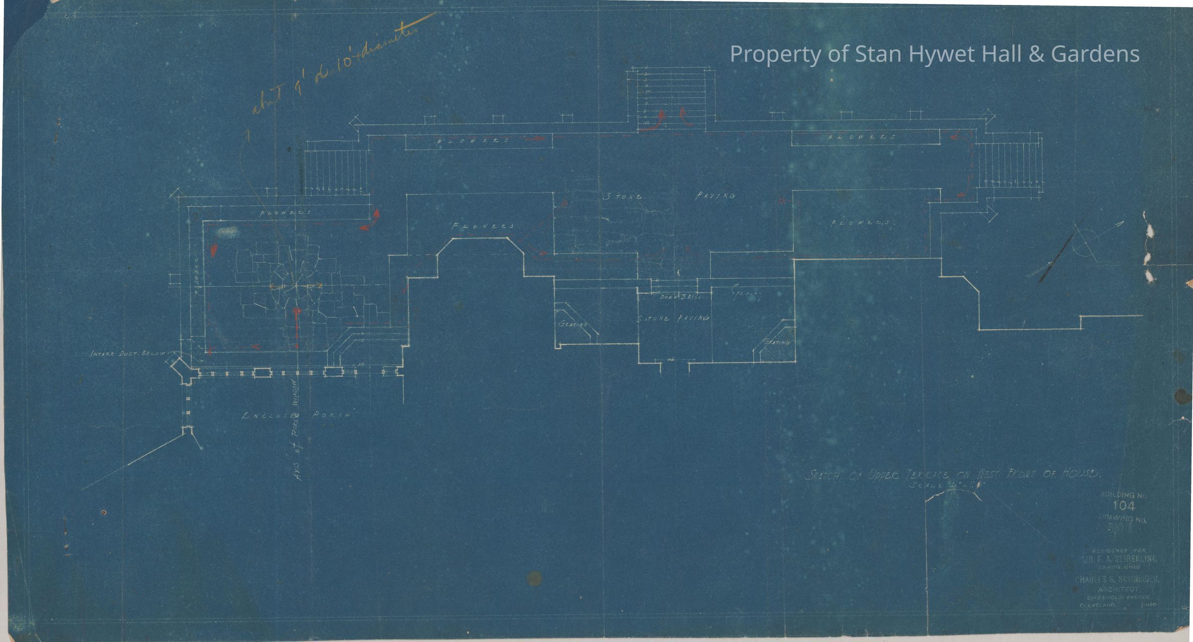 Historic Blueprint: Sketch of plan for the upper section of the west terrace of Stan Hywet Hall