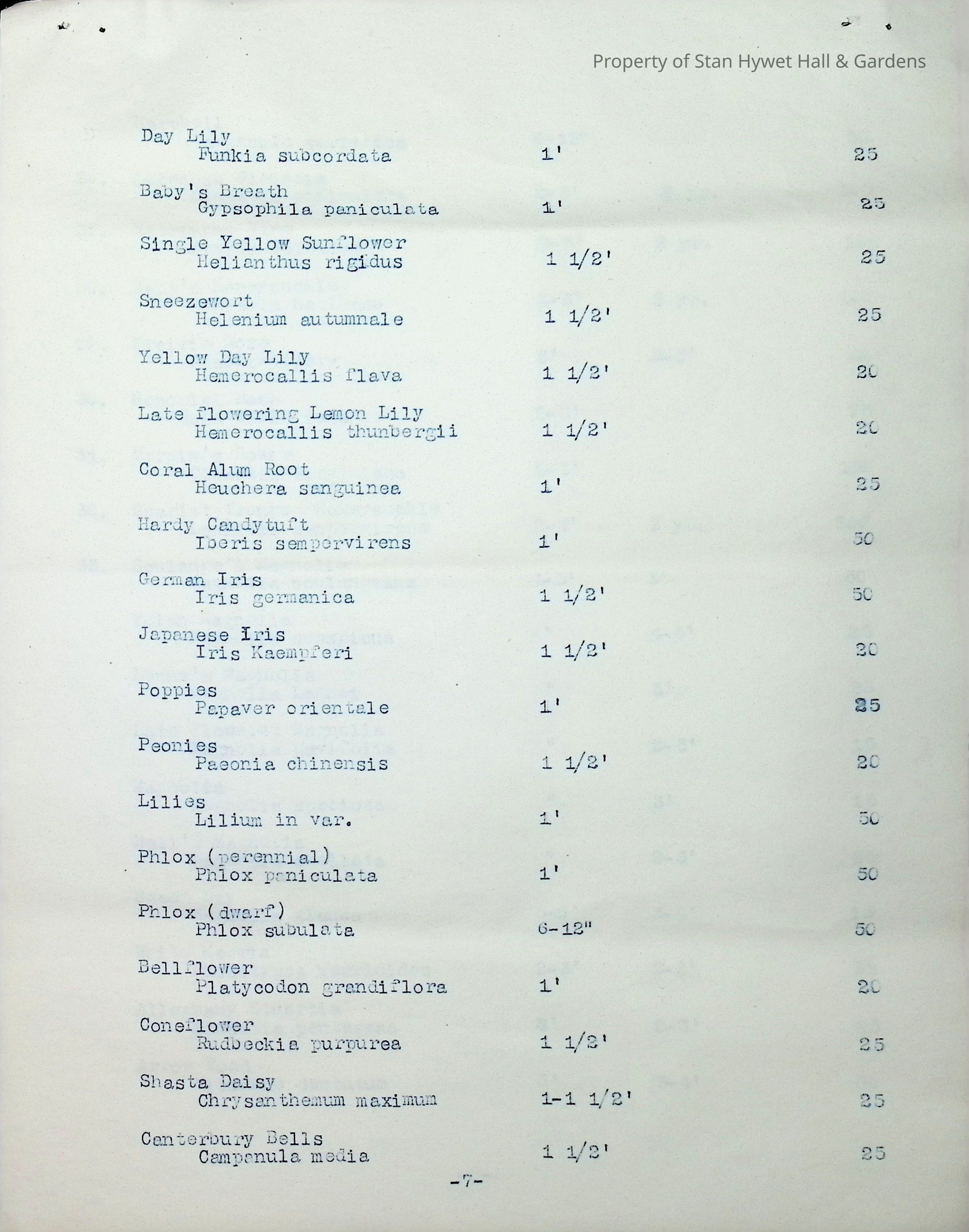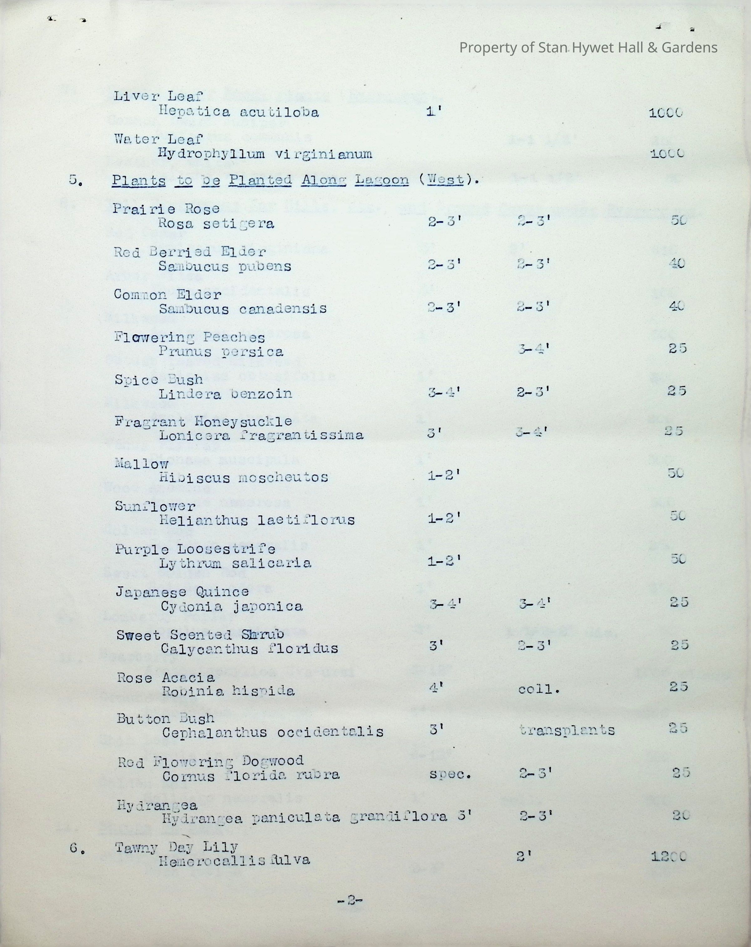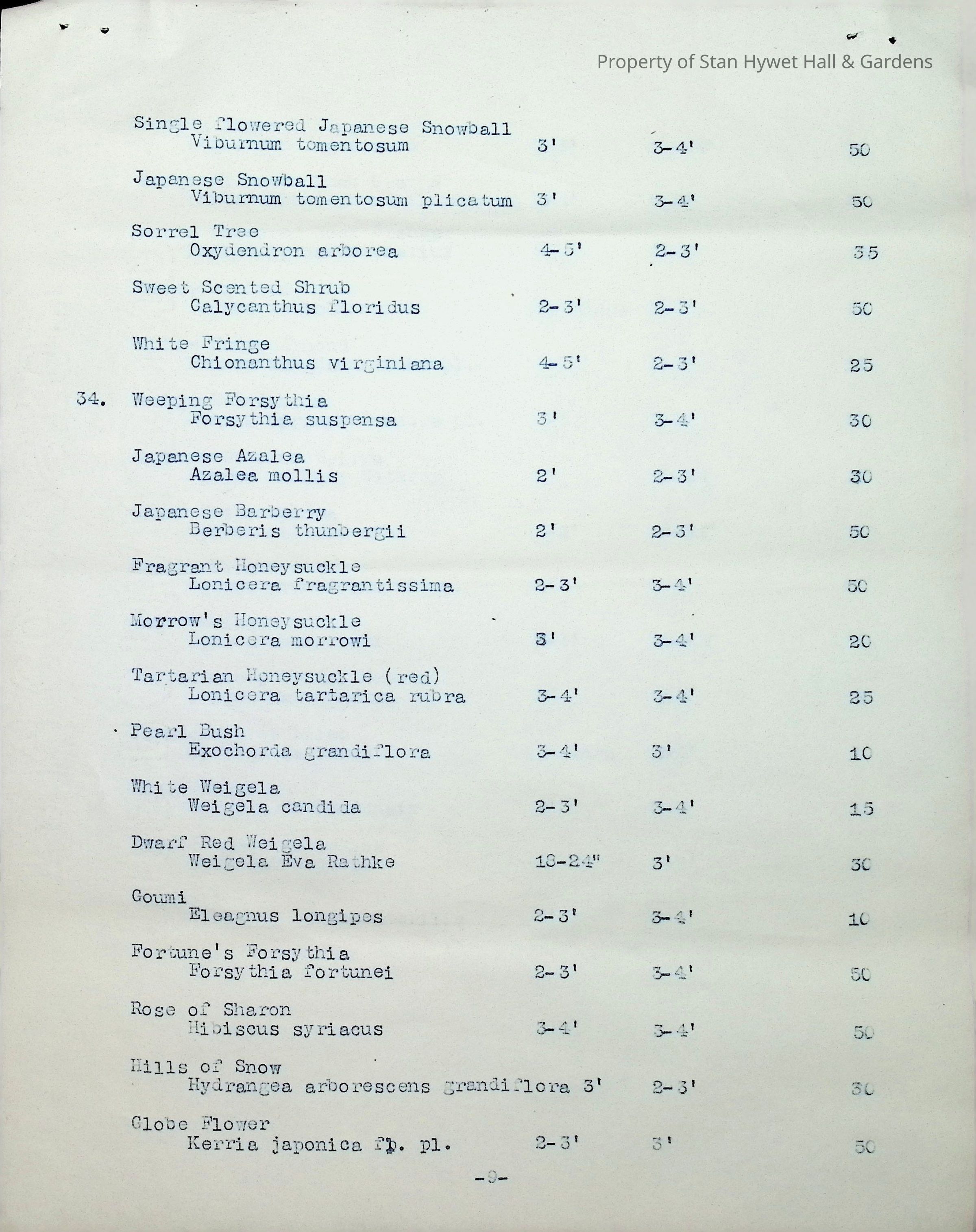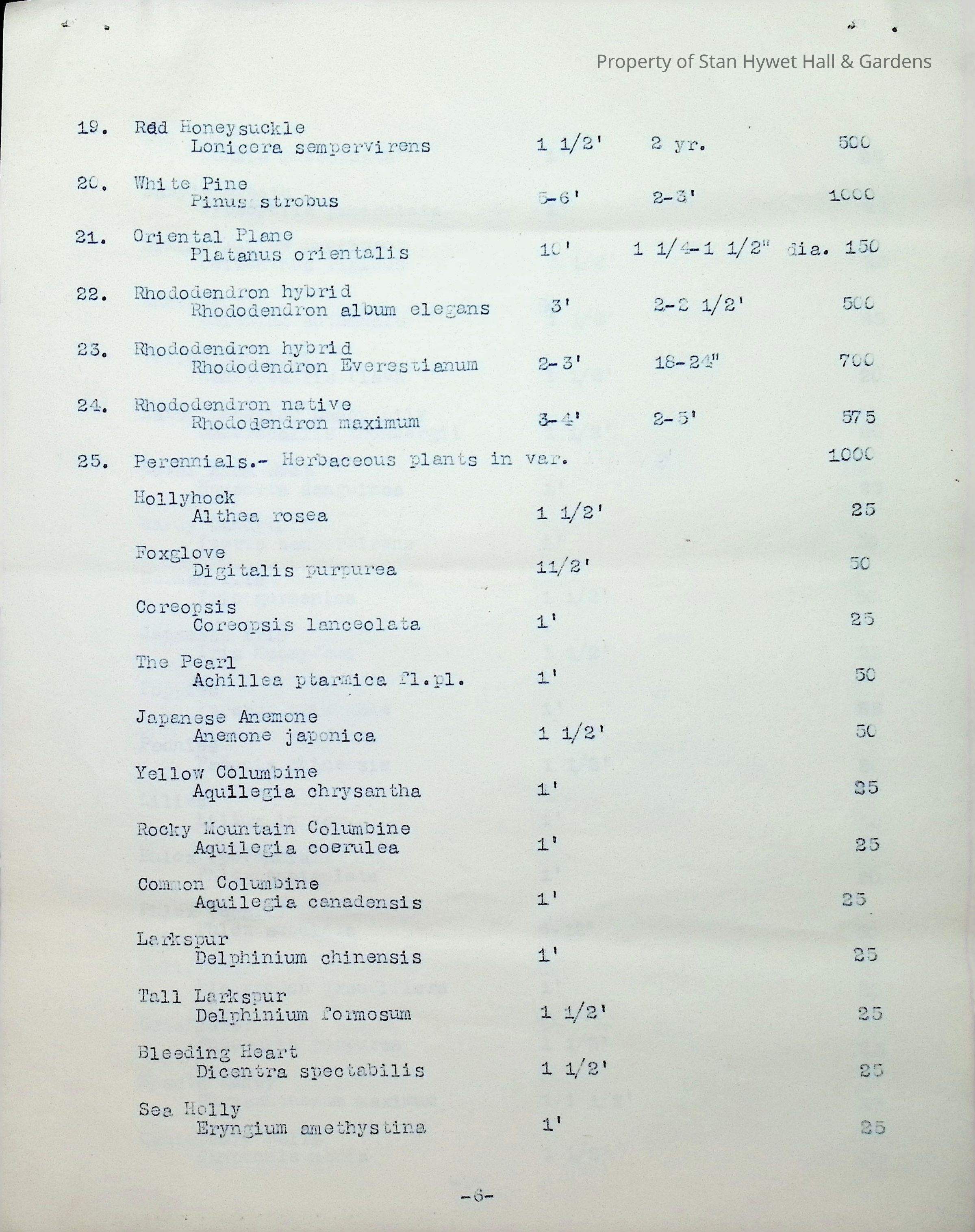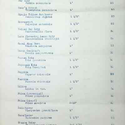 Typewritten list on Warren H. Manning letterhead, written to Mr. Frank A. Seiberling, Akron, Ohio and dated March 27th, 1912, Plan #908-11. Detailed list of plantings for the entire property, including common & Latin plant names, planting distance apart, size & condition, and quantity.Subject