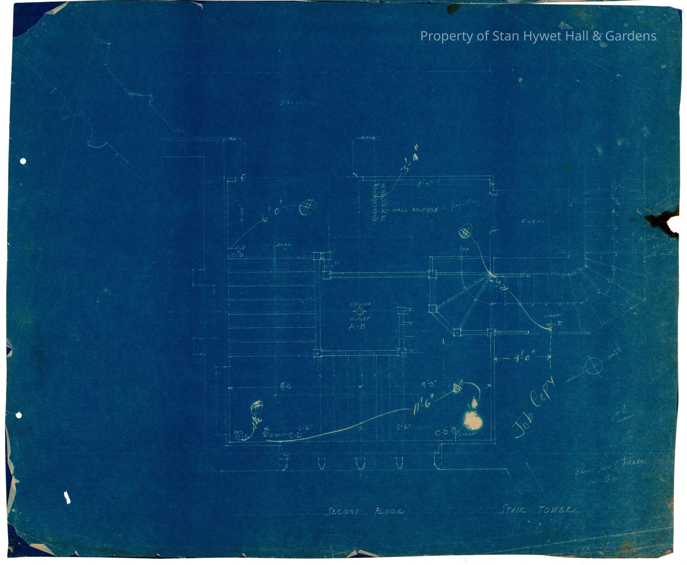 Historic blueprint: Plan of the Tower Stairs from the landing outside of the Billiard Room to the staircase leading to the 3rd floor.Collection