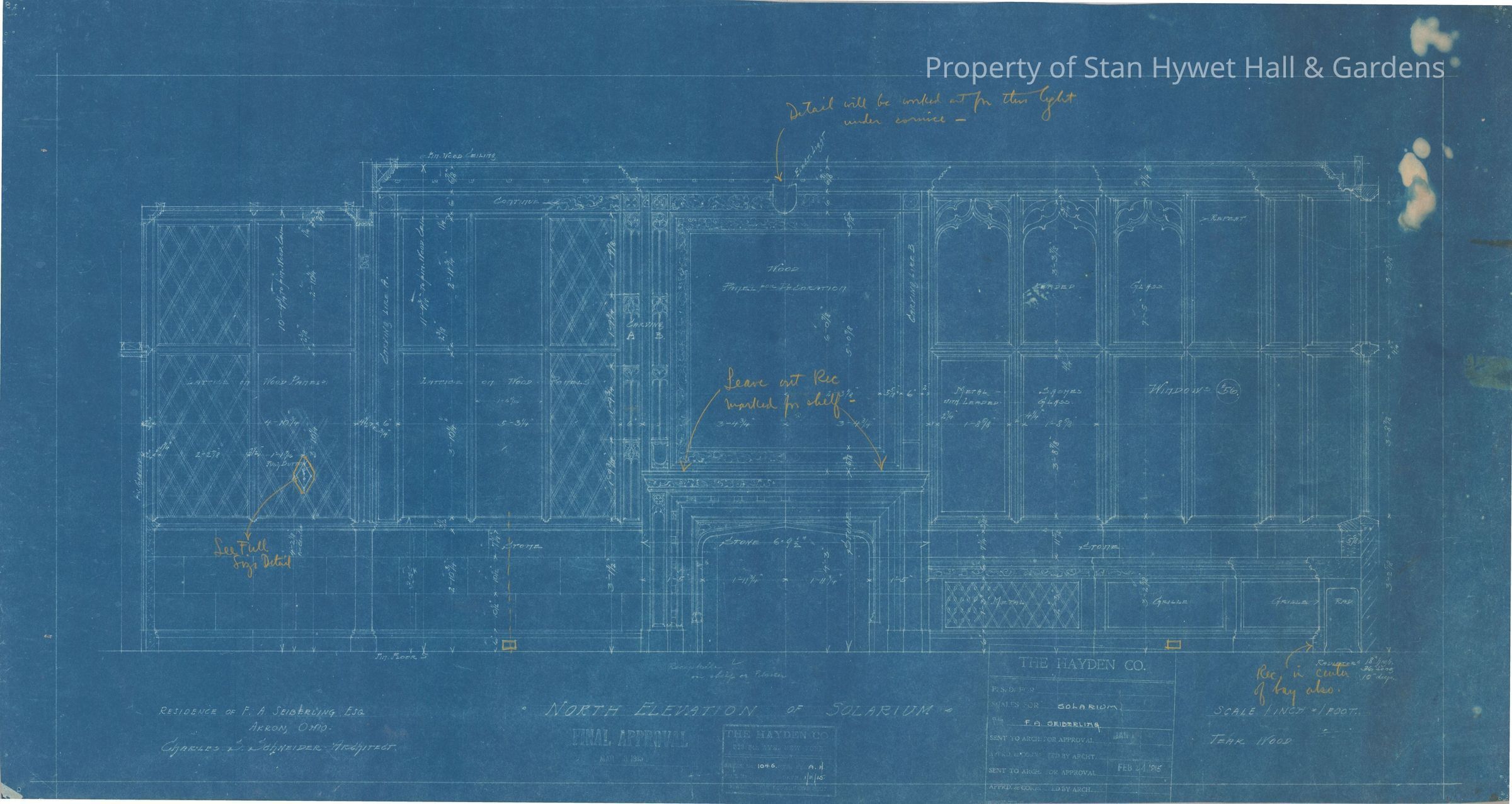 Historic blueprint: North elevation of Solarium in Stan Hywet Hall.