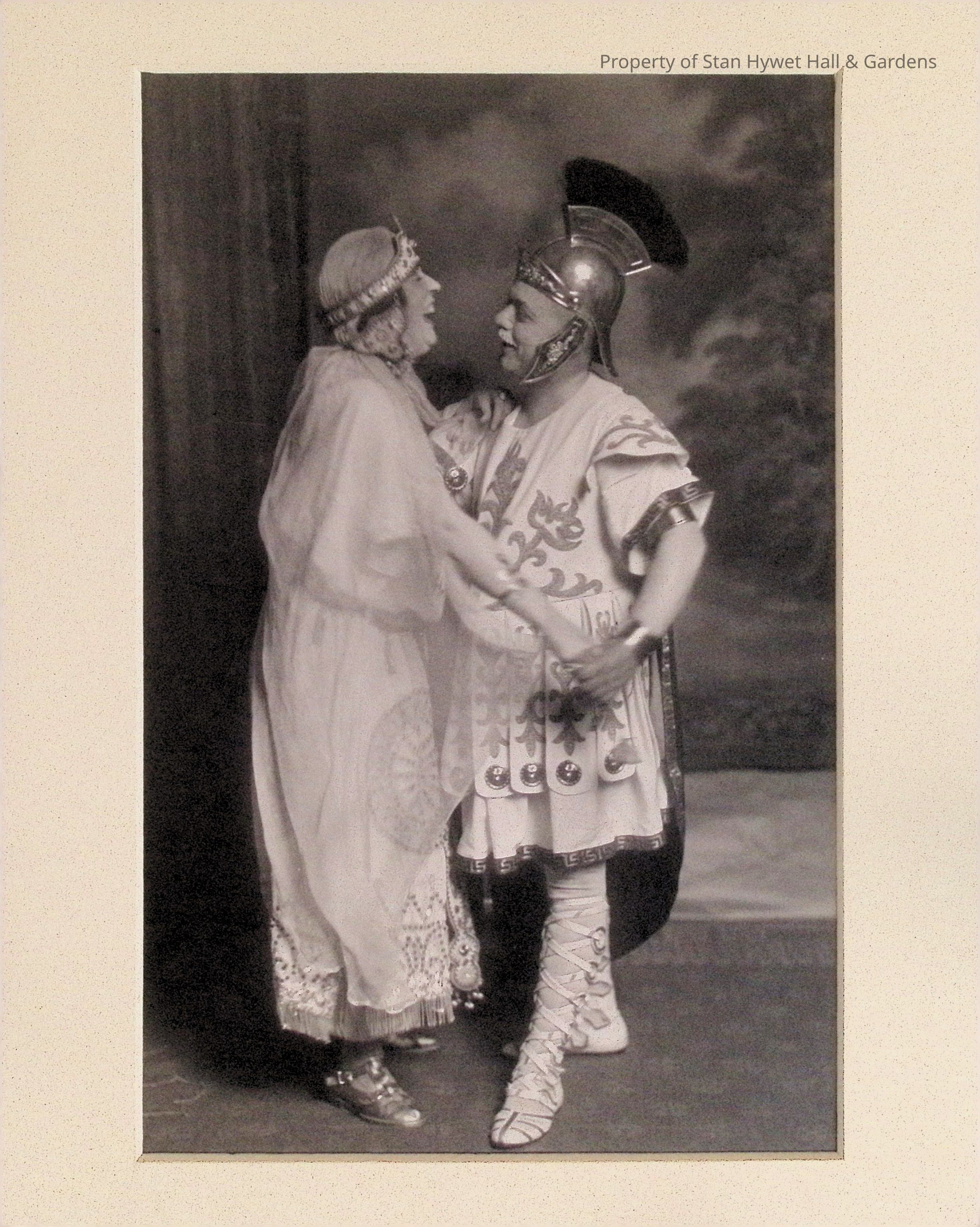 Black and white photographic print. Posed full body image of F.A. Seiberling dressed in costume as Marc Anthony dancing with Mrs. F.H. Huber in costume as Cleopatra. Taken during the Shakespeare Ball. On back of photo printed in purple ink "FROM/ PECK'S STUDIO/ 86 So. Howard St. AKRON, OHIO" Hand printed in pencil at top " Mrs. F.H. Huber and Mr. F.A. Seiberling"Photograph Details