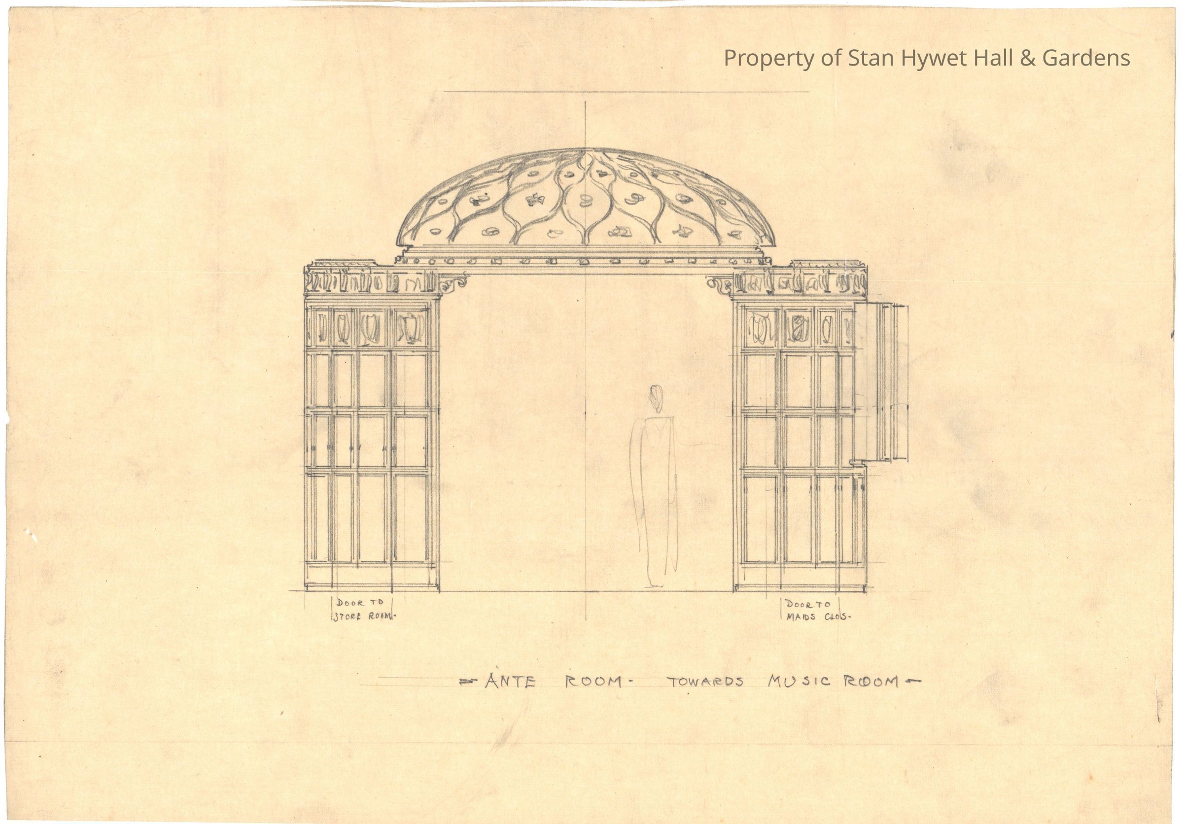 Historic drawing: Detailed drawing of the Round Room south wall. Titled "Ante Room Towards Music Room".Collection