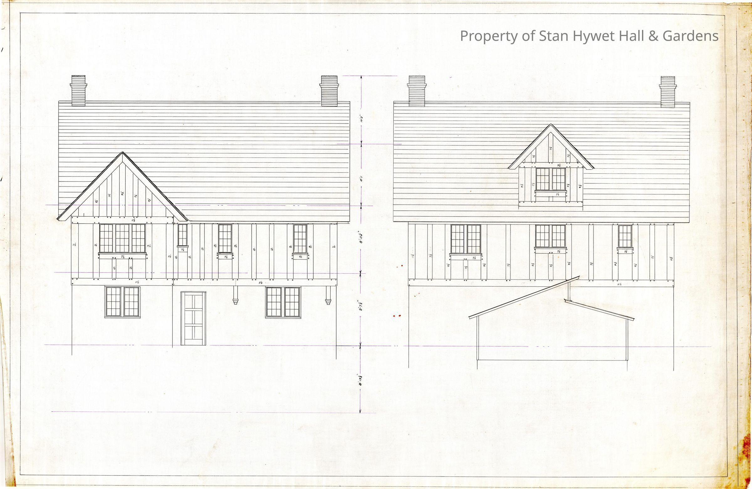 Historic Blueprint: Drawing of the east and west elevations of the Poultry Keeper's cottage.Collection