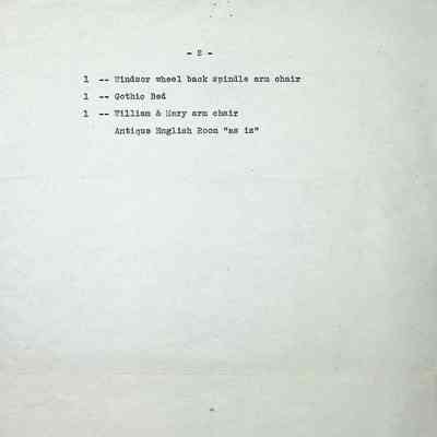 Typewritten on plain white paper, a list of furniture compiled by H.F. Huber & CompanyContext