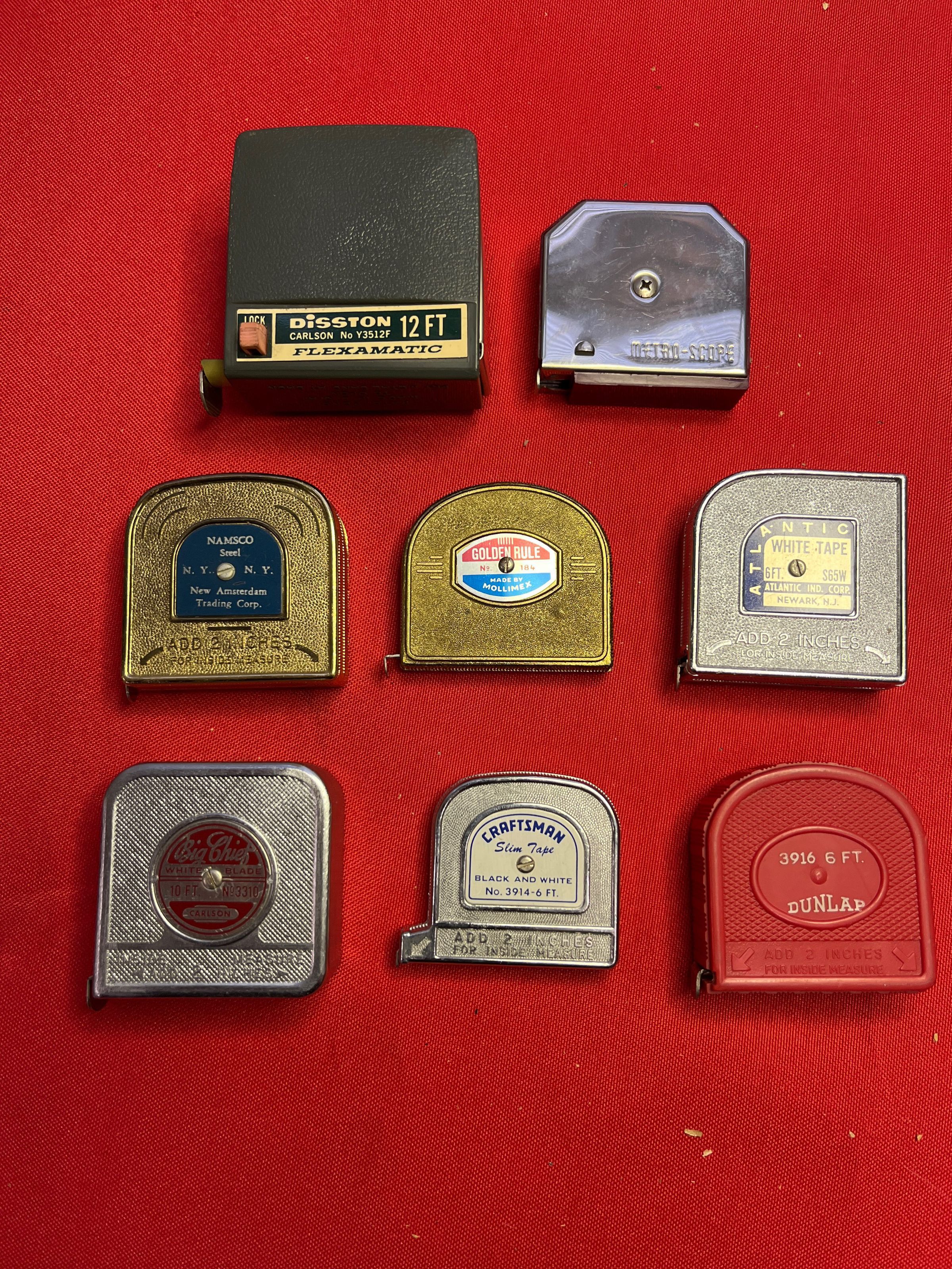 Bottom: Big Chief White Blade Carlson No. 3310 10 Ft., Carlson & Sullivan; 2. Craftsman Slim Tape No. 3914 6 Ft. Black and White; 3. Dunlap 3916 6 Ft.