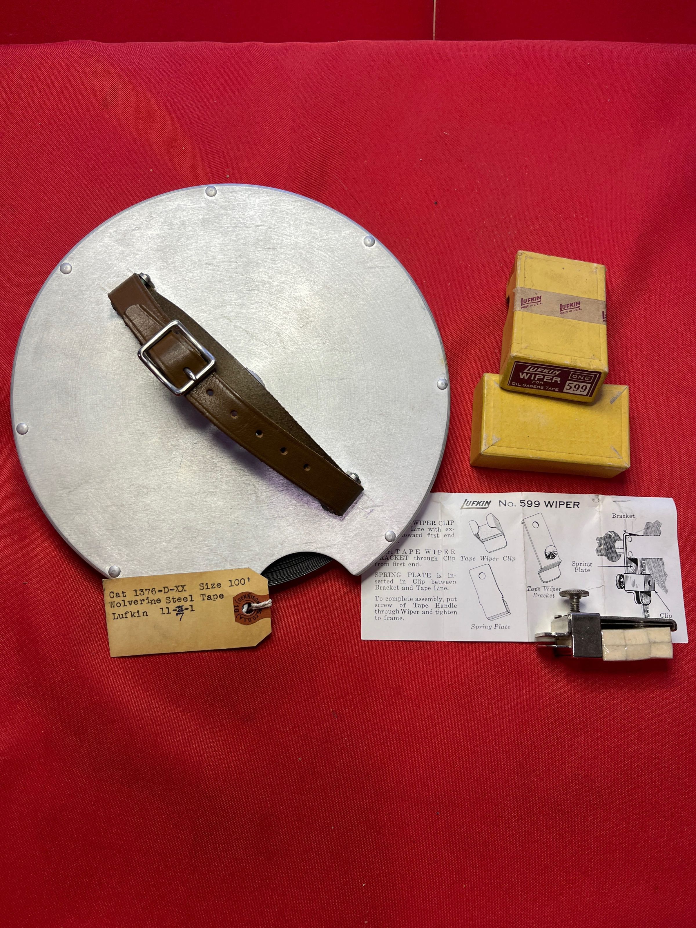 1. No. 1376-D-XX 100' Steel Tape XX Double Strength Instantaneous; 2. New Lufkin Wiper No. 599 for Oil Gaging Tape.
