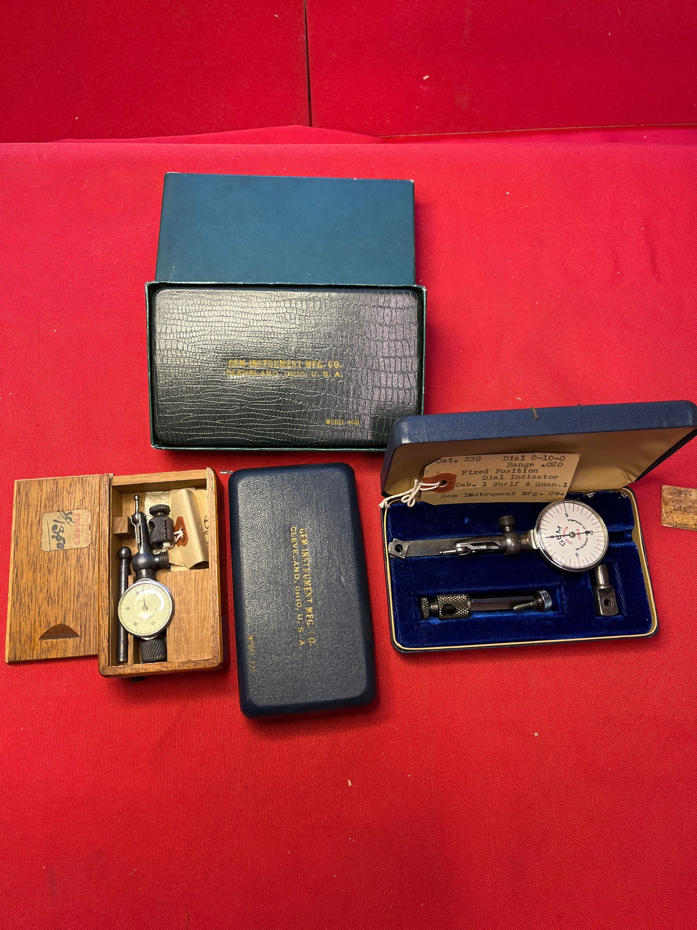 Gem Insrument Mfg. Co., Cleveland, Ohio 1. Wooden Box; 2. No. 338 othe two in closed box Indicator disasembled.(NIce Cases)
