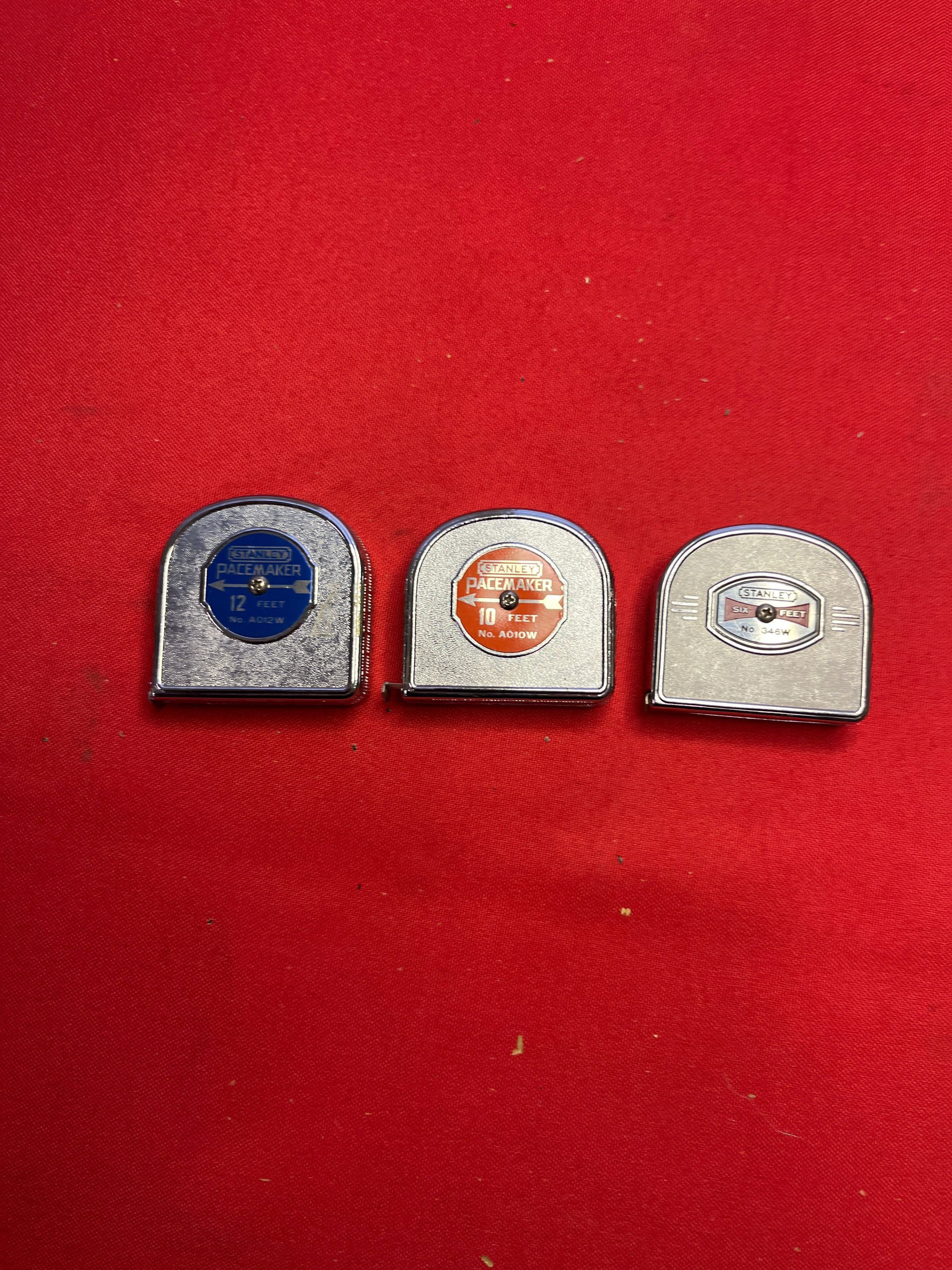 1. Stanley Pacemaker No. A012 12 Ft.; 2. Stanley Pacemaker No. A010 10 Ft.; 3. Stanley No. 346W Patented