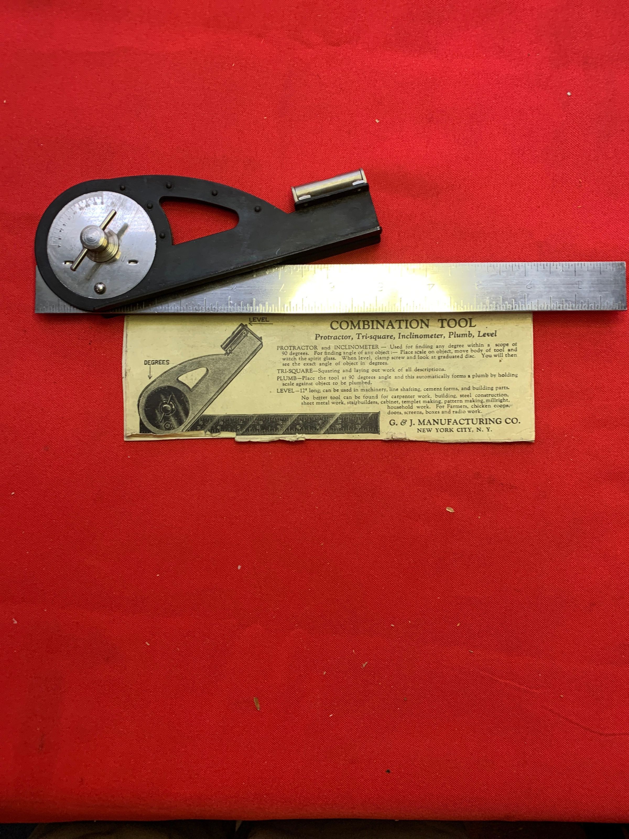 Protractor, Tri-square,Inclinometer, Plumb, Level Combination Tool G. & J. Mfg.