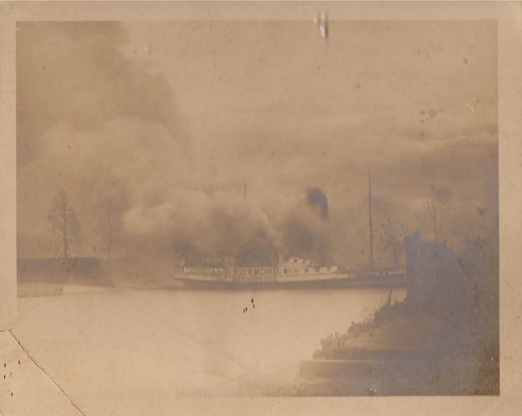 10¾" x 8¾" Black and White Photograph of the "Richmond" Ablaze at Fredricksburg, Va. -- Burned to Waterline
