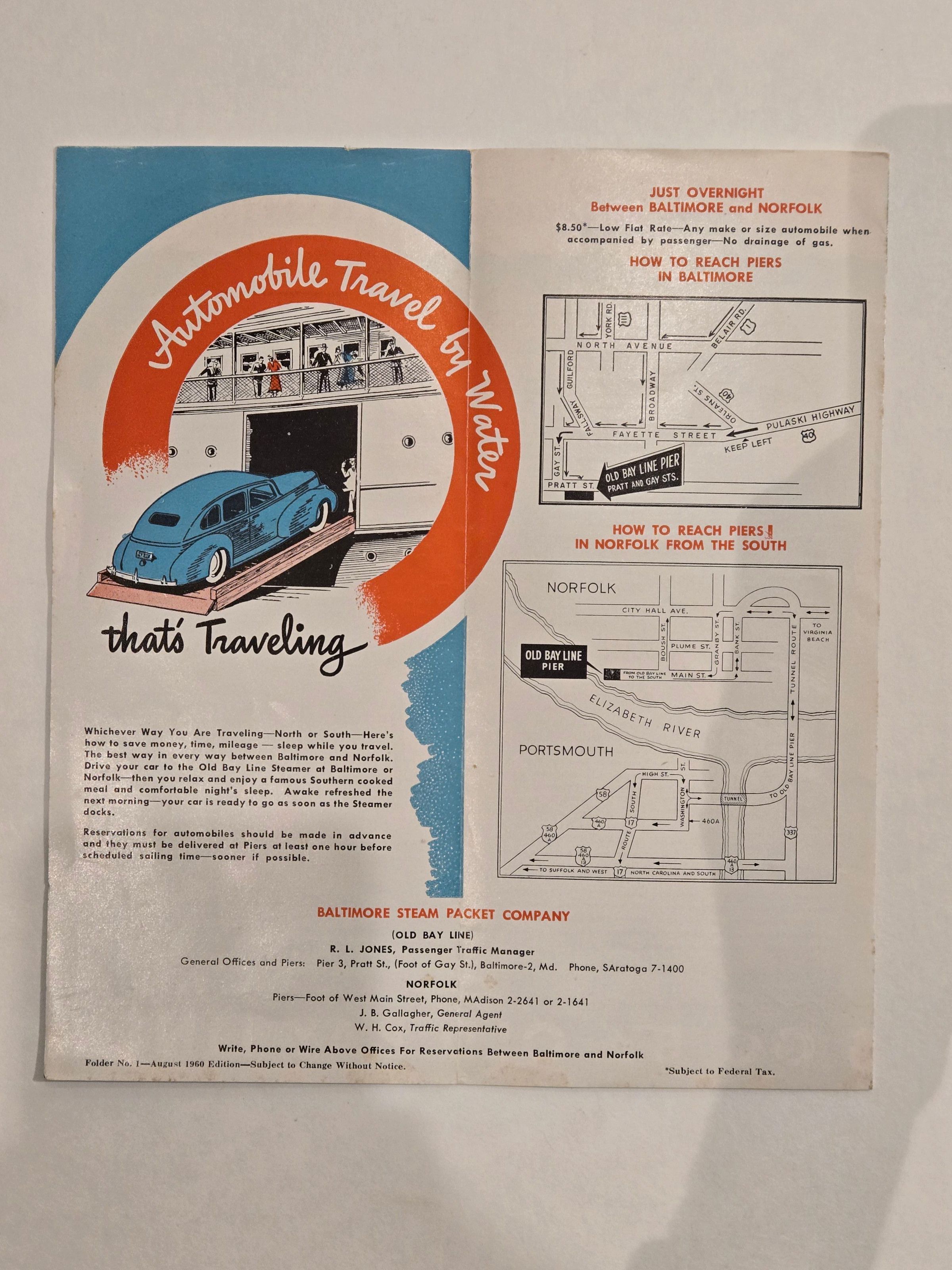 August 1960 edition brochure from the Old Bay Line. Found in Collection.